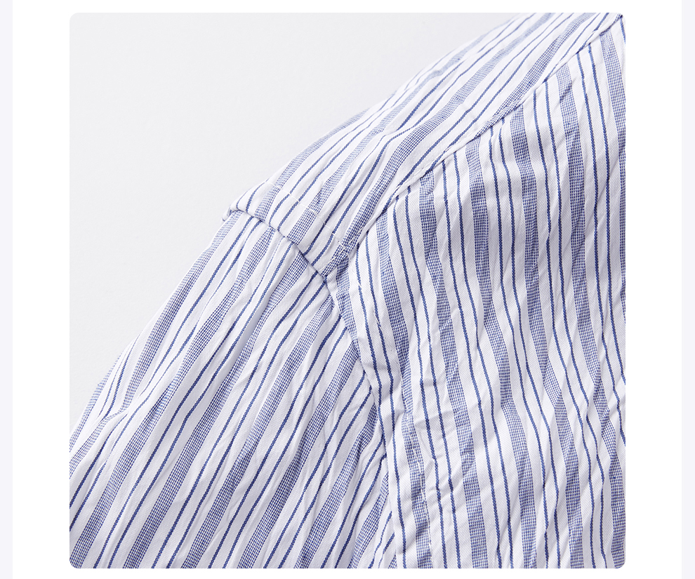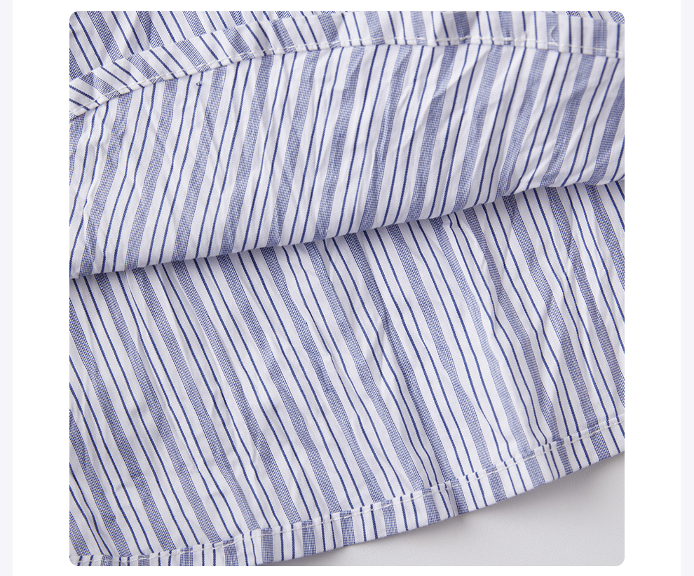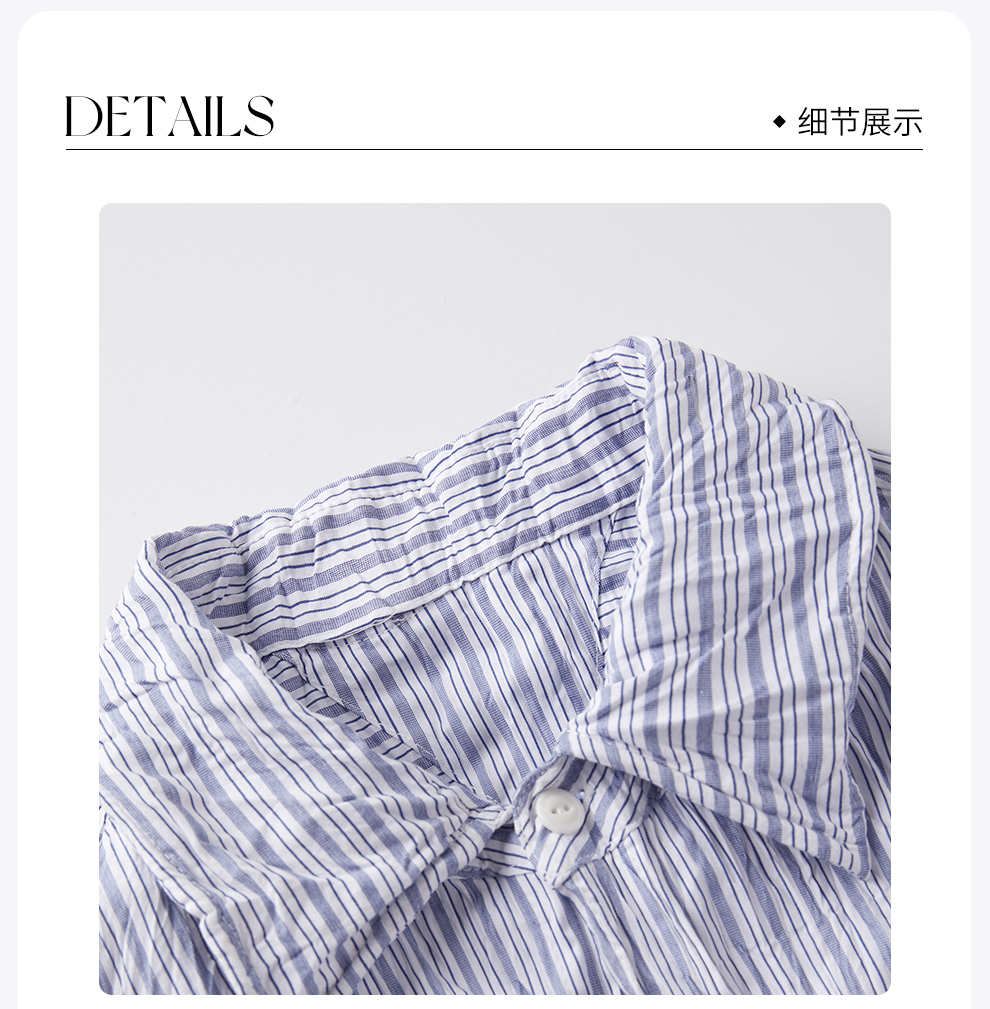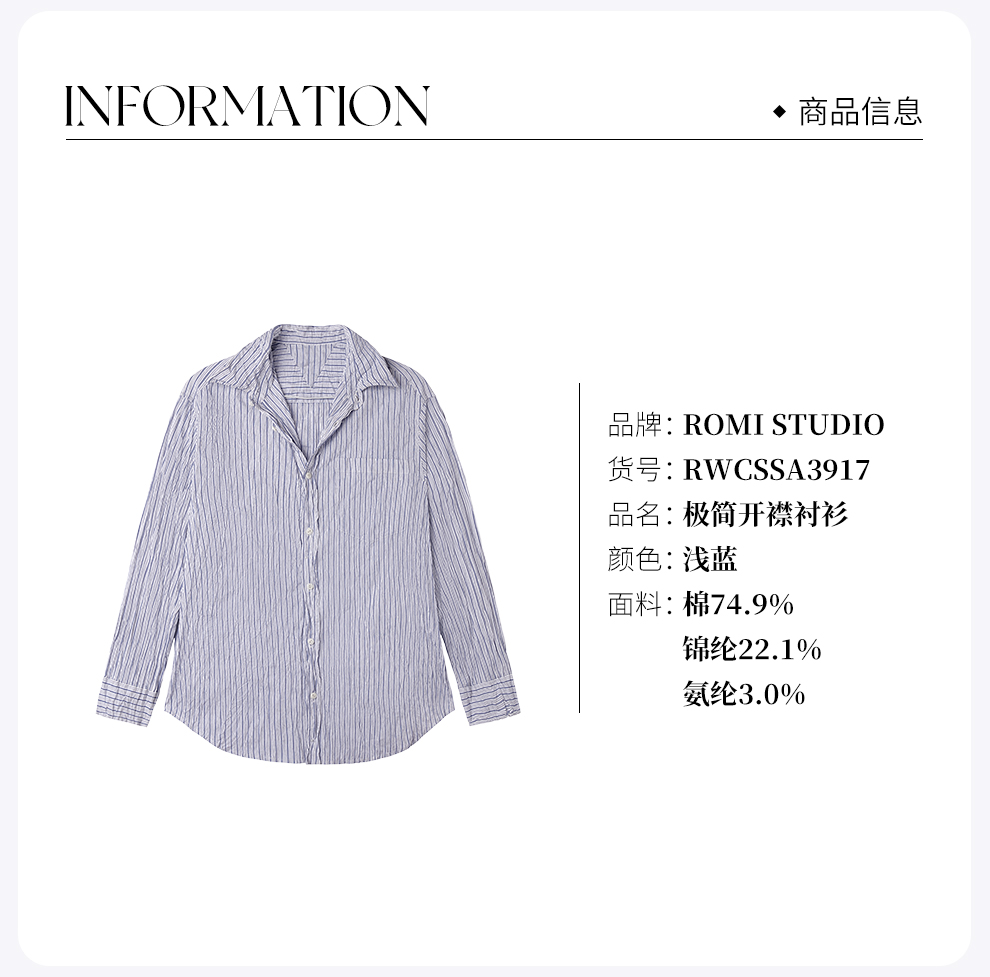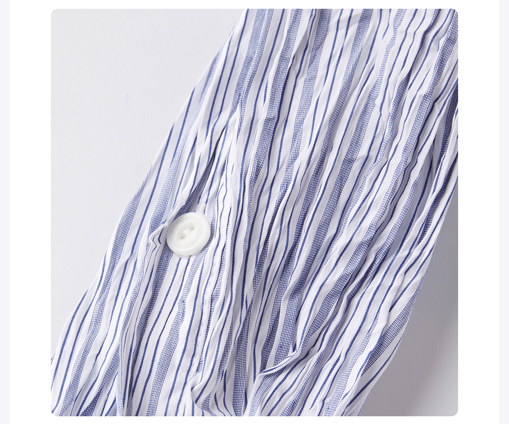 ROMI STUDIO“慵懒随性”蓝白条纹不规则褶皱肌理感衬衣 RWCSSA3917
