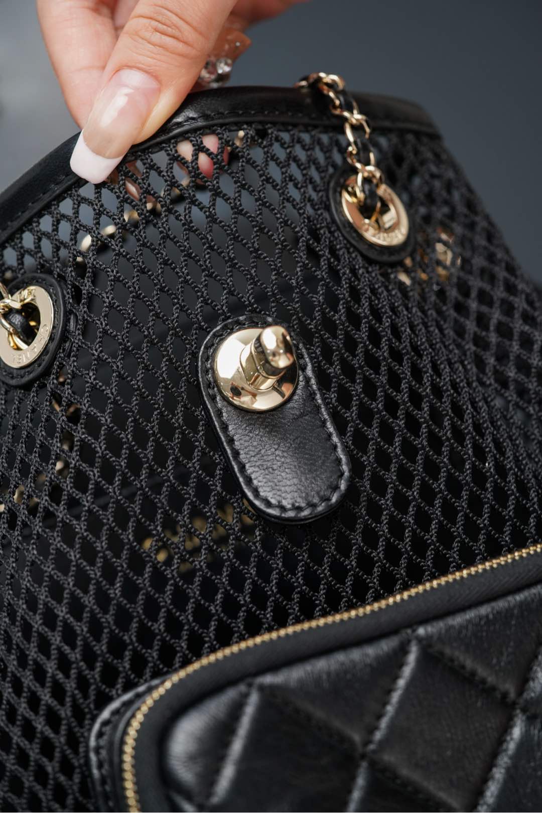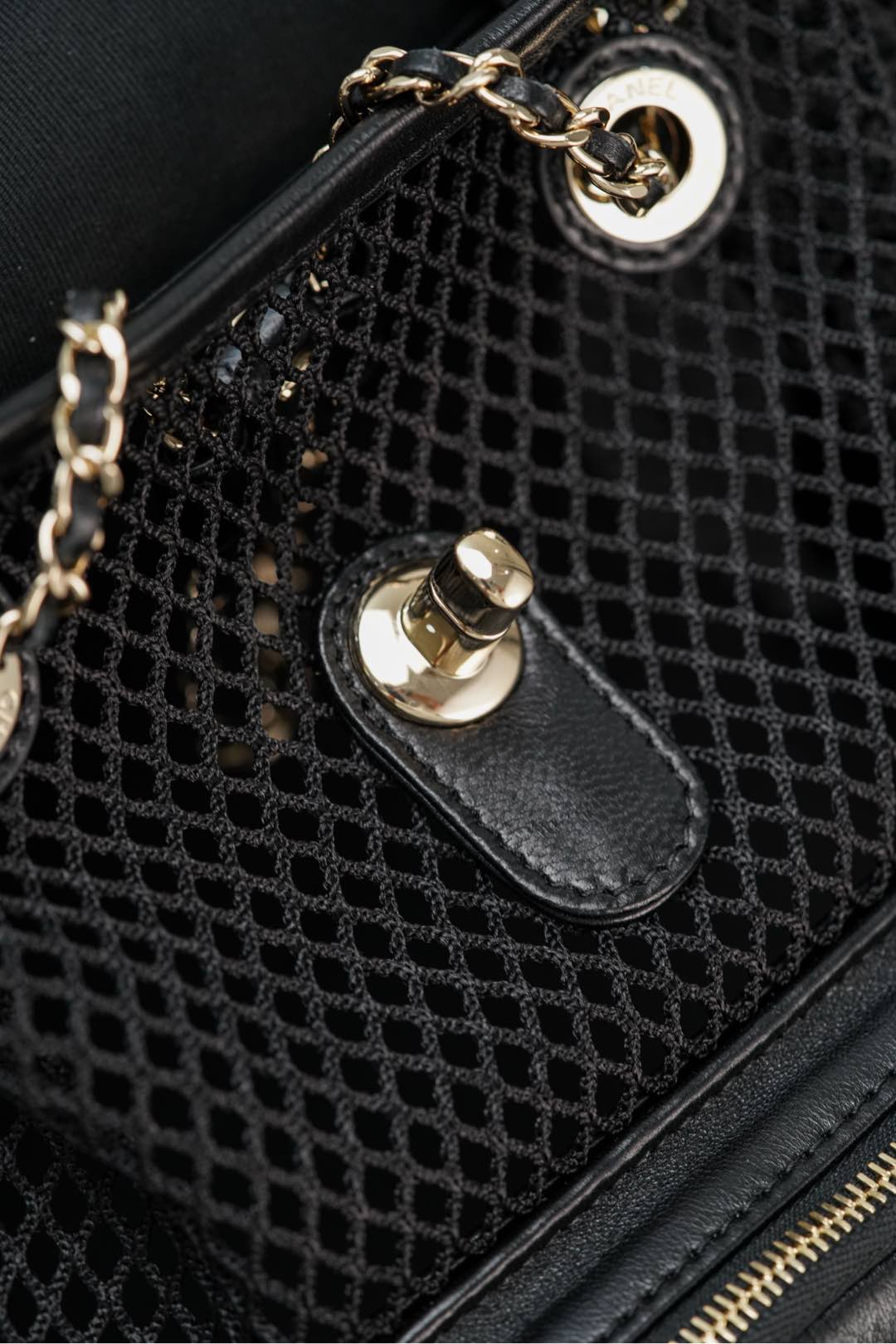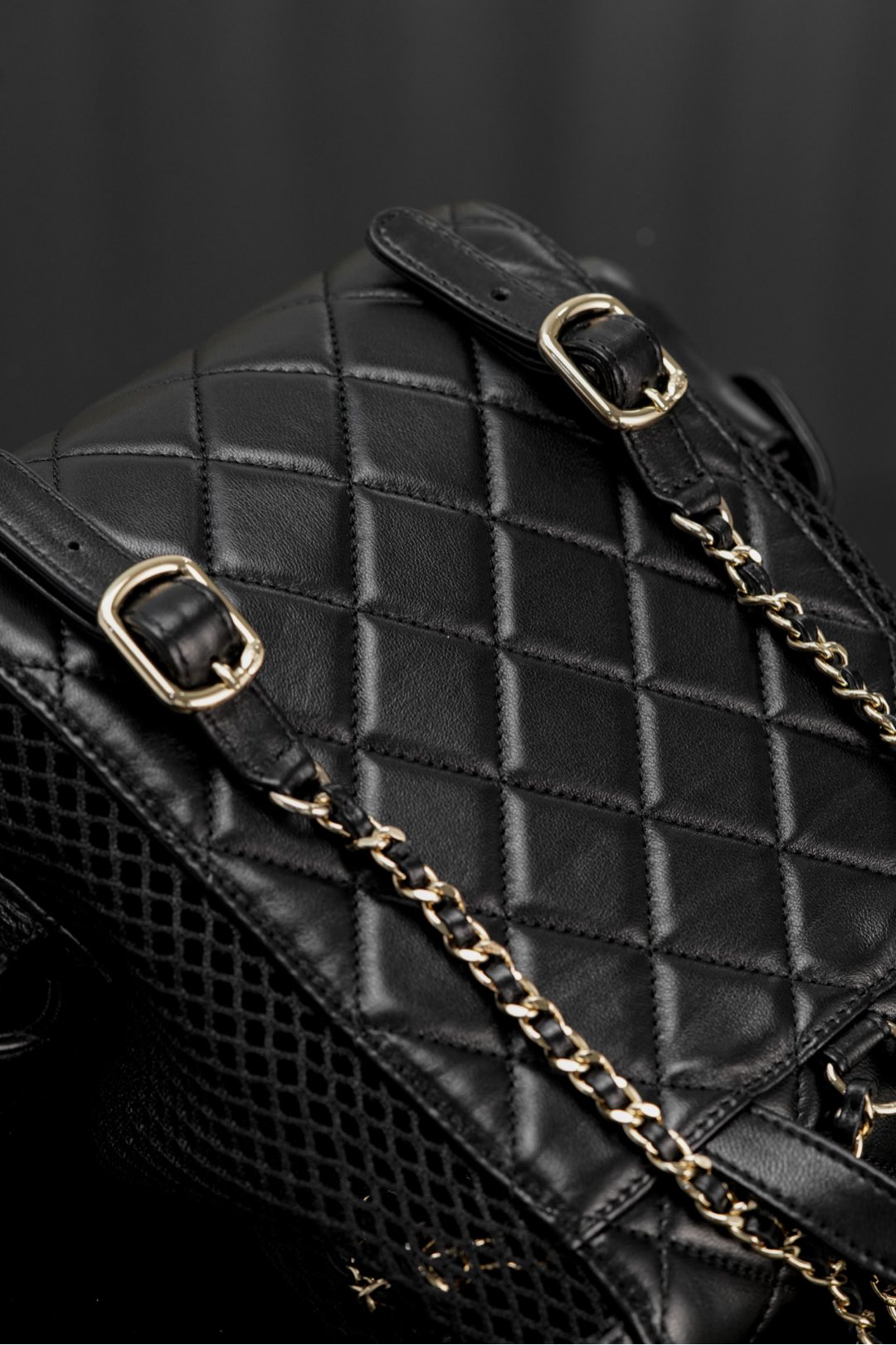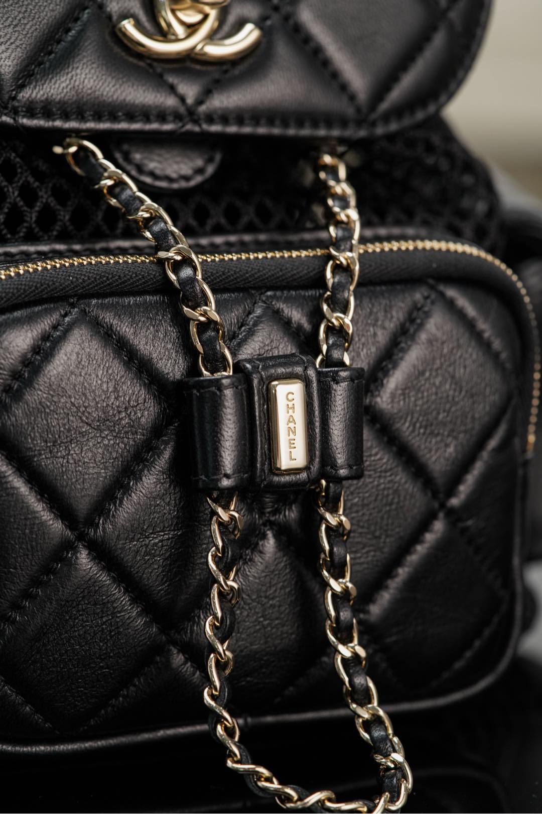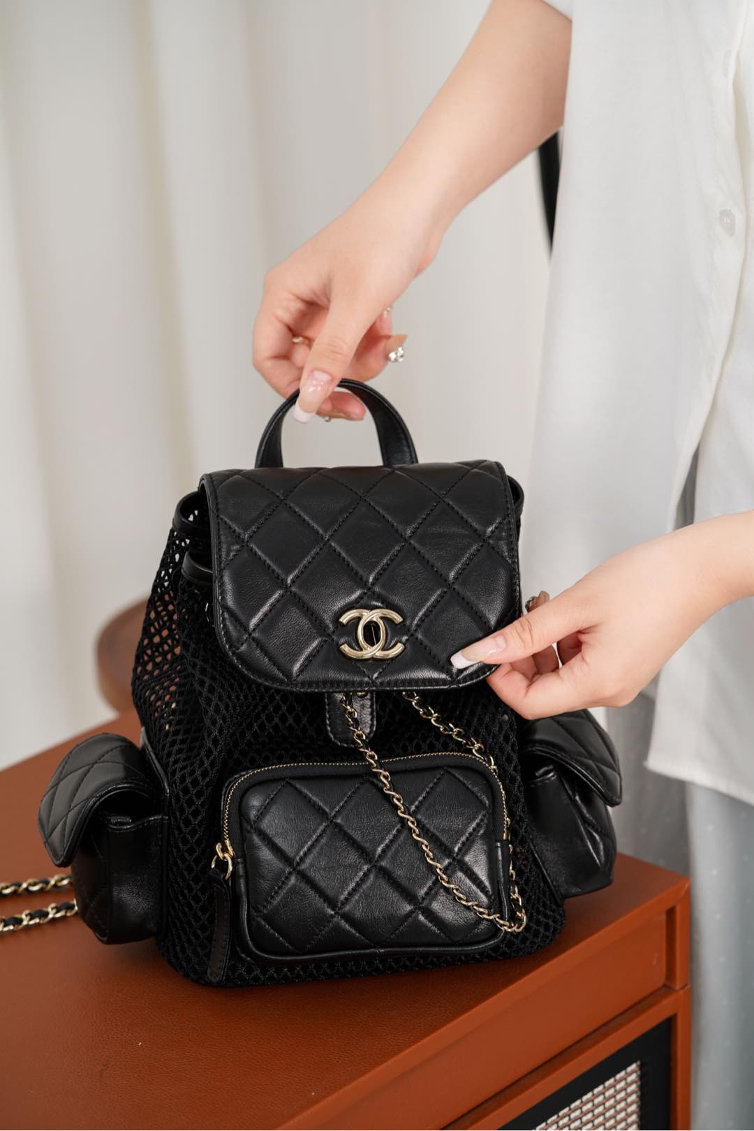 𝐂𝐡𝐚𝐧𝐞𝐥 𝟐𝟓𝐬 镂空网纱双肩包 黑金 小号✔️