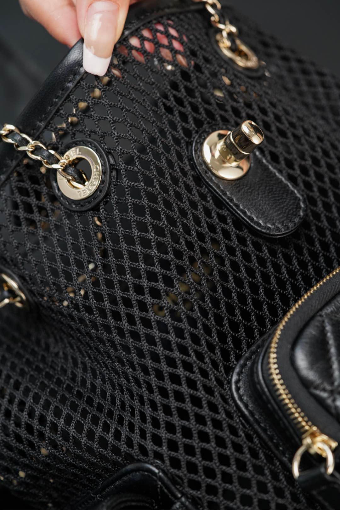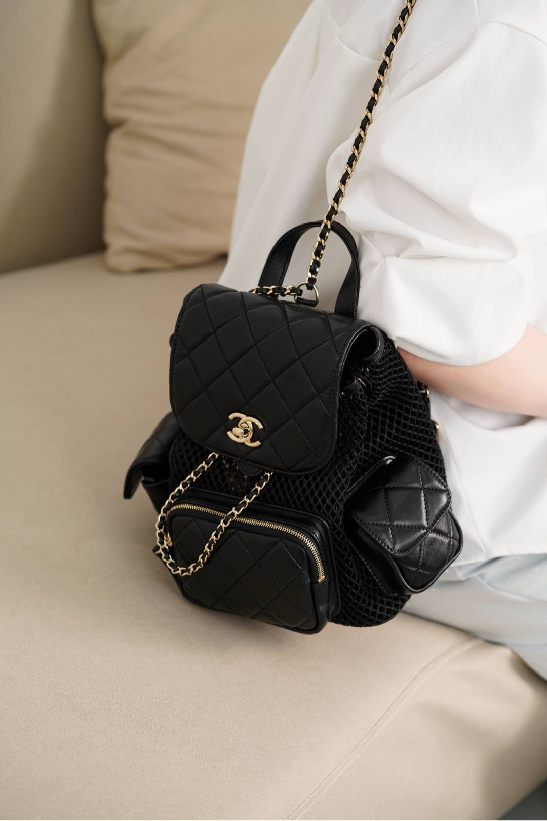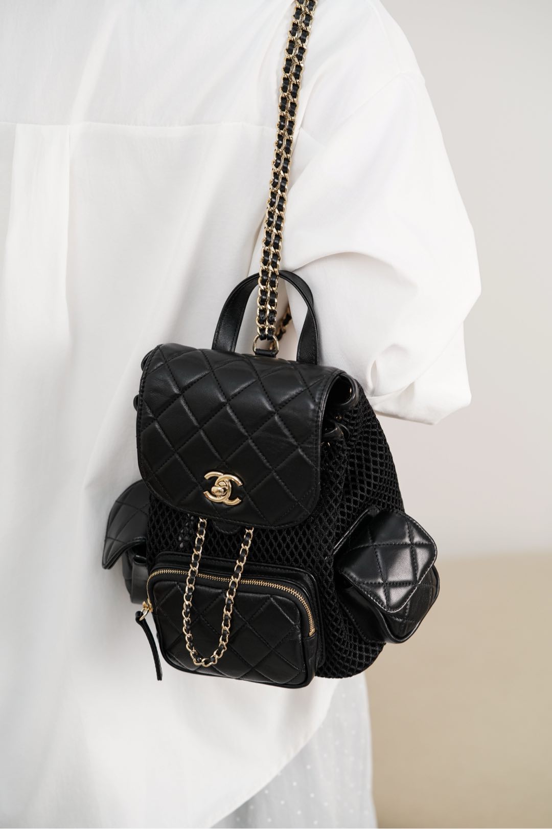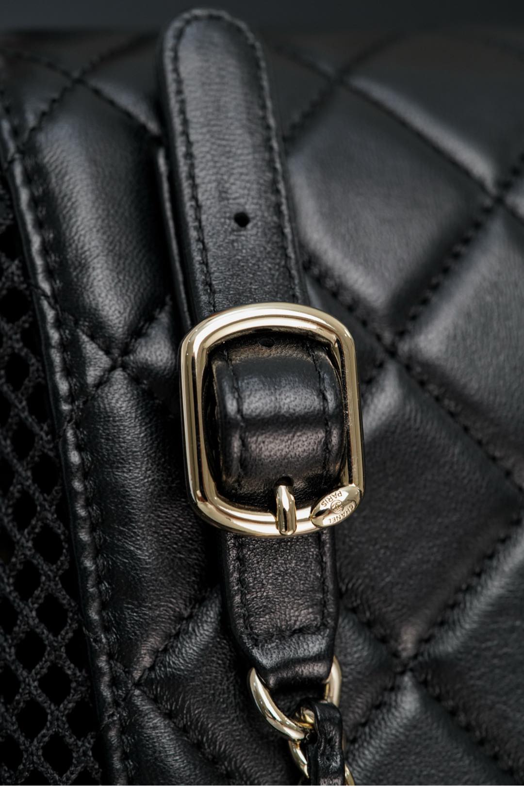 𝐂𝐡𝐚𝐧𝐞𝐥 𝟐𝟓𝐬 镂空网纱双肩包 黑金 小号✔️