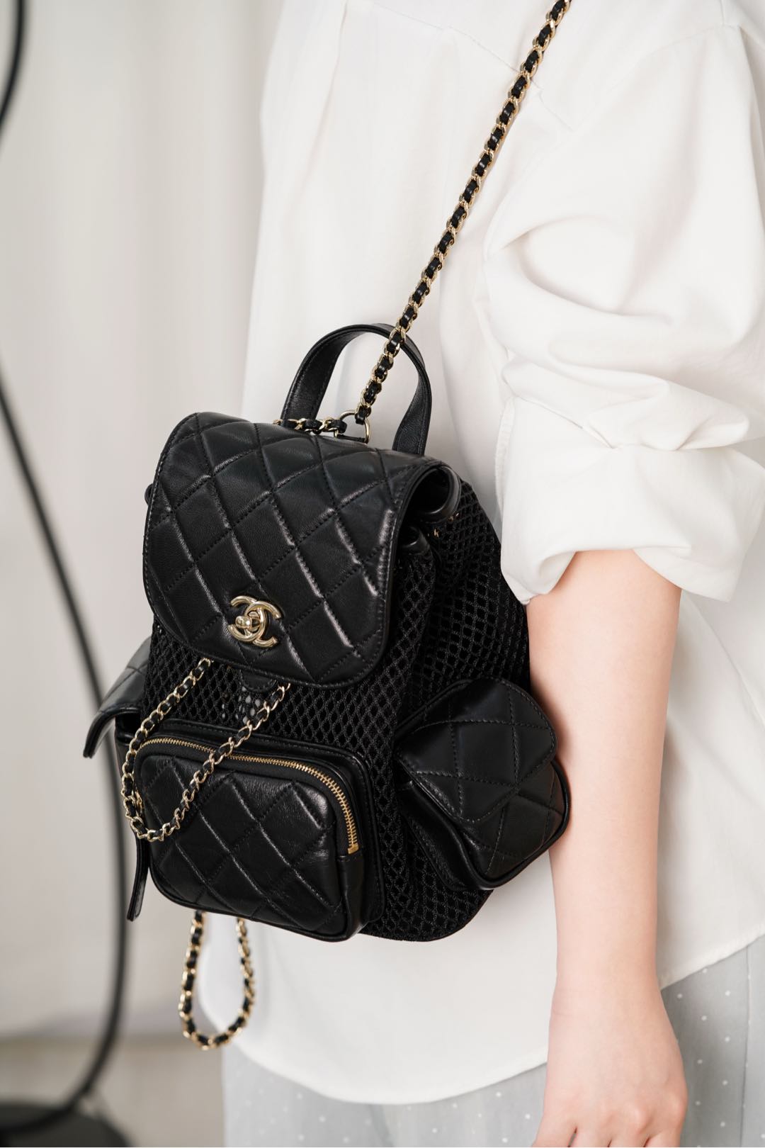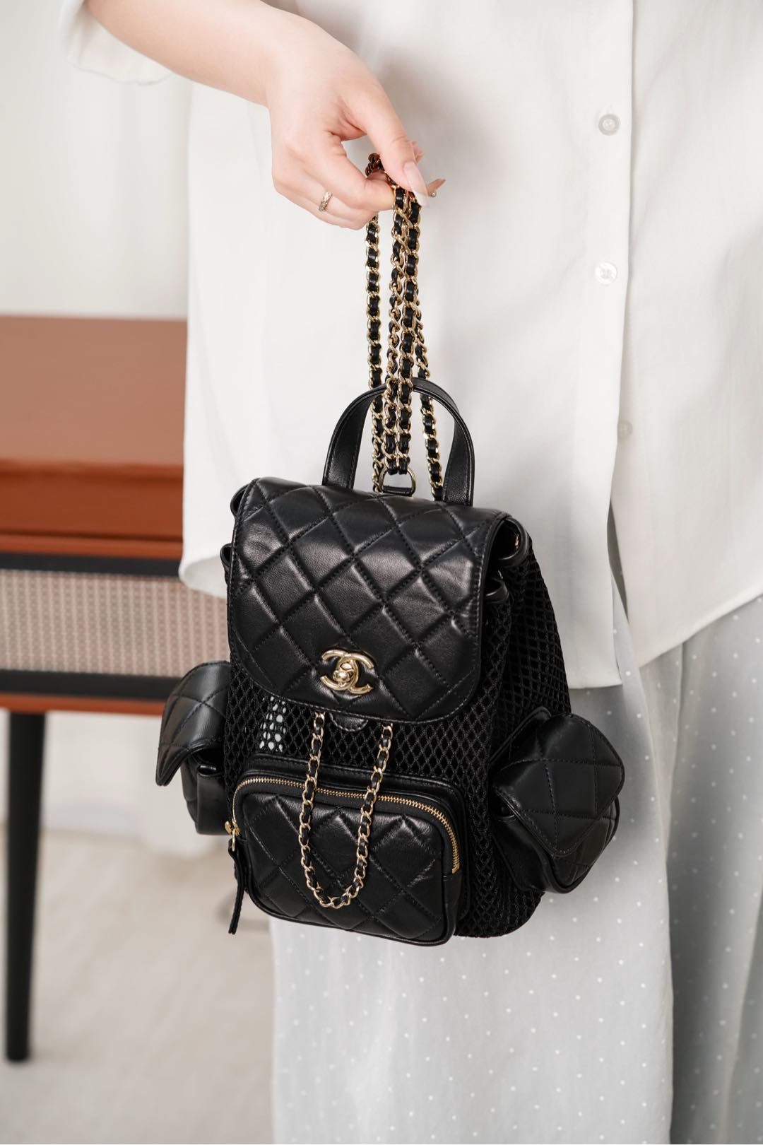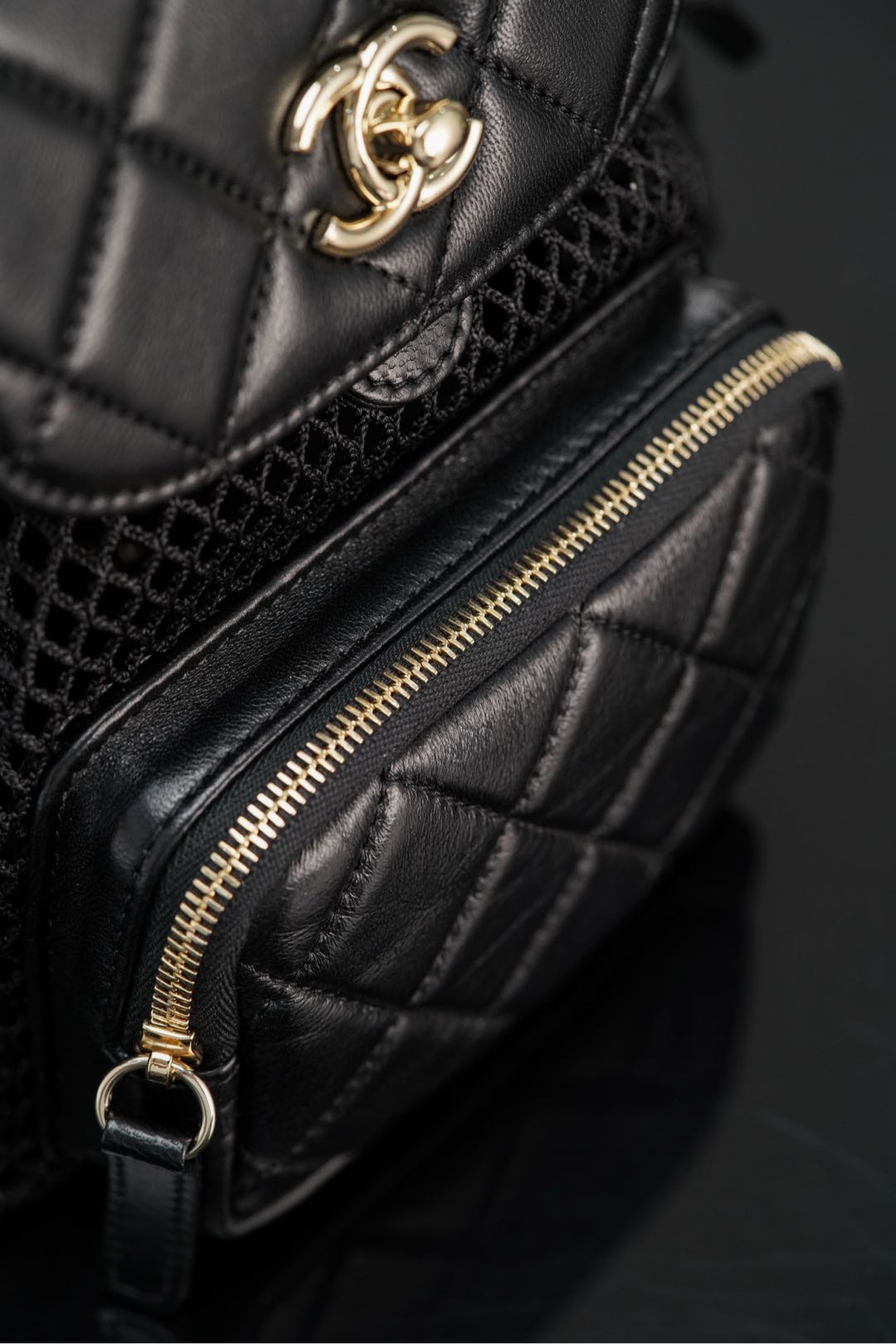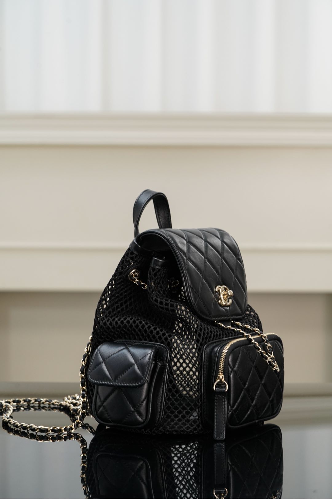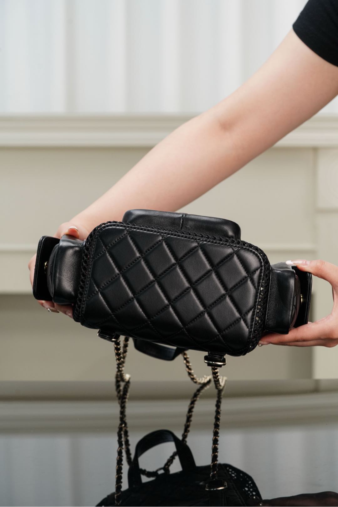 𝐂𝐡𝐚𝐧𝐞𝐥 𝟐𝟓𝐬 镂空网纱双肩包 黑金 小号✔️
