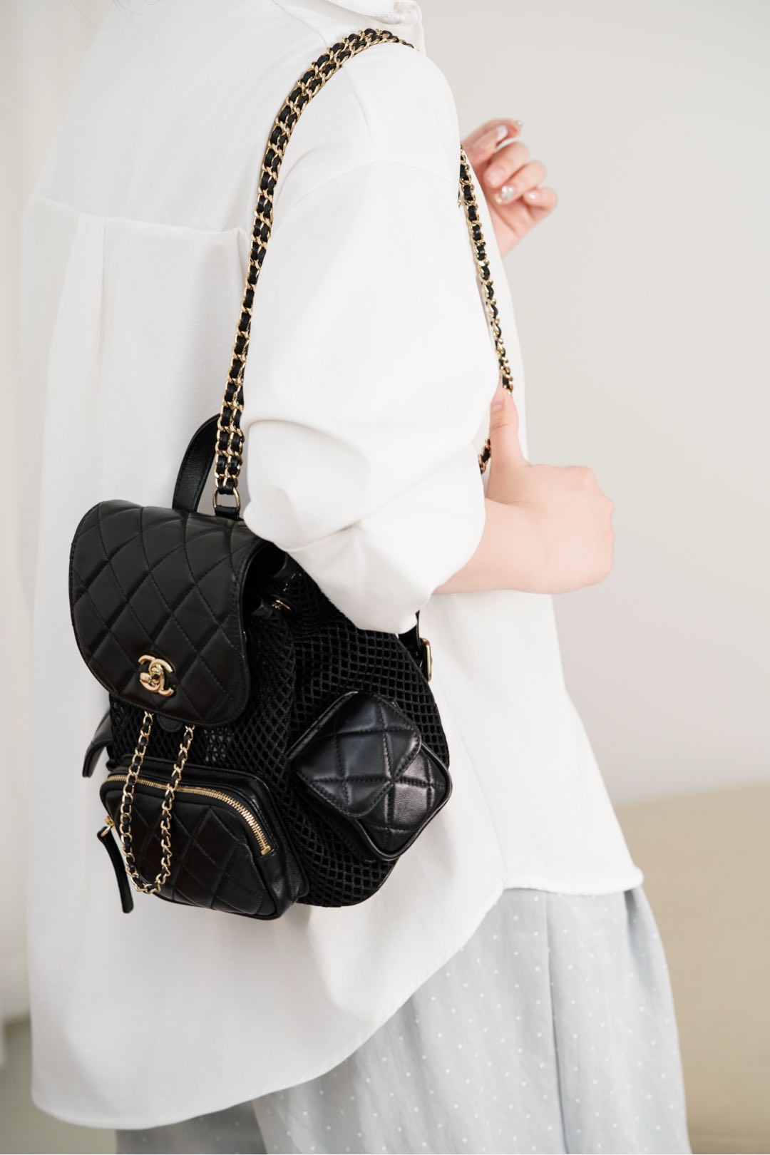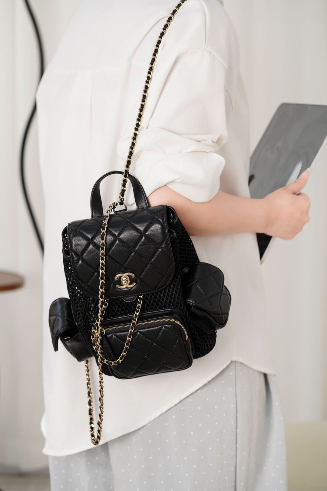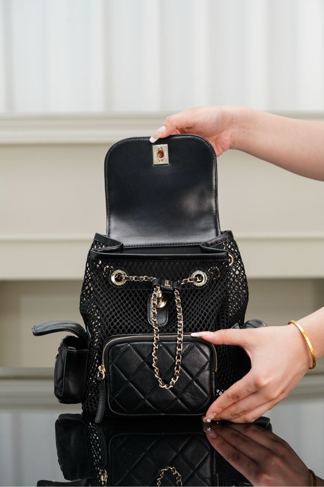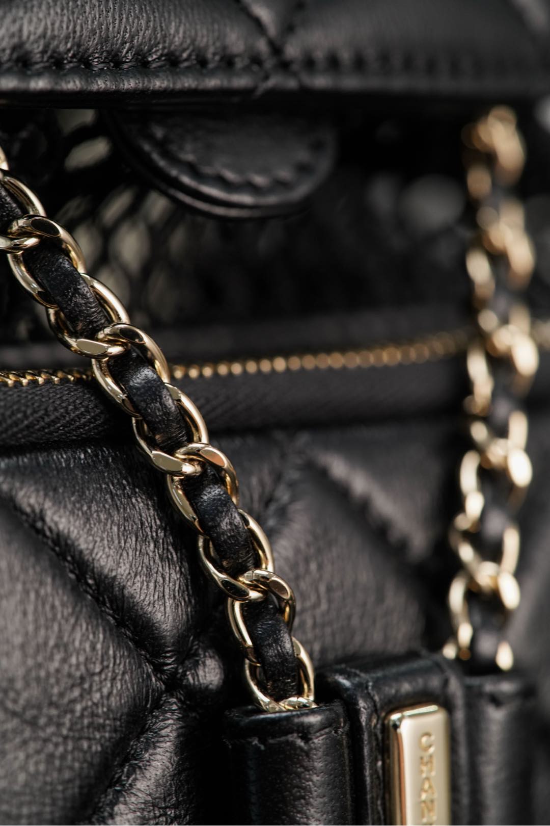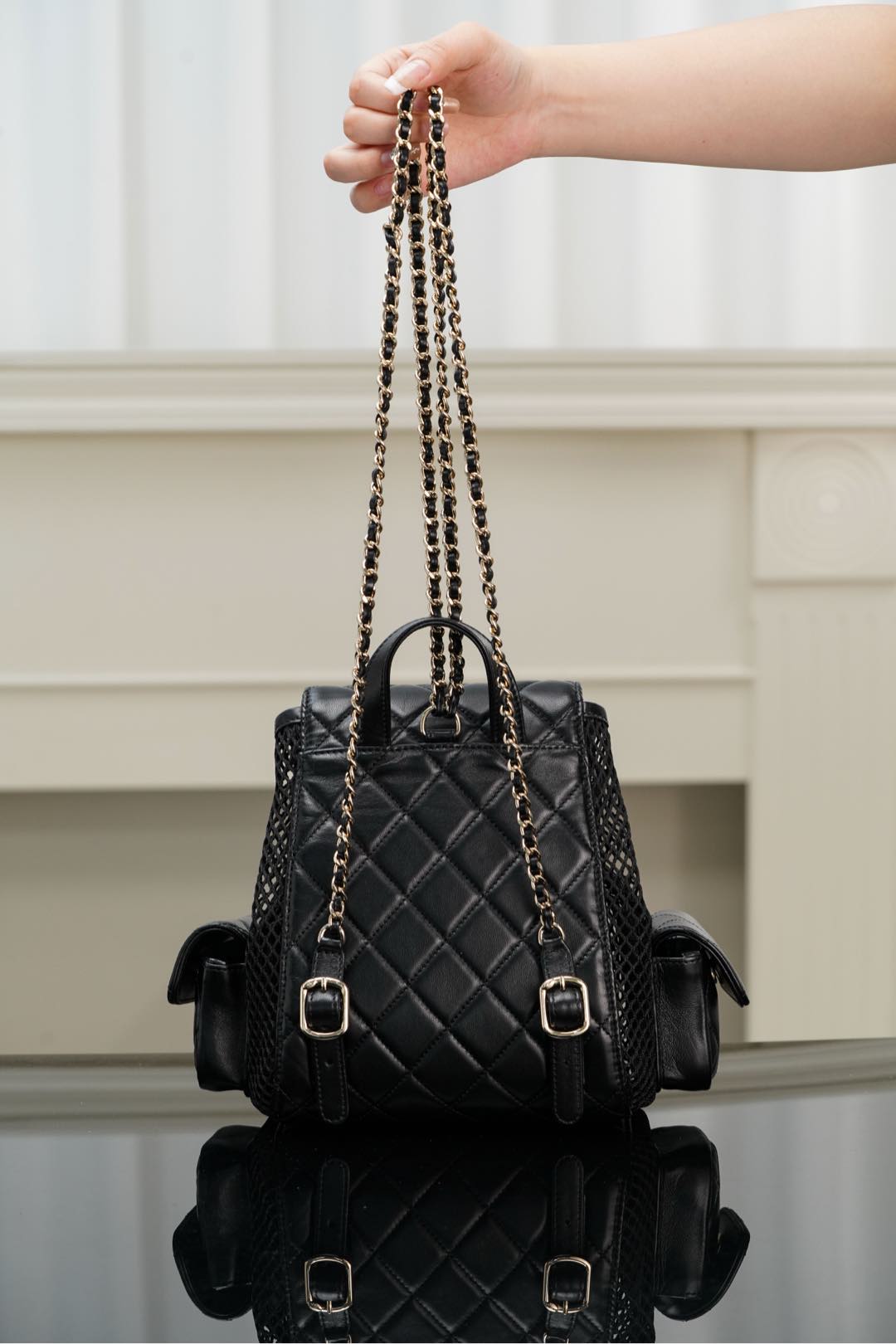 𝐂𝐡𝐚𝐧𝐞𝐥 𝟐𝟓𝐬 镂空网纱双肩包 黑金 小号✔️