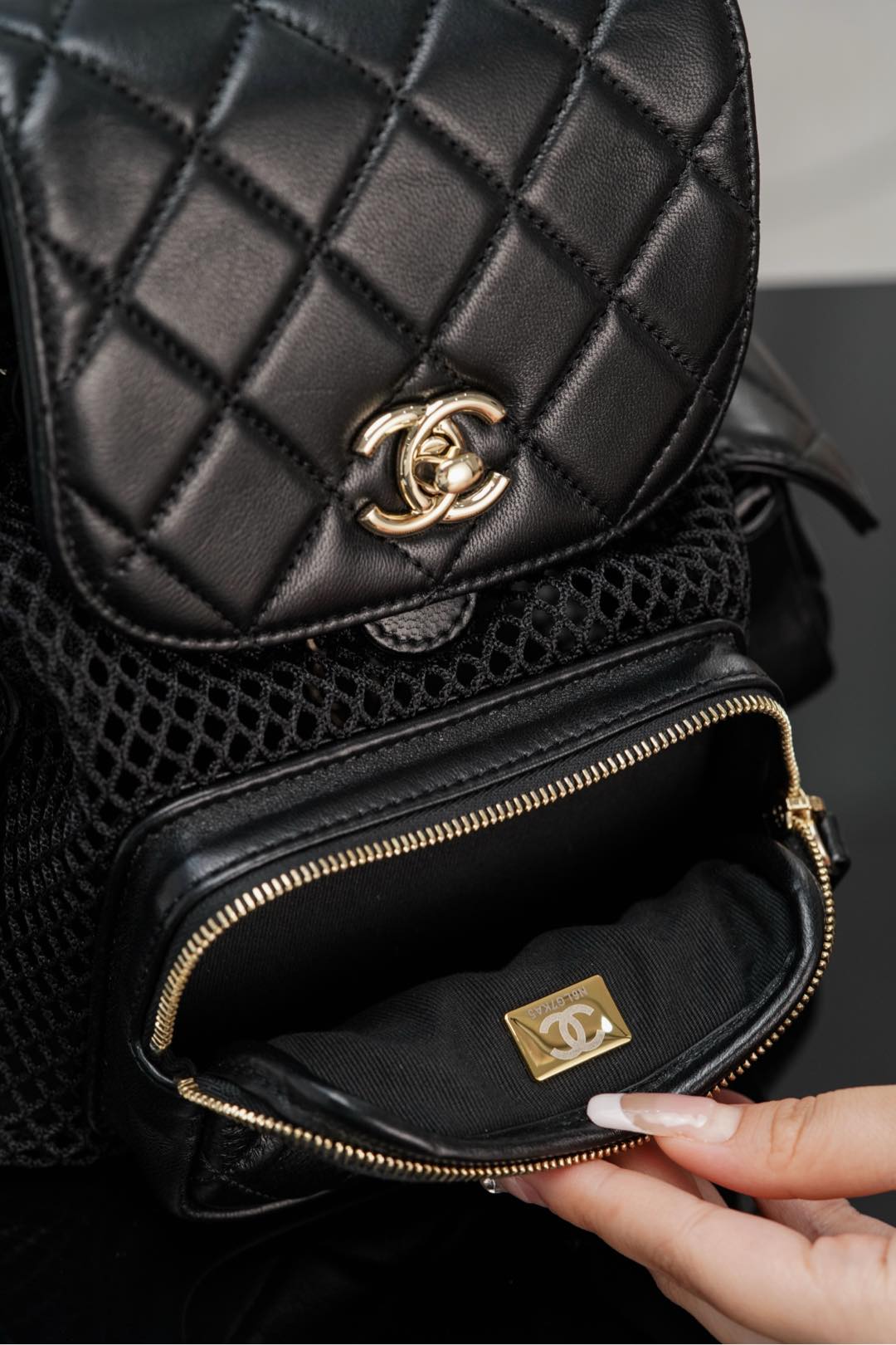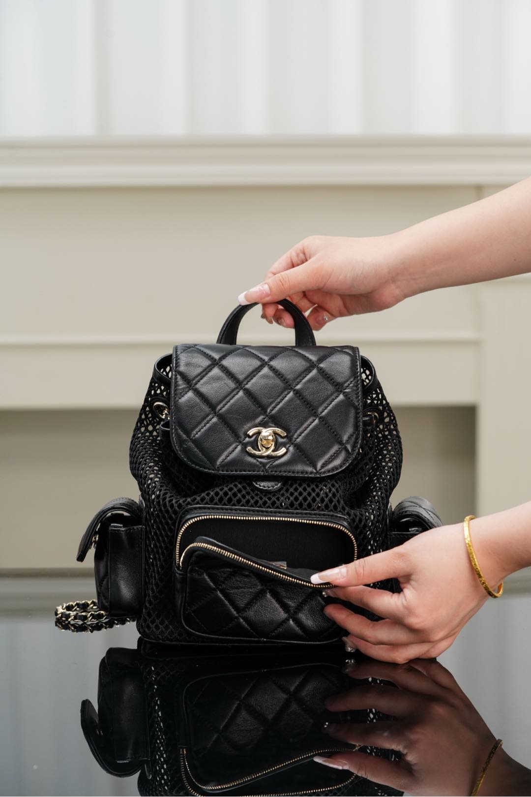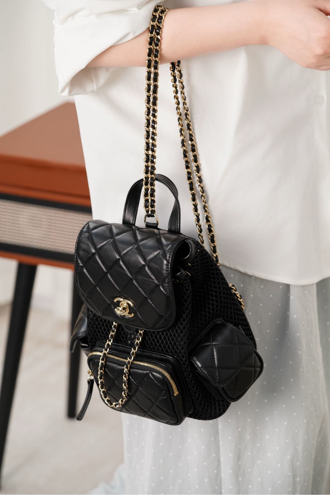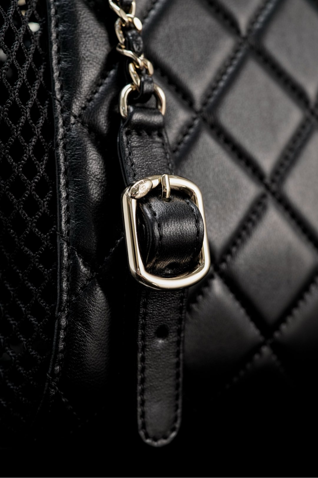 𝐂𝐡𝐚𝐧𝐞𝐥 𝟐𝟓𝐬 镂空网纱双肩包 黑金 小号✔️