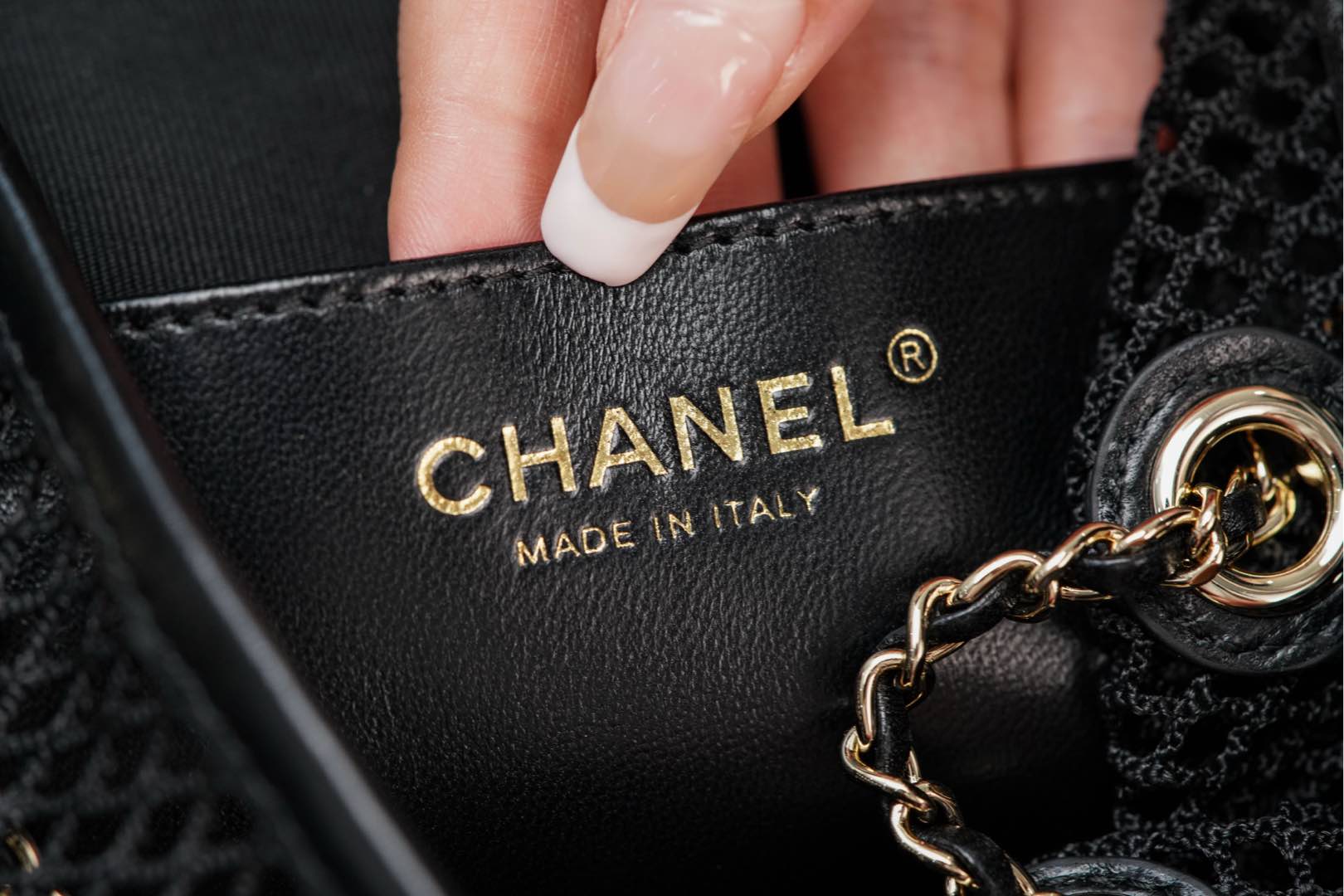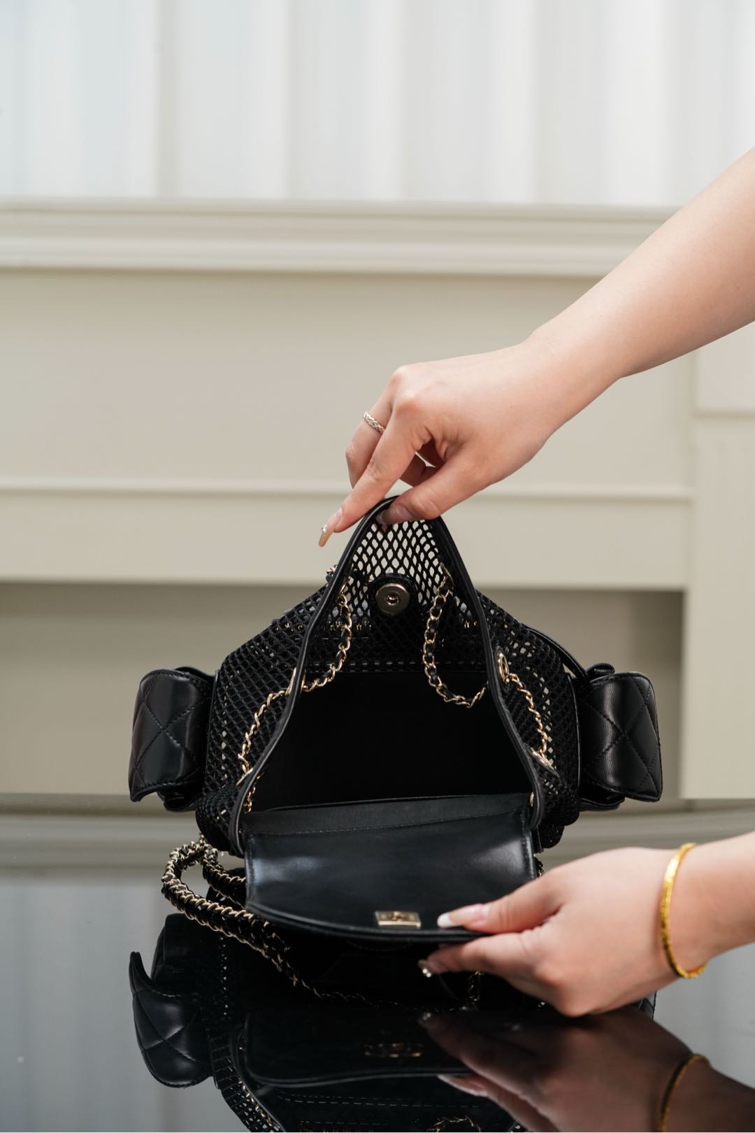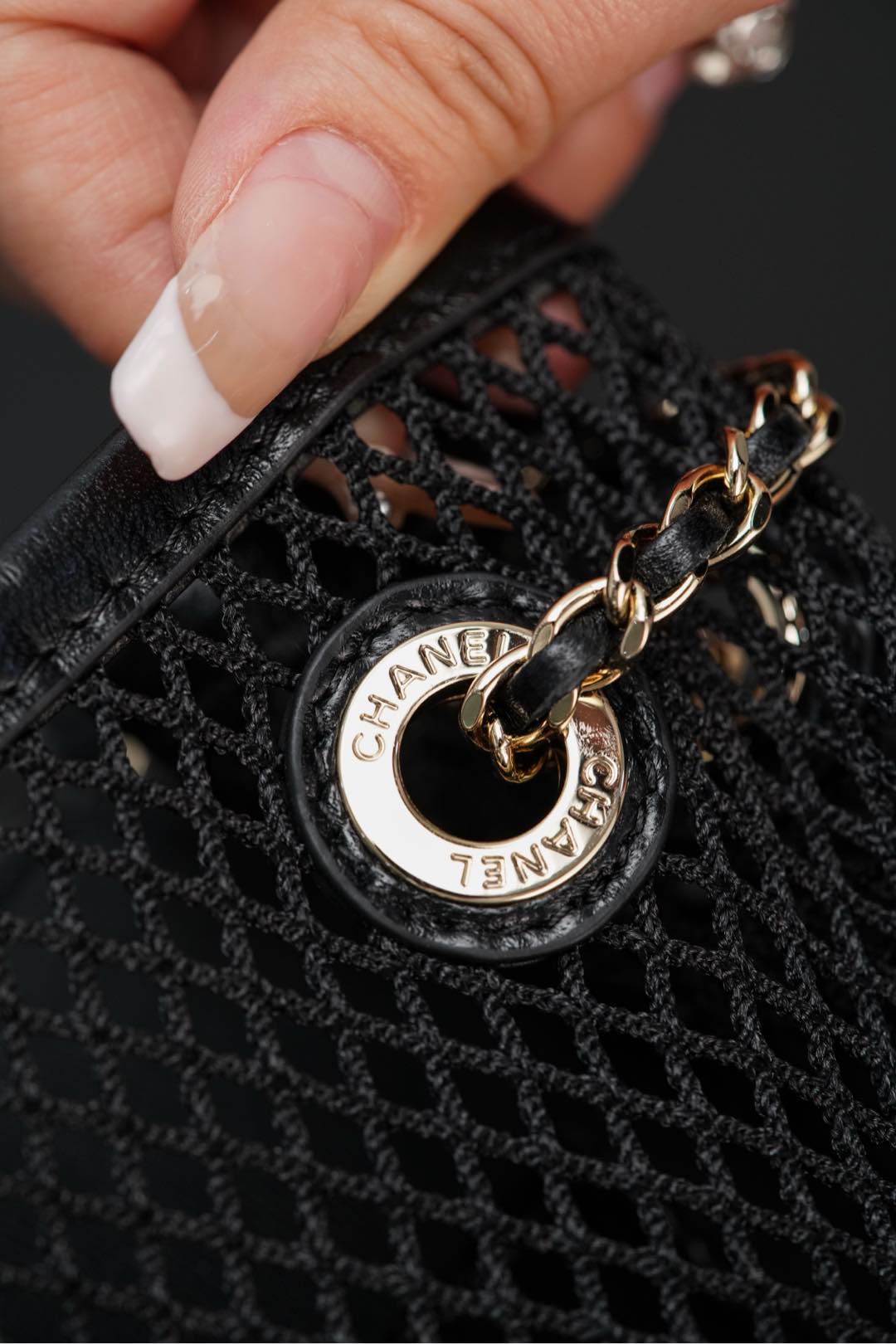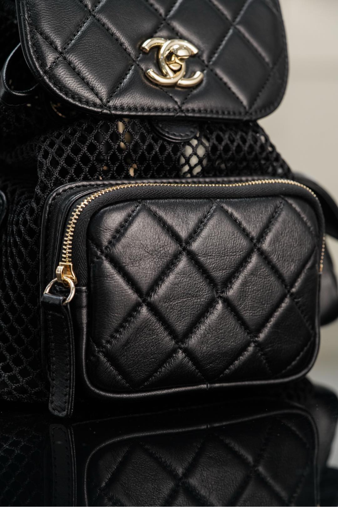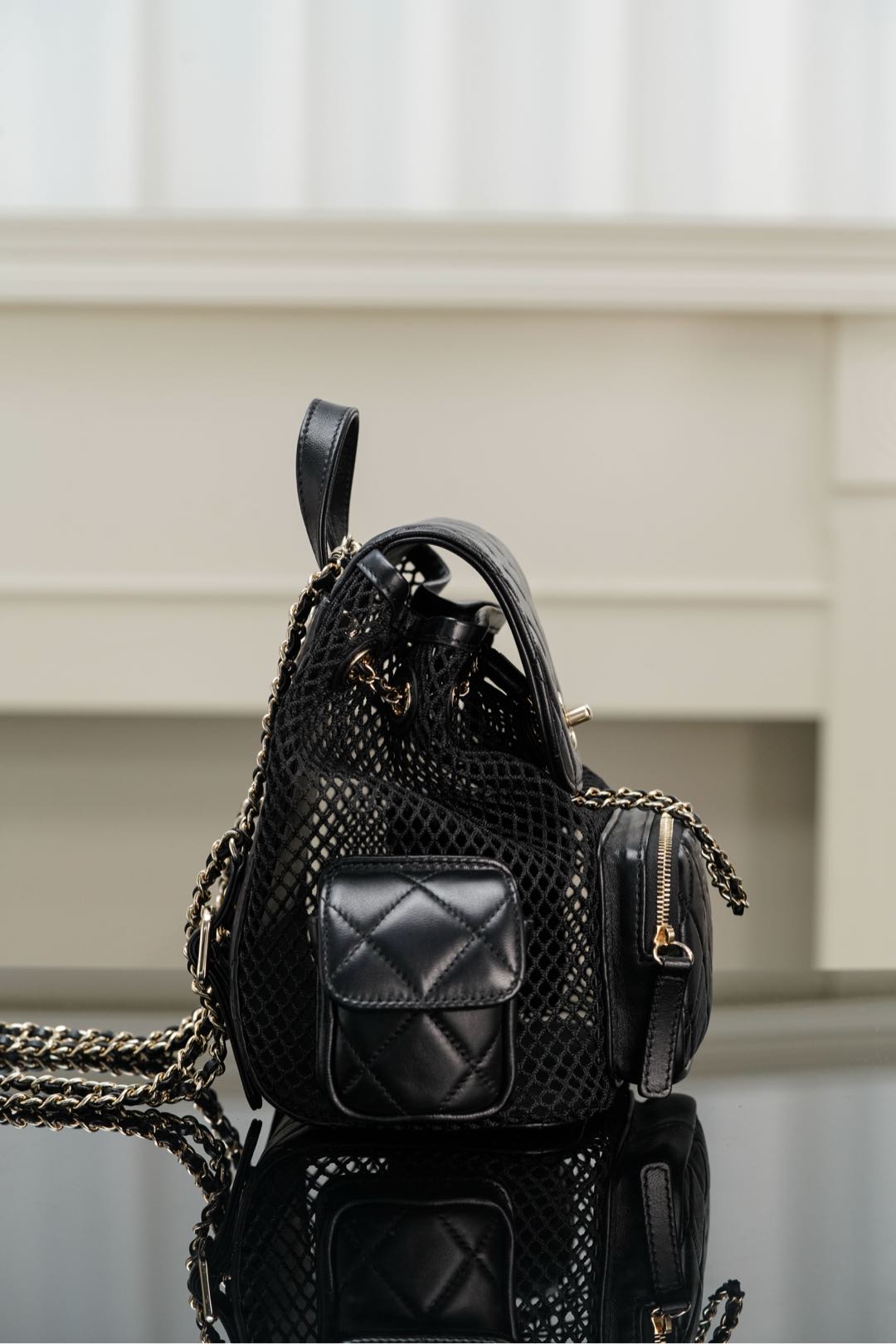 𝐂𝐡𝐚𝐧𝐞𝐥 𝟐𝟓𝐬 镂空网纱双肩包 黑金 小号✔️