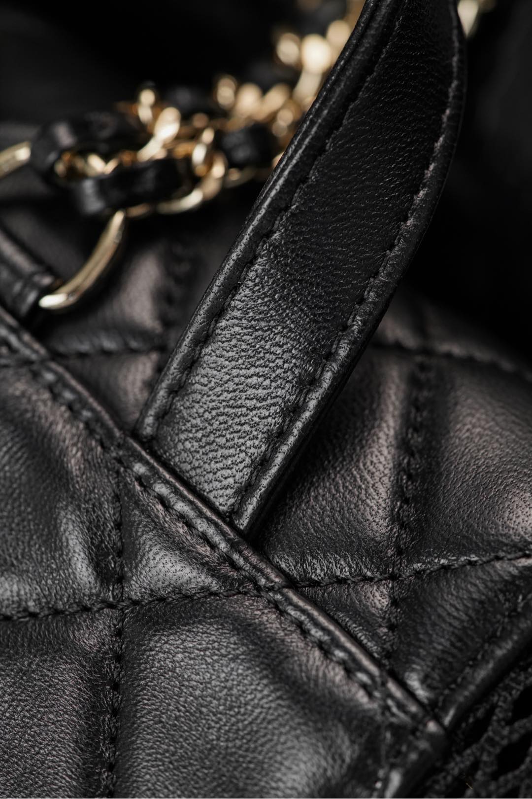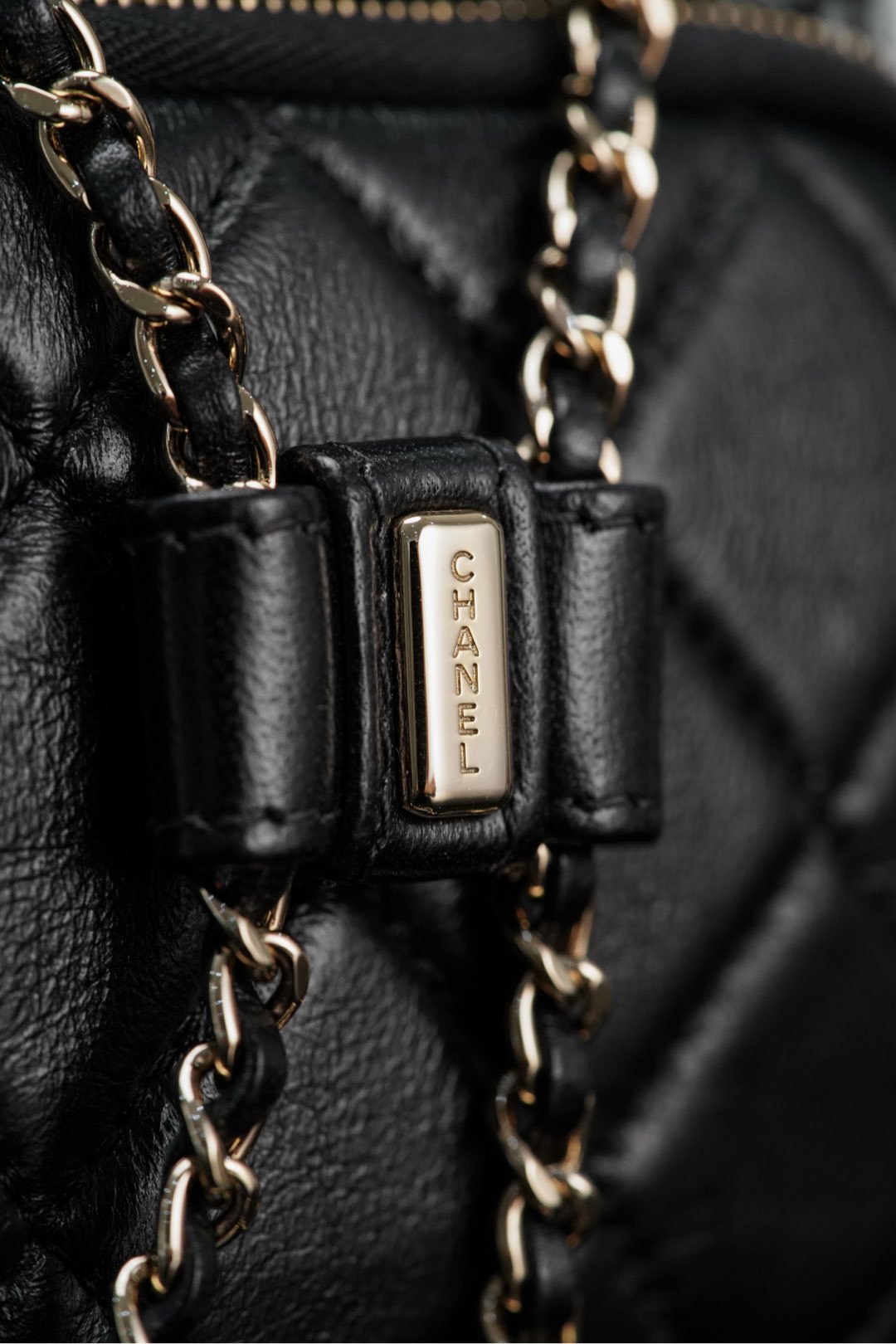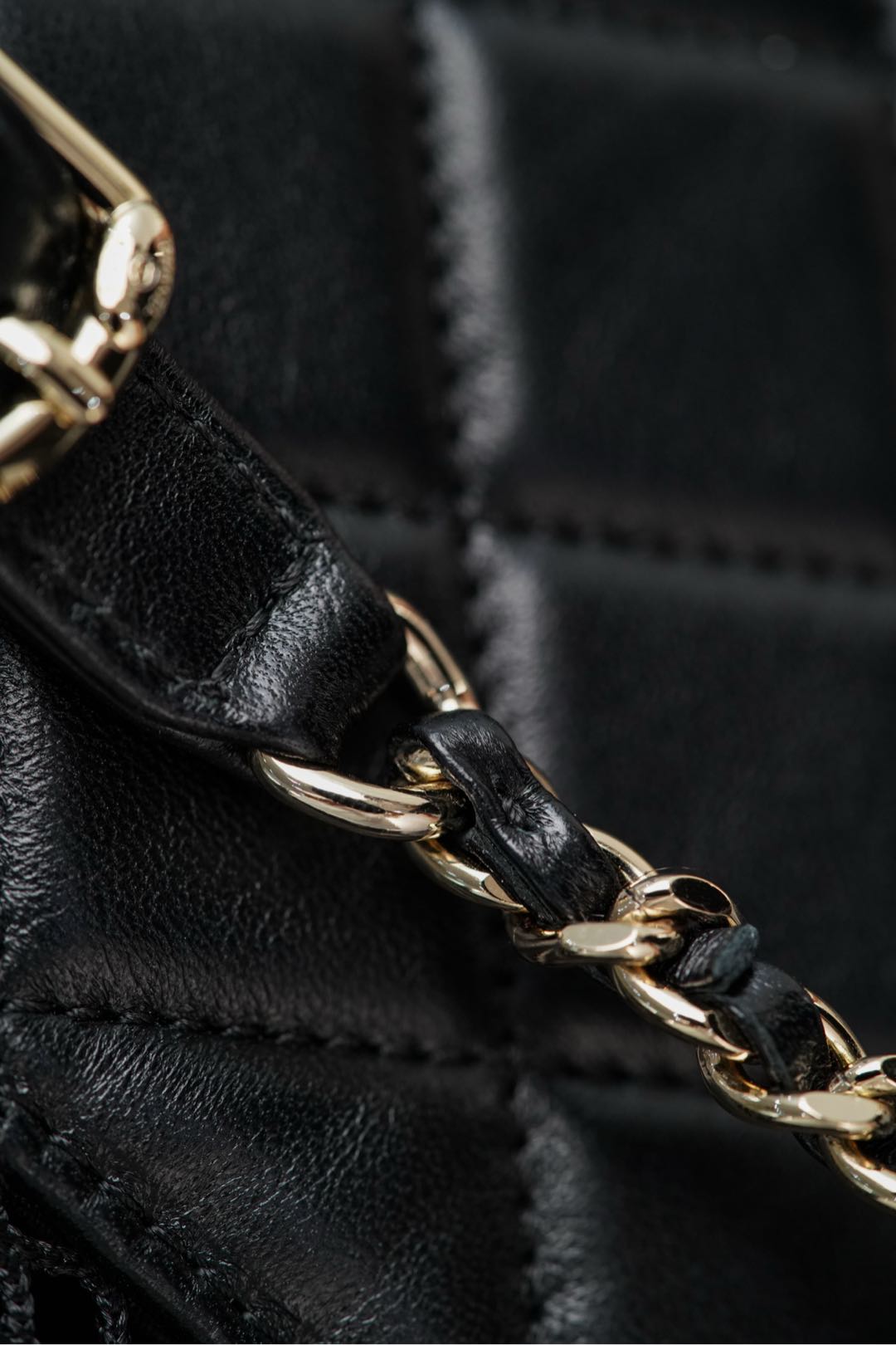 浅金色五金配件鉴赏🔥;边缘打磨圆润、光泽感极强🤩!低调奢华的香槟金色五金!犹如镜面般闪耀✨ 双肩链条为皮穿金属链、开口为抽拉收口设计!