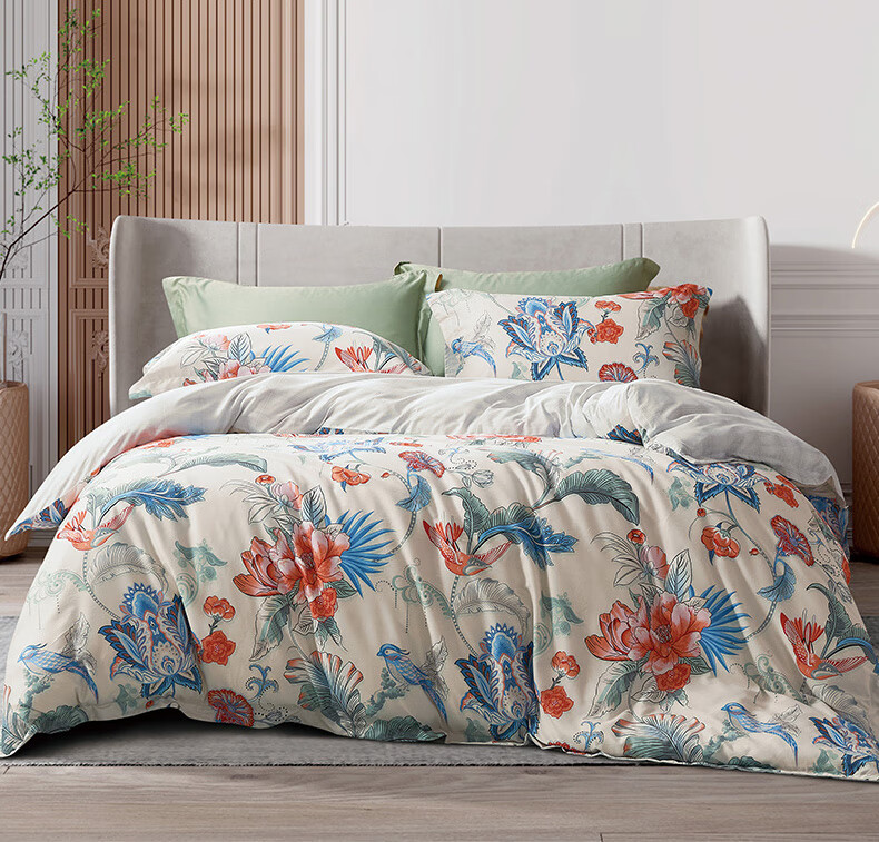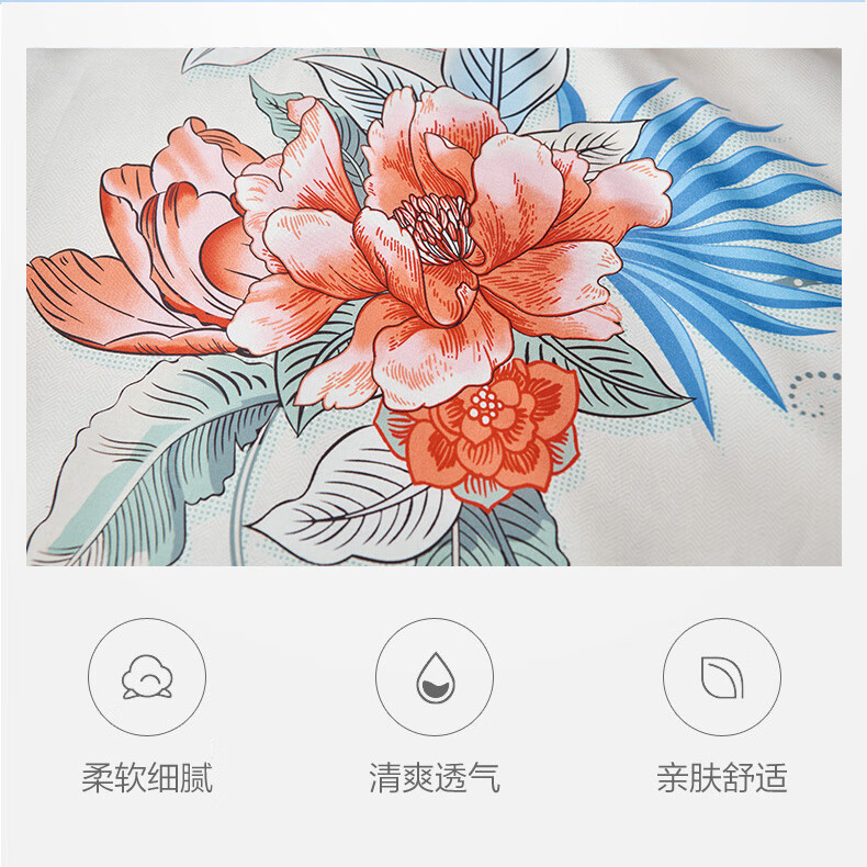 富安娜(FUANNA)纯棉印花套件床单四件套/春涧鹊语/标准(被套203*229cm)