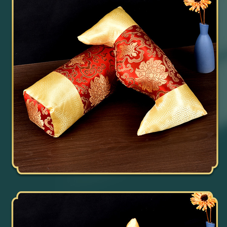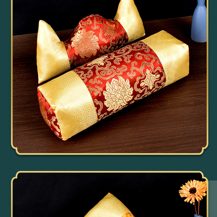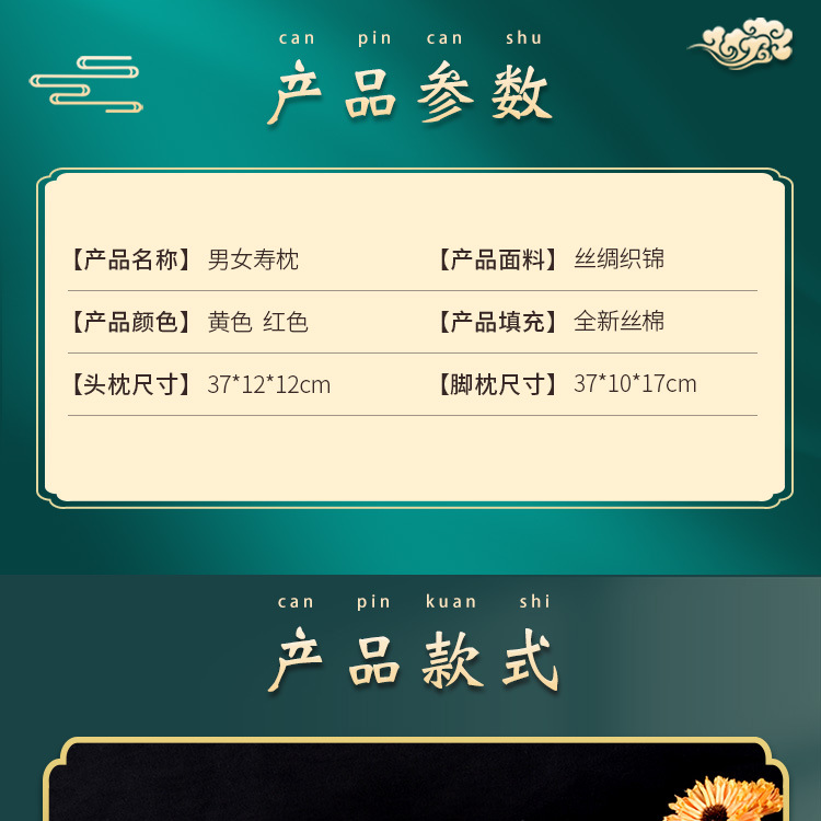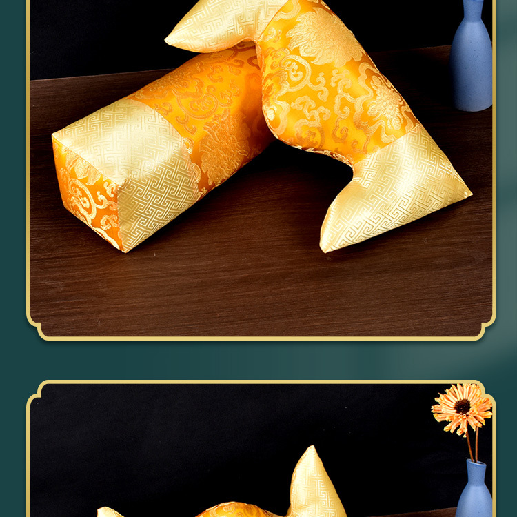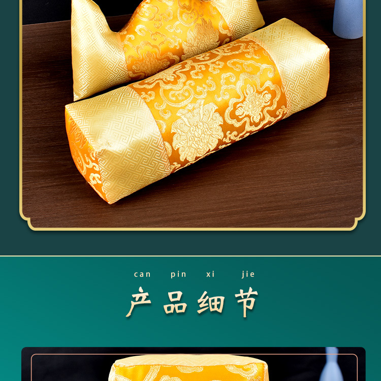 黄色 寿枕男女寿衣全套枕头脚蹬织锦布全新丝棉填充头枕脚枕