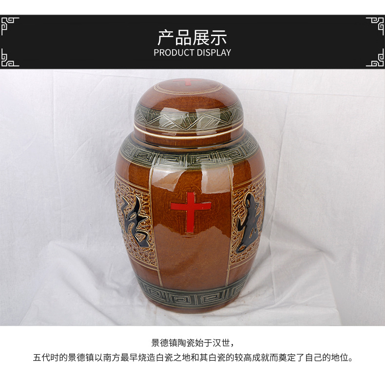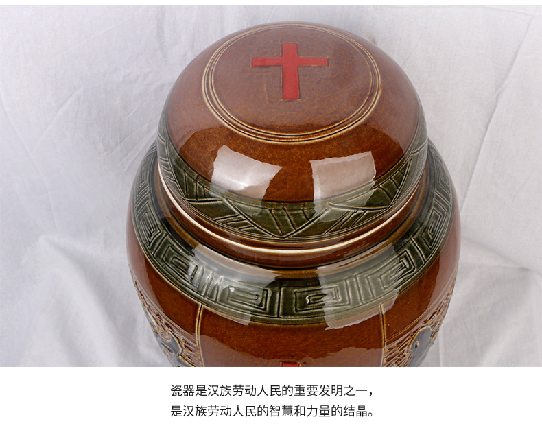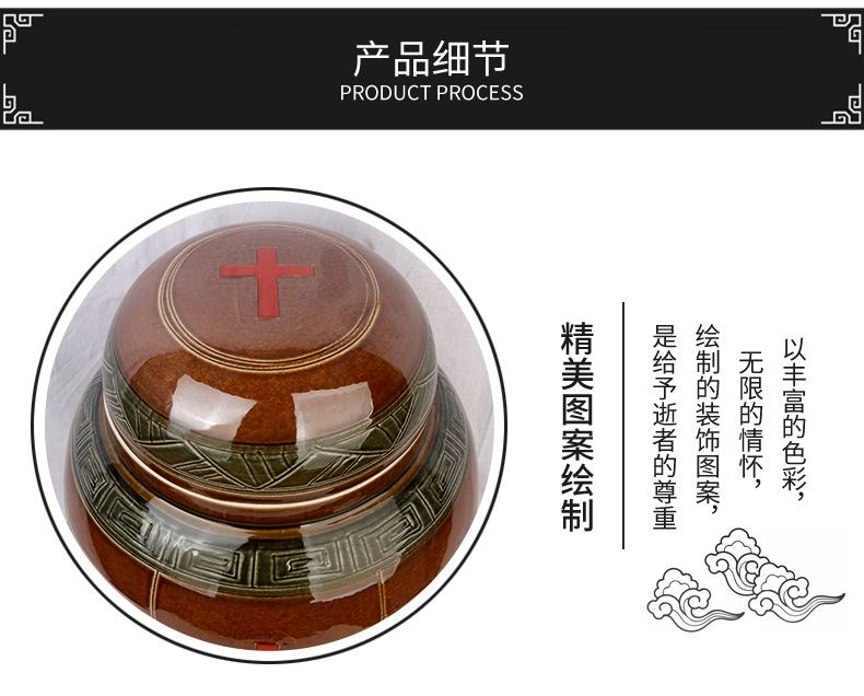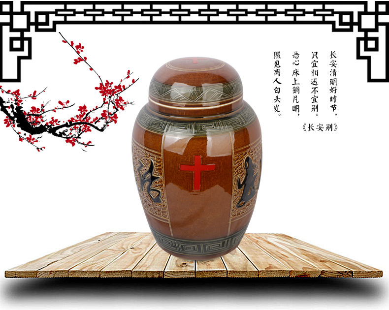 陶瓷骨灰盒 十字架宗教安息在乐园罐形陶瓷骨灰坛