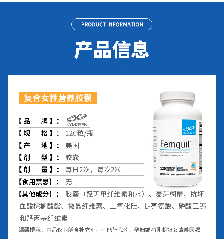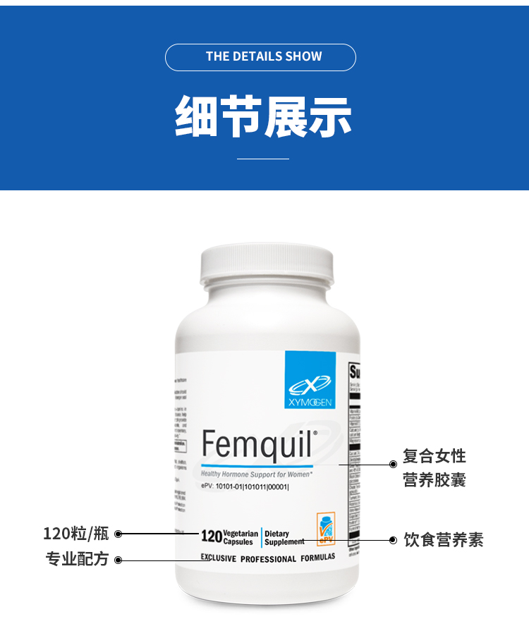 【效期至26年9月】复合女性营养胶囊 XYMOGEN Femquil 120 C 120粒/瓶