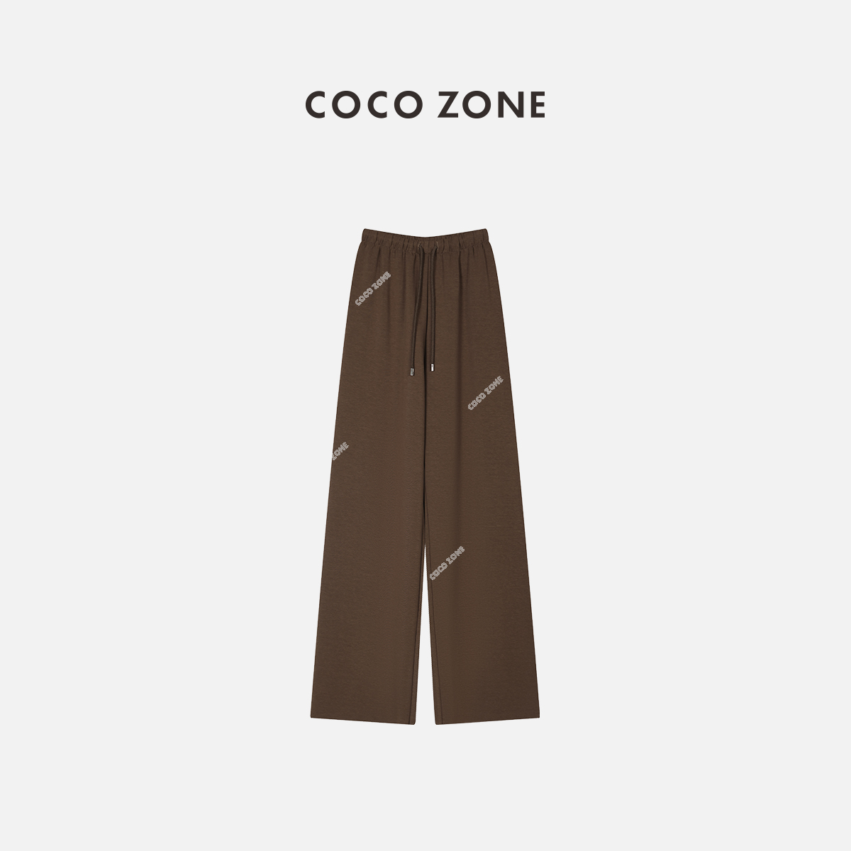 COCO ZONE空气裤通勤风春秋款系绳黑色阔腿休闲裤23C19257