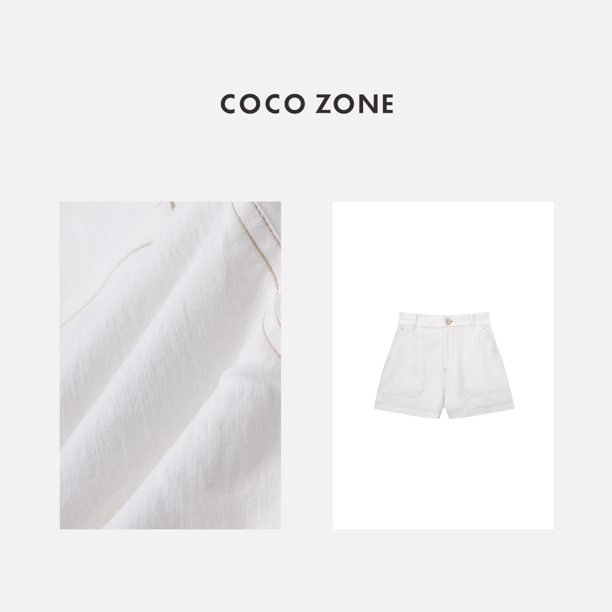 COCO ZONE“比列裤”2024夏季时尚纯色明线设计短裤百搭显瘦裤子CC1B0906