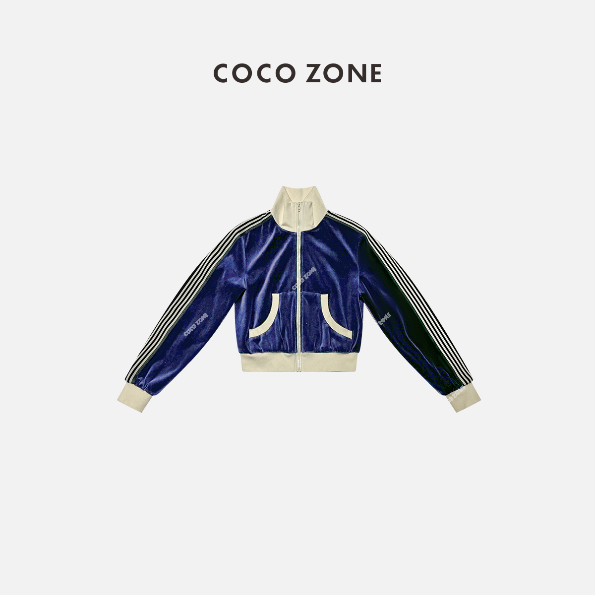 COCO ZONE2024时尚条纹撞色拼接外套立领拉链短款上衣CC2A0269