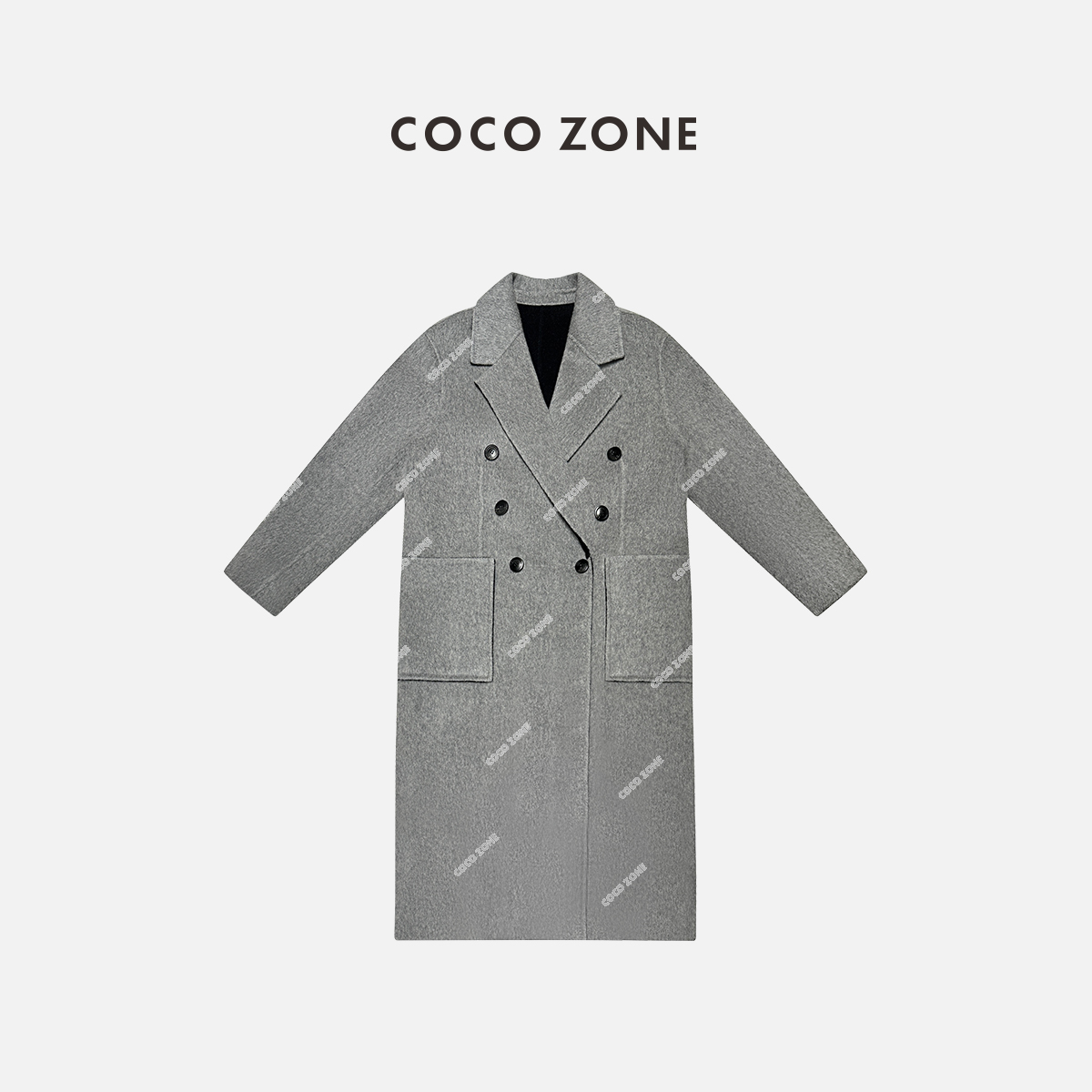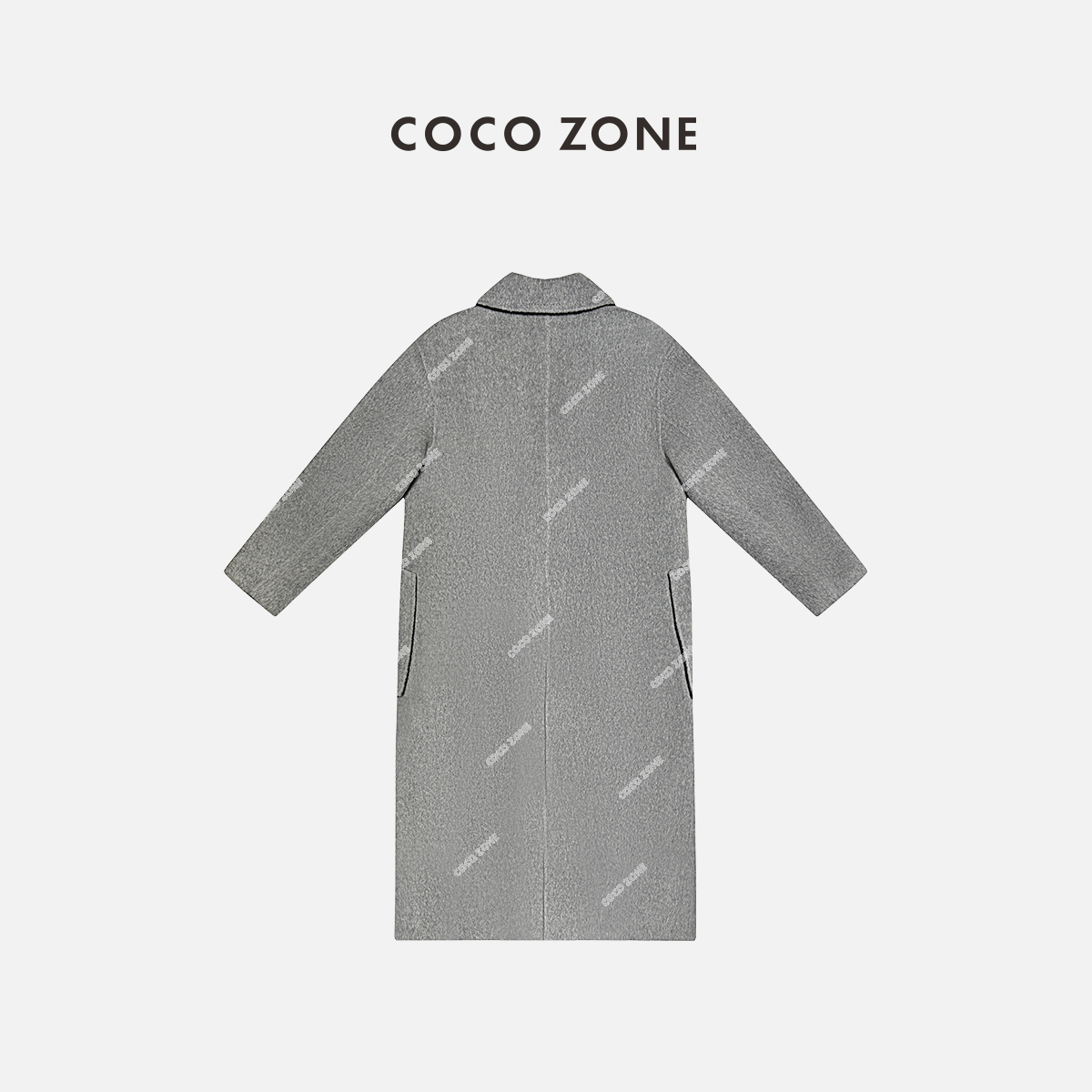 COCO ZONE 法式气质灰毛呢大衣西装领A字秋冬外套23C30503