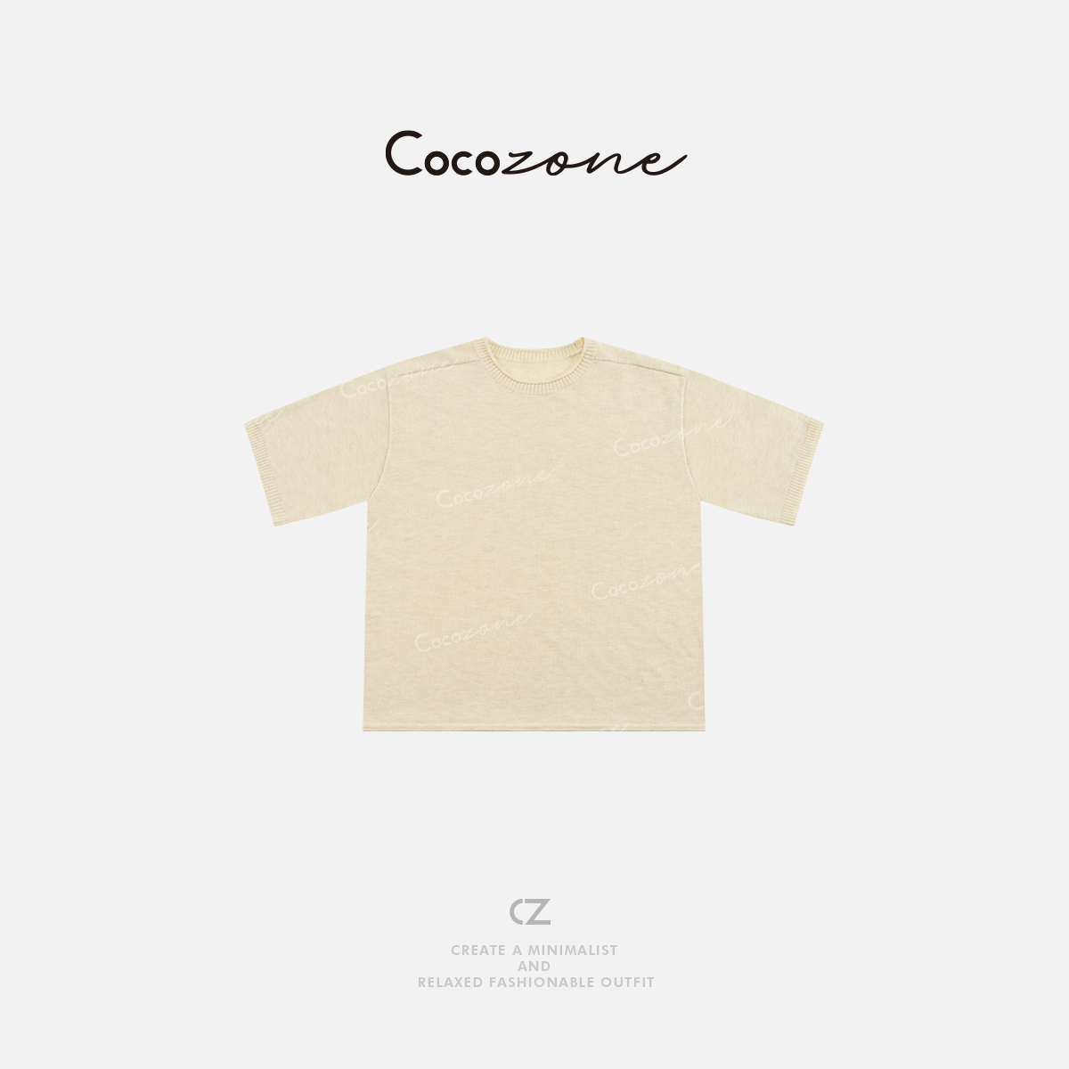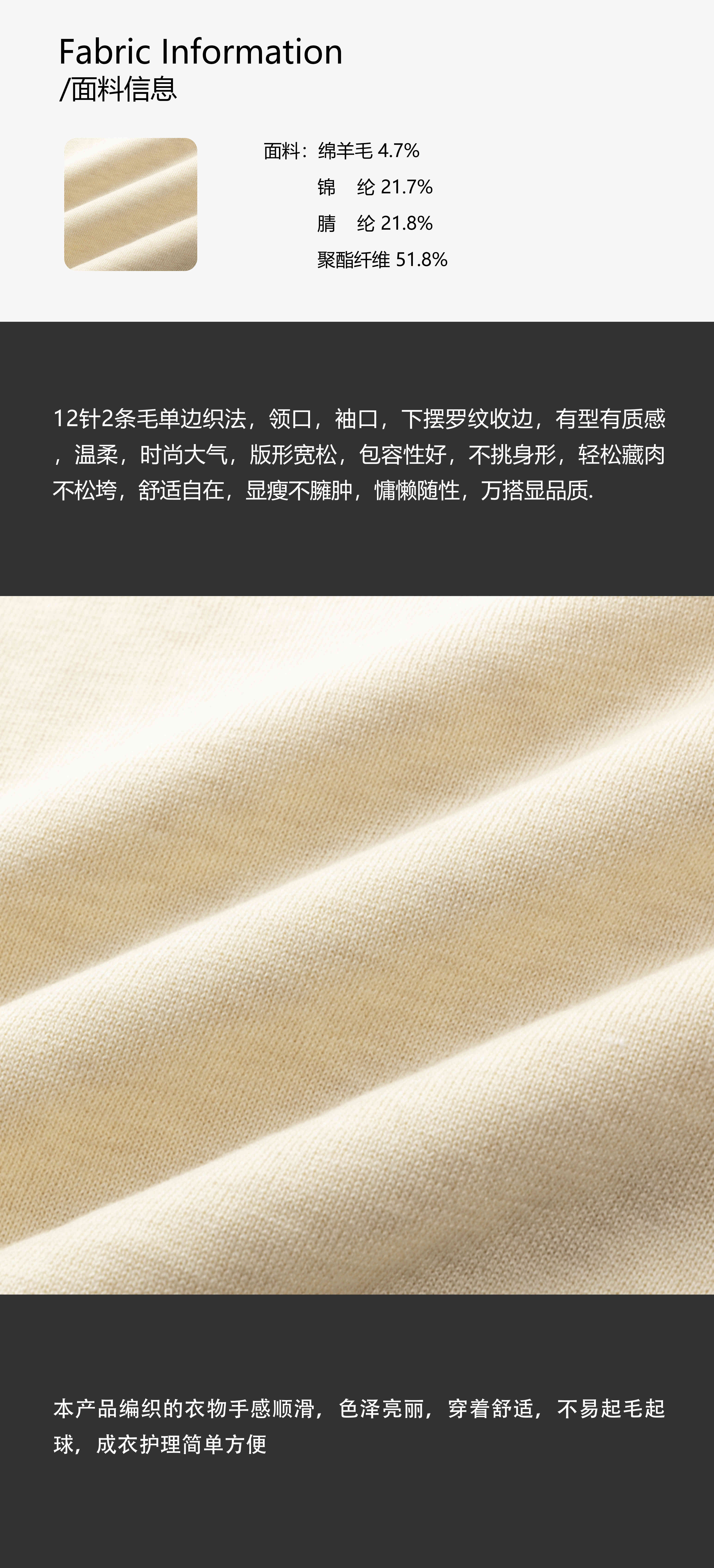 COCO ZONE 刘一一 圆领杏色简约显瘦罗纹收边女毛针织衫ACD1A0160