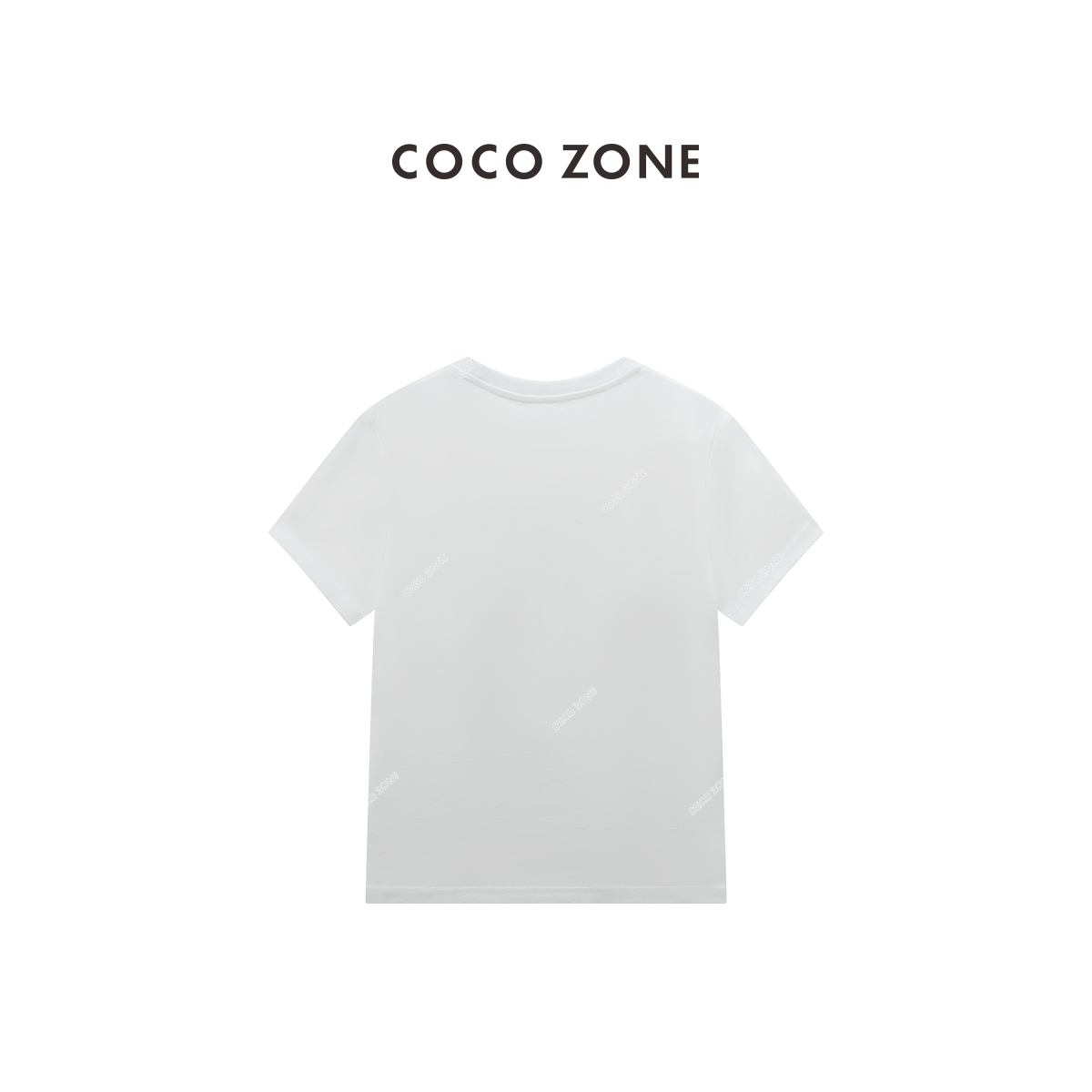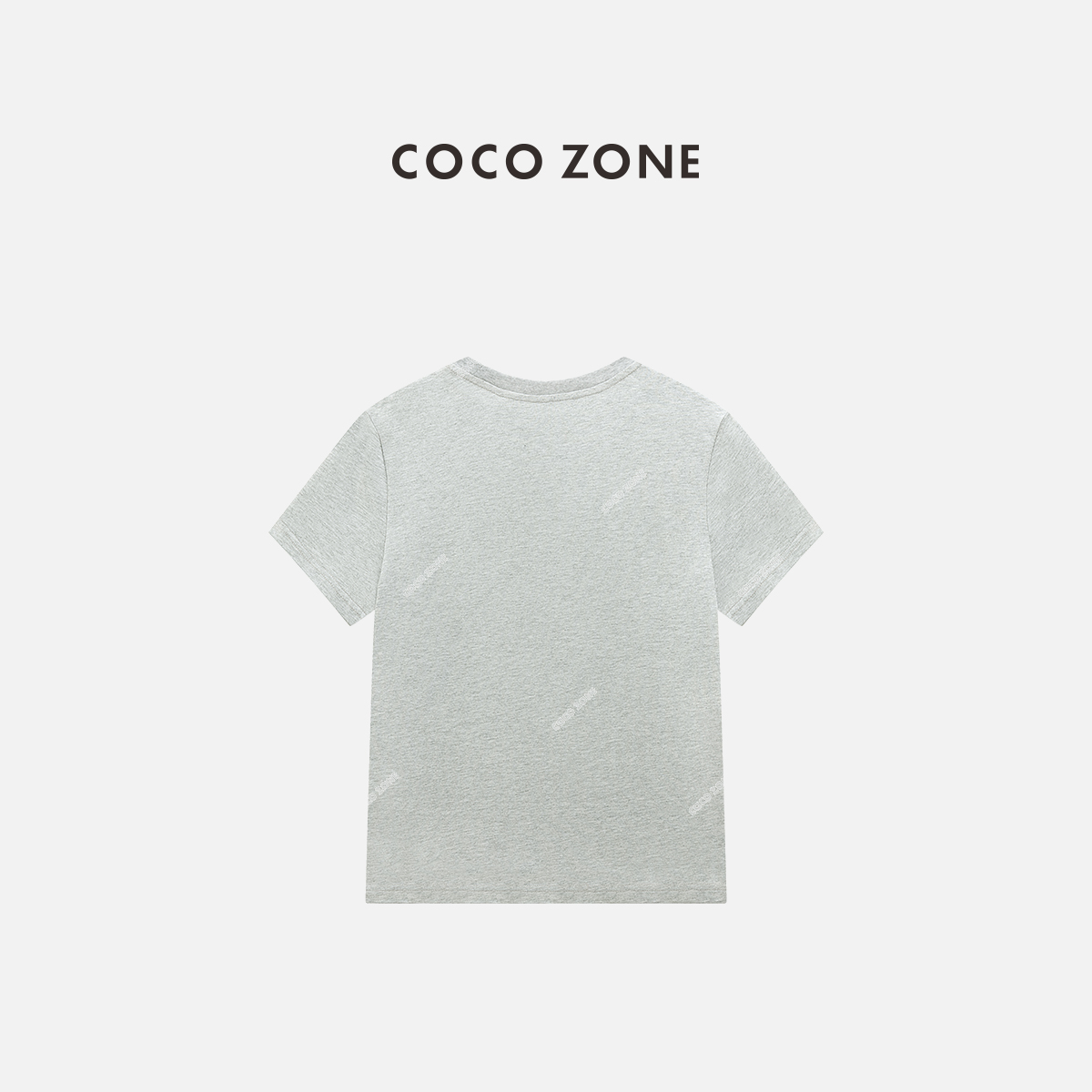 COCO ZONE 纯色正肩短袖T恤时尚字母圆领上衣CC1C1689