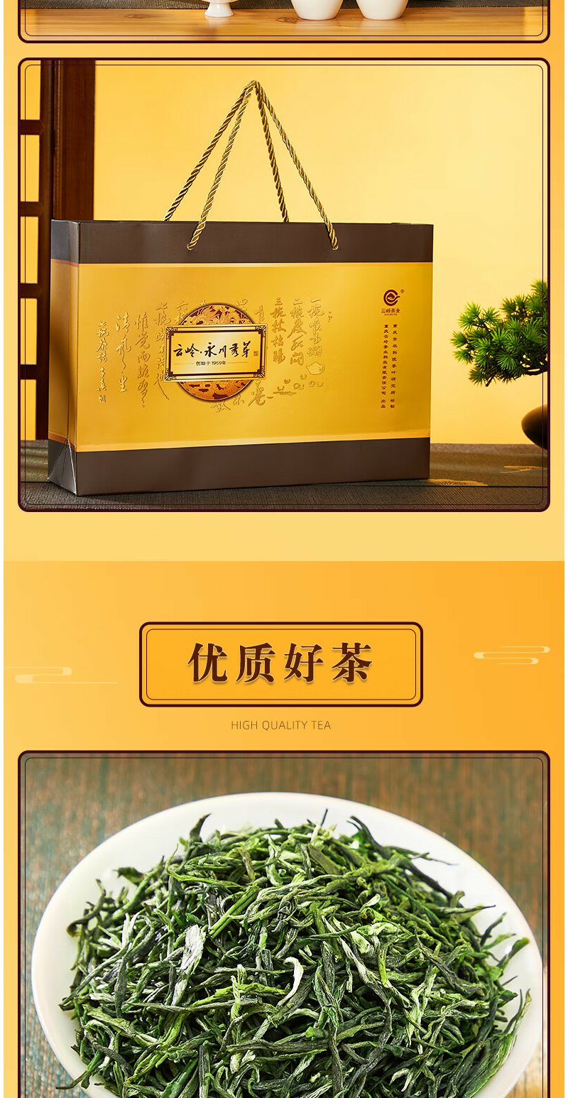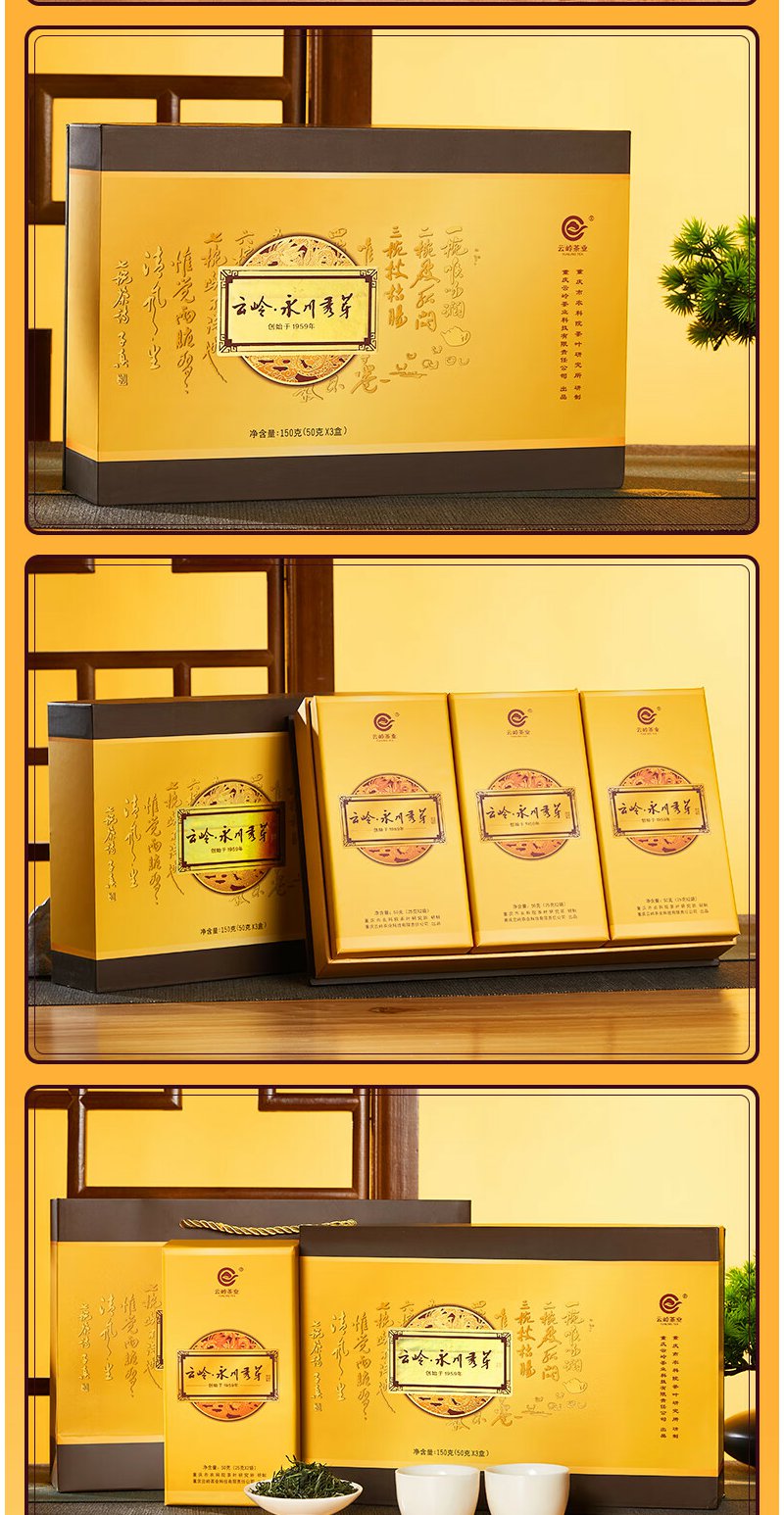 云岭茶业 永川秀芽2024新茶明前绿茶 高端(特川)茶叶礼盒装春茶重庆特产 天地盖礼盒150g