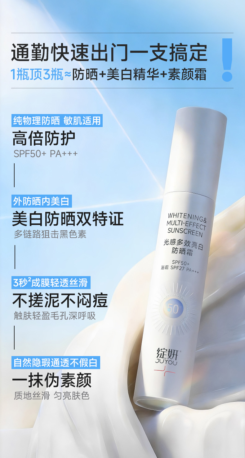 【三合一美白防晒素颜霜】绽妍 光感亮白防晒霜50g 素颜美白防晒三合一 隔离轻薄妆前乳敏肌可用