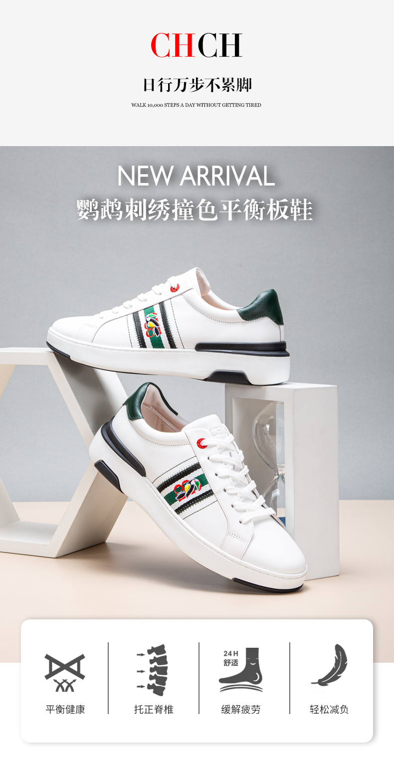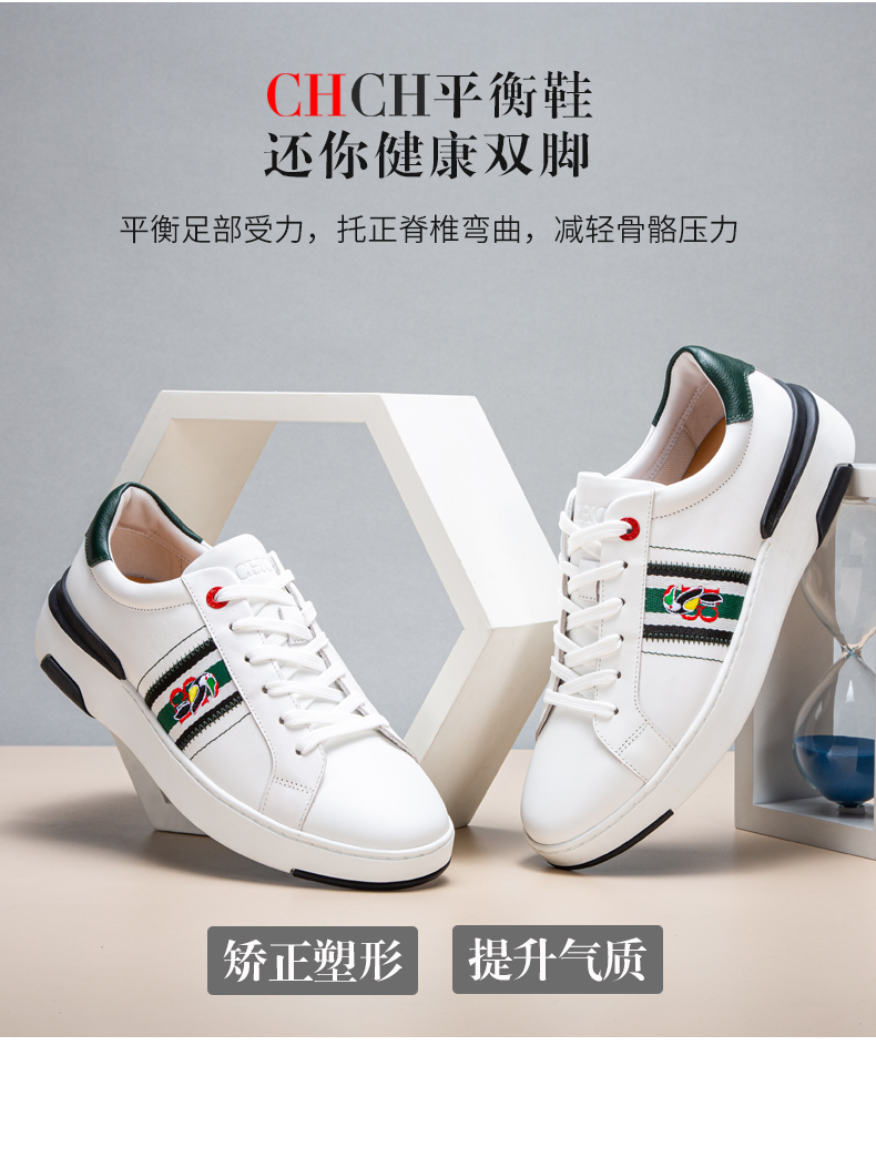 CHCH平衡鞋牛皮面料刺绣撞色板鞋小白鞋男鞋CN1A2013