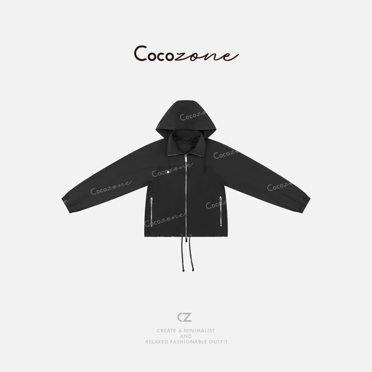 COCO ZONE 刘一一 “穿梭徒步”简约连帽抽绳双头拉链外套CD2A0351