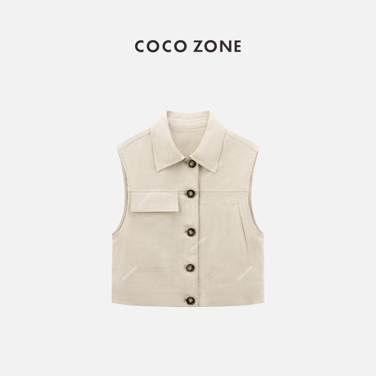 COCO ZONE"弗洛伦萨"夏季翻领单排扣无袖马夹简约设计感外搭上衣CC2B0864