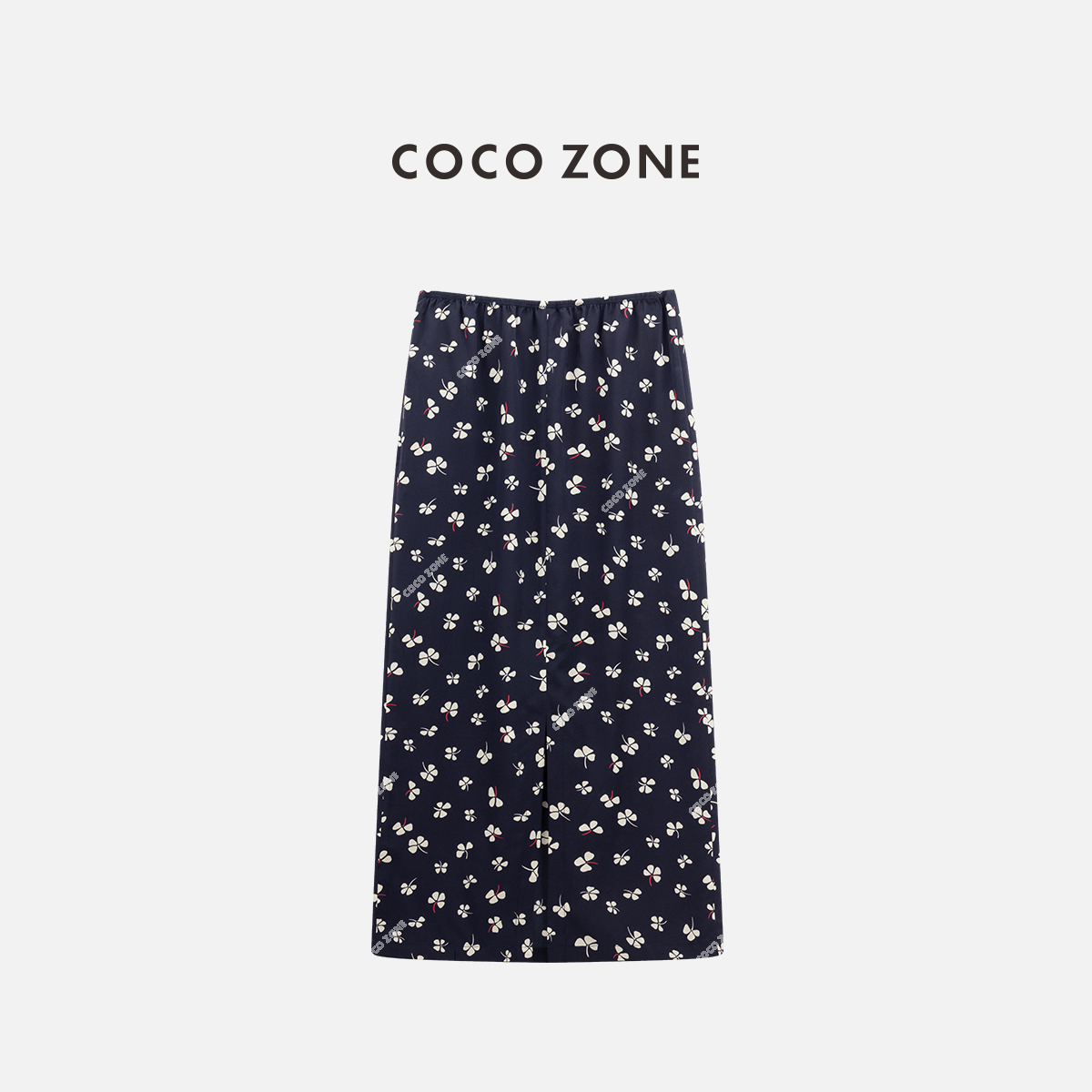 COCO ZONE 100桑蚕丝复古碎花松紧腰半身裙CC1C1746