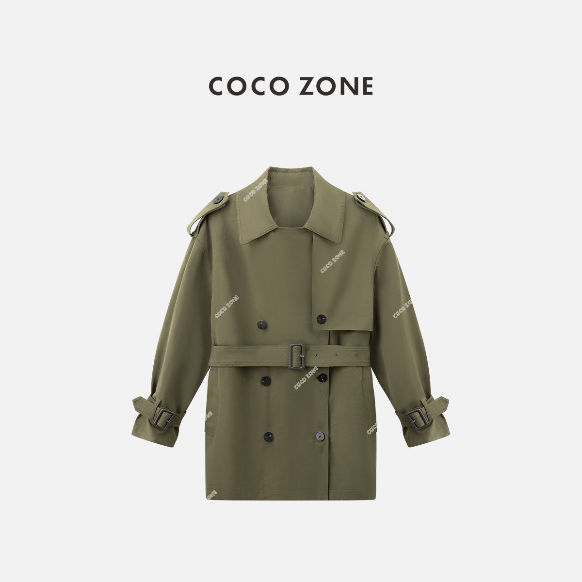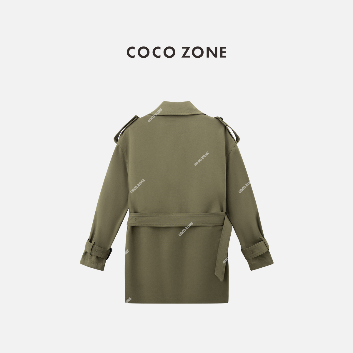 COCO ZONE "绿色风衣"翻驳领通勤双排扣设计上衣CD1A0276