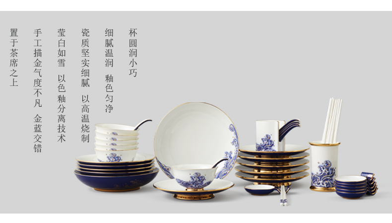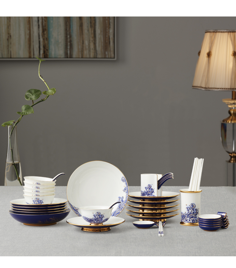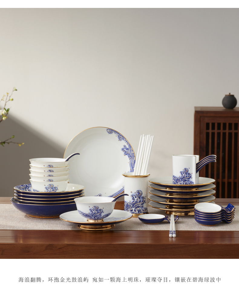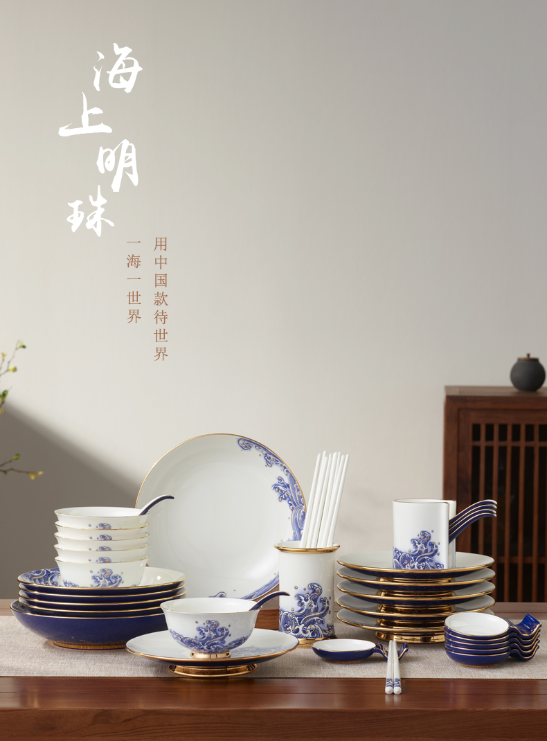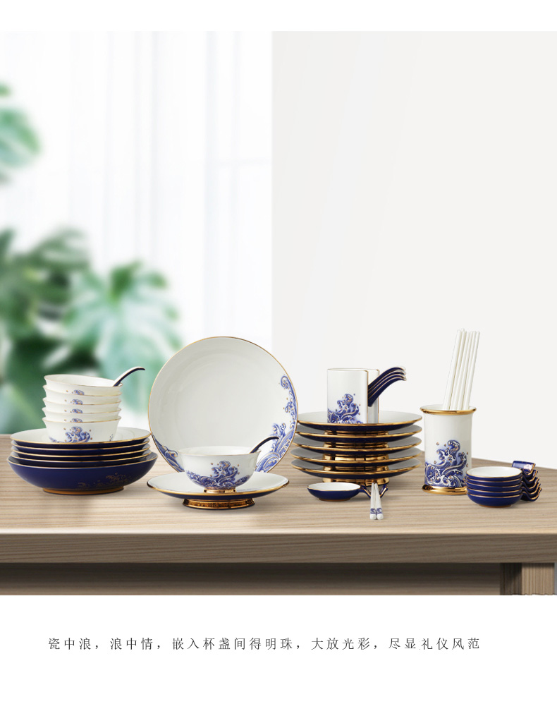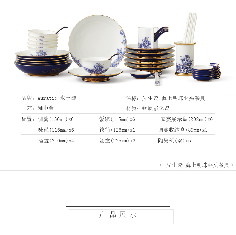 永丰源先生瓷海上明珠44头中餐具豪华餐具家用碗盘碟礼盒