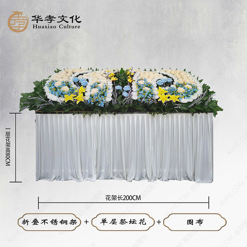 折叠不锈钢架+单层祭坛花+围布