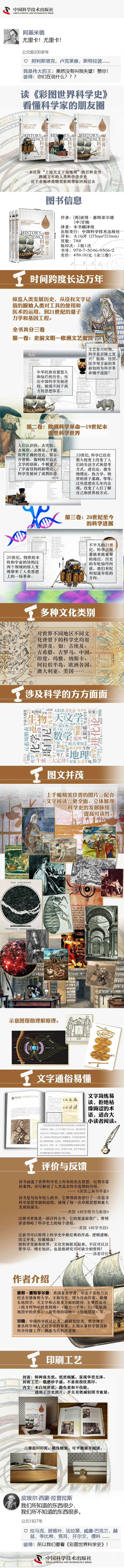 本书是一部非常精彩的知识百科,属普及型的科学史,是一幅科学发展的全景式长卷。本书图片丰富、印制精良,内容有趣,讲述了人类是如何探究我们身边的物质、生命和宇宙的奥秘。本书上千幅精美珍贵的历史图片和精炼生动的语言,向人们展示了在人类几千年的历史进程中科学发展的主体脉络,介绍了各个历史阶段科学创新和发现的代表人物及这些著名科学家创新思维和发现过程。