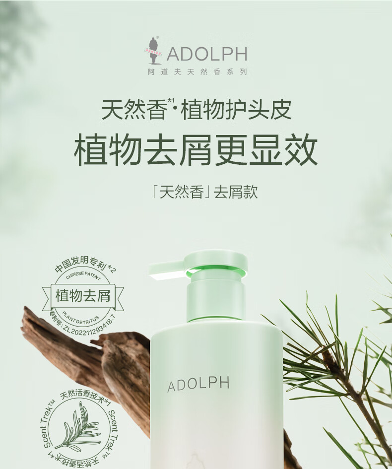 阿道夫天然香植物香氛洗发露(头皮去屑)618ml