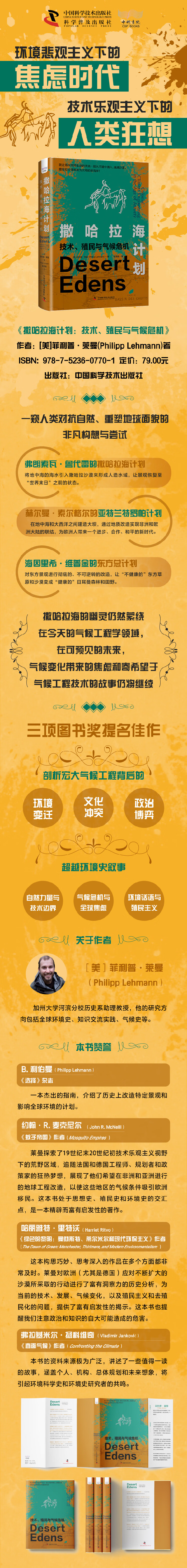 1.回溯撒哈拉海、亚特兰特罗帕及东方总计划三大未竟的气候改造巨梦,一窥人类对抗自然、重塑地球面貌的非凡构想与尝试;2.三项图书奖提名佳作,剖析宏大气候工程背后的环境变迁、文化冲突与政治博弈;3.不仅是一部环境史,更是对人类与自然、殖民主义与全球化挑战的深刻反思。