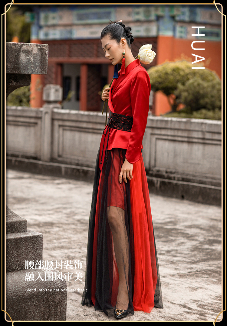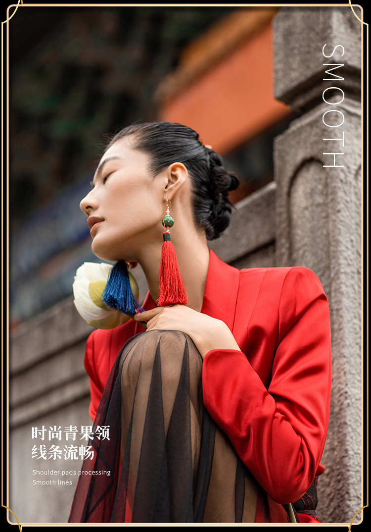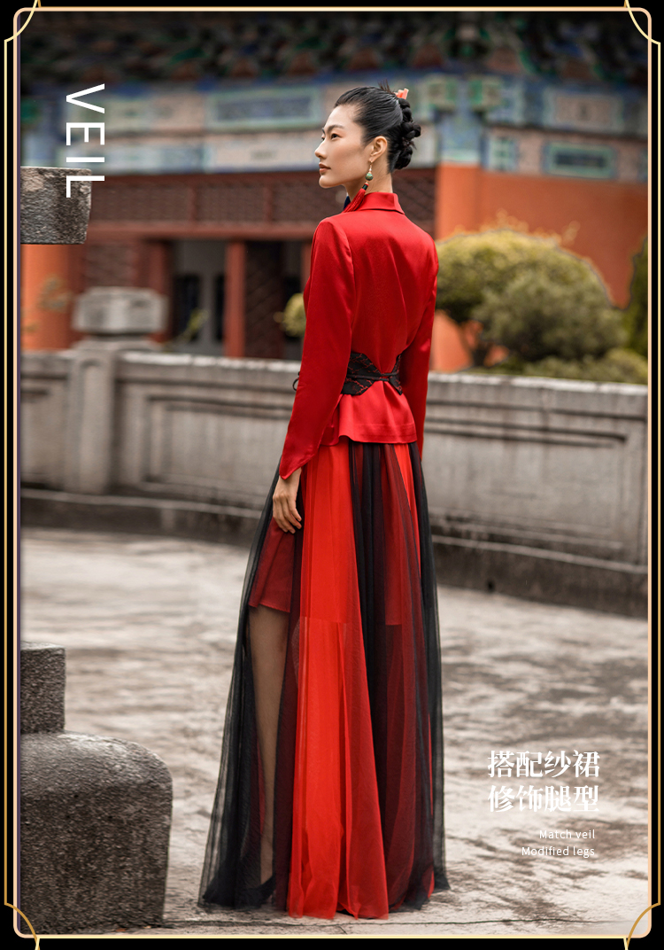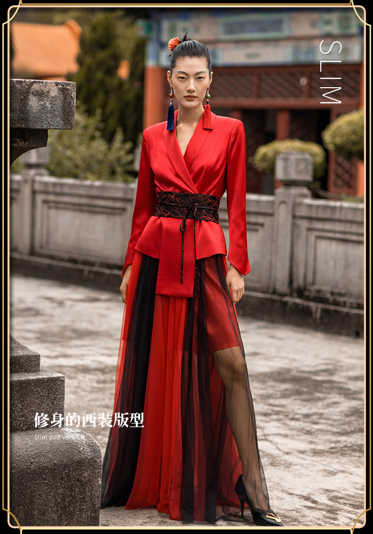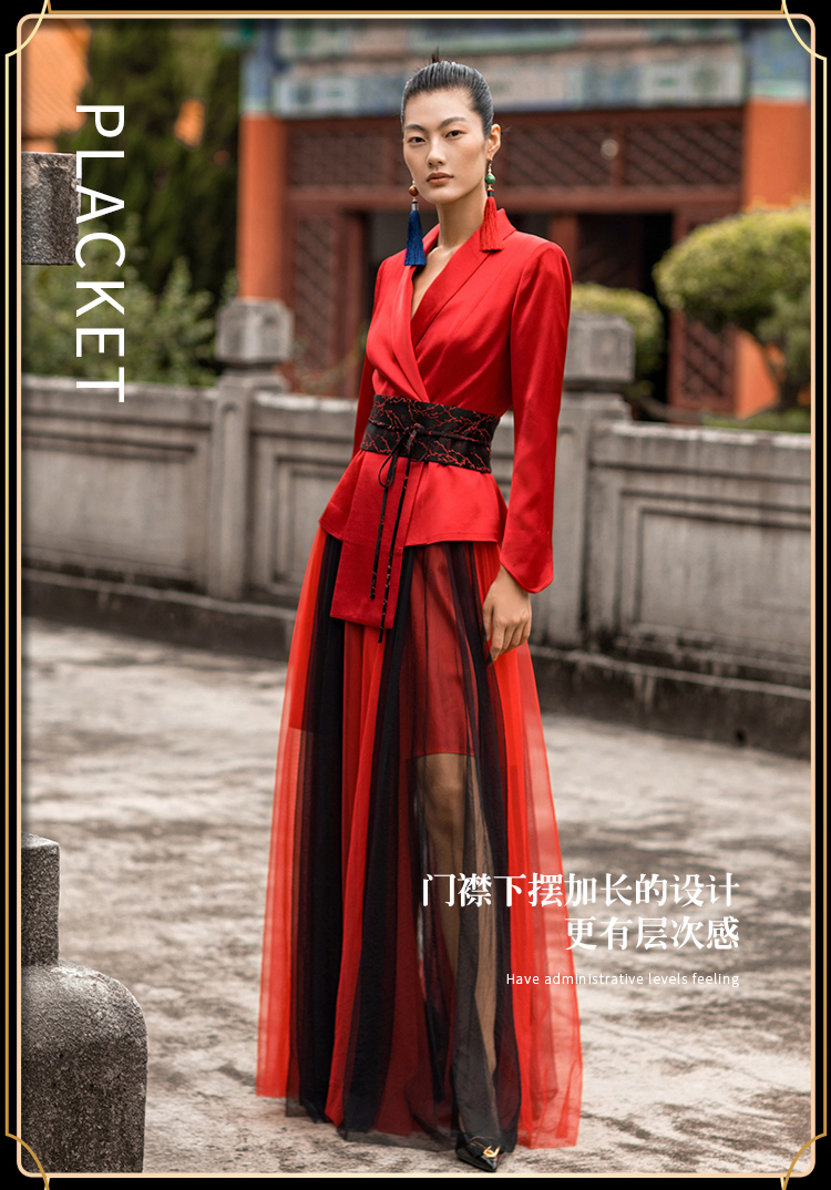 【定制款】红黑撞色西装外套女加长下摆两件套 定制款不支持退换