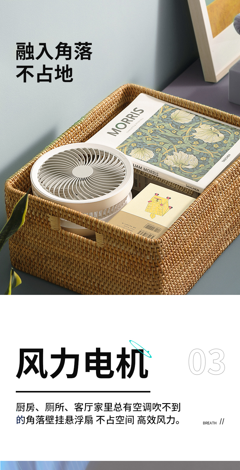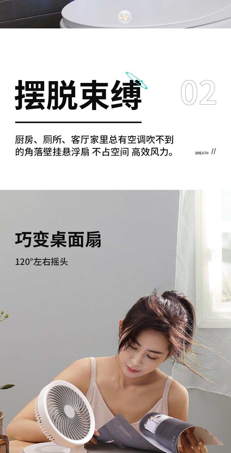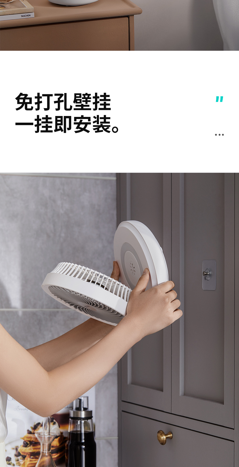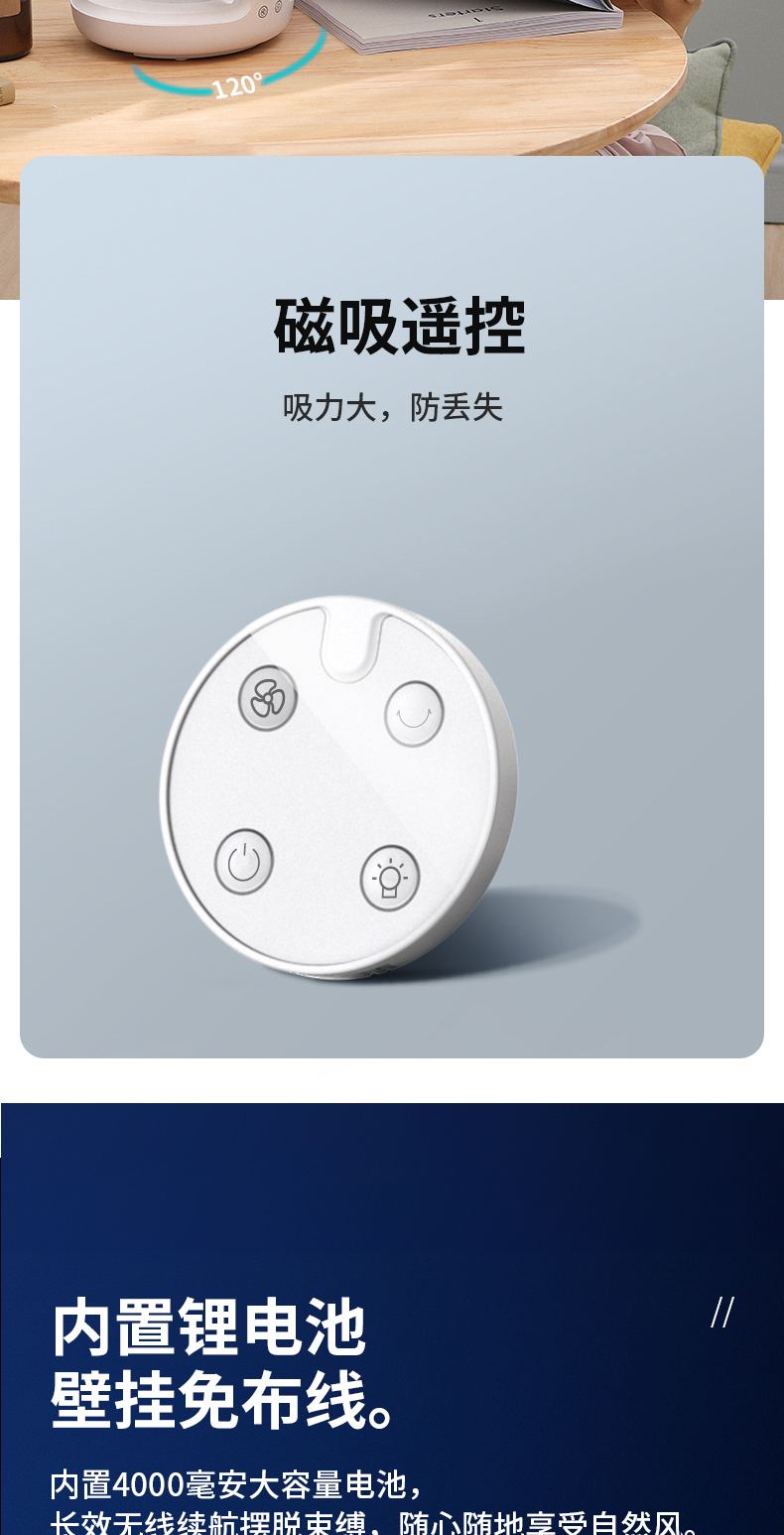 【壁挂/桌面两用】爱登无线悬浮循环扇E808/E808Y 可折叠/可壁挂/可摇头 4档风力调节 带夜间呼吸灯