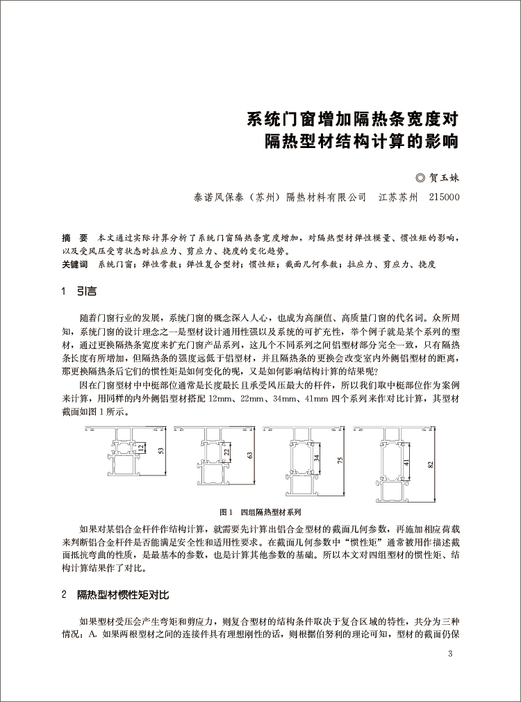 系统门窗增加隔热条宽度对隔热型材结构计算的影响 贺玉妹