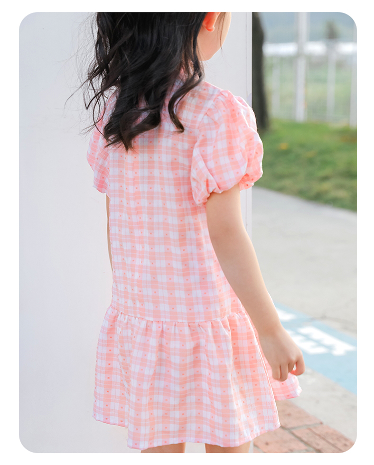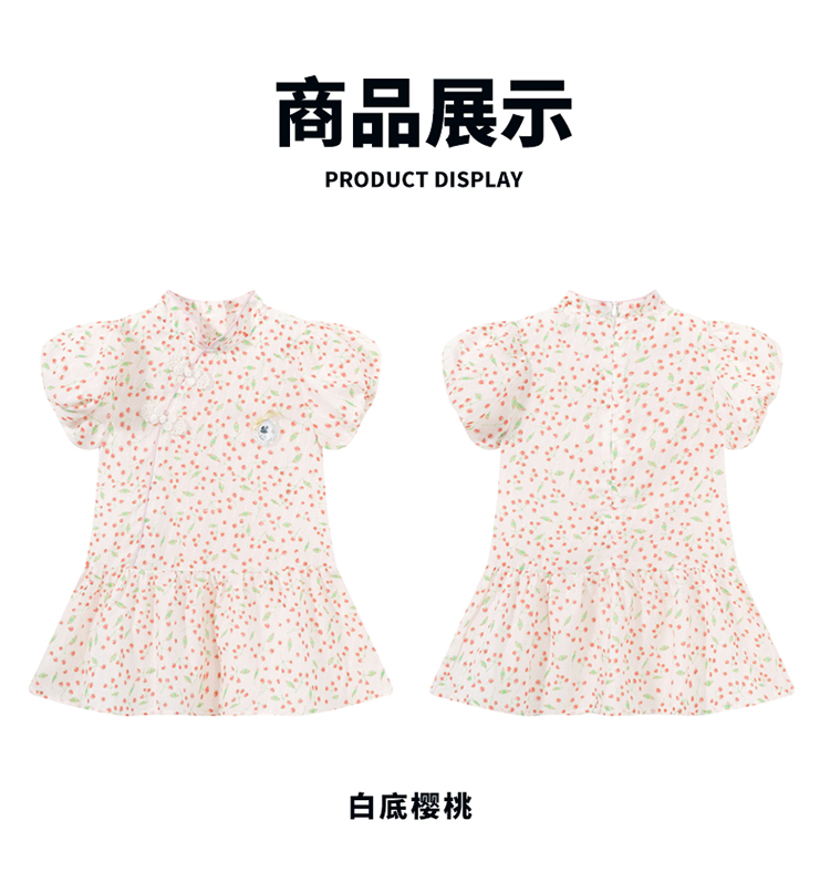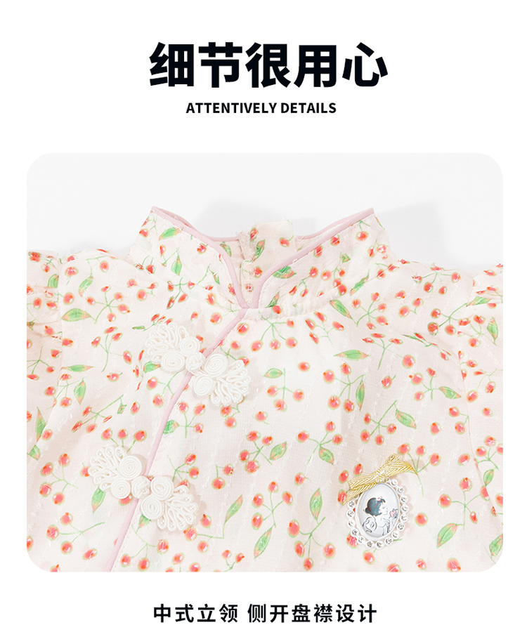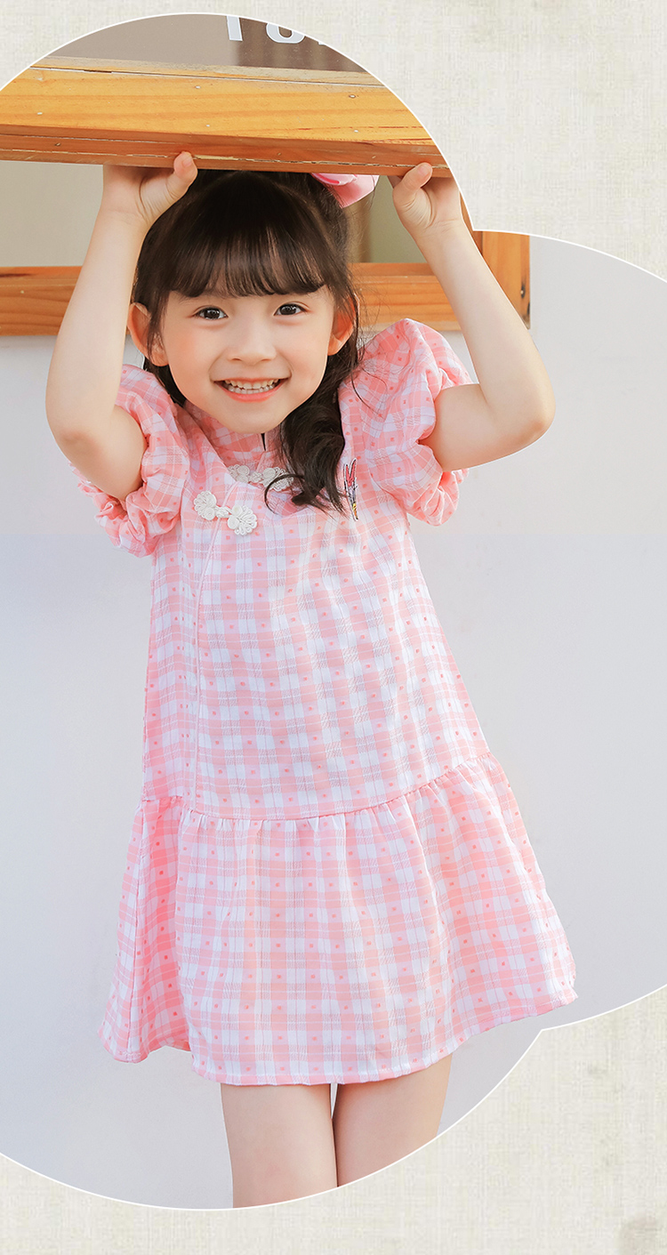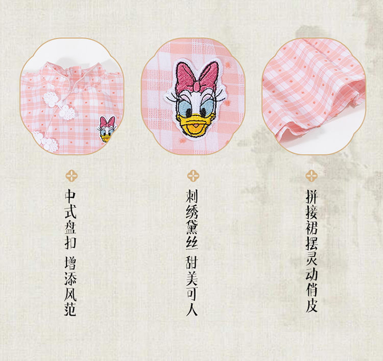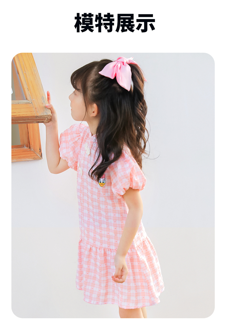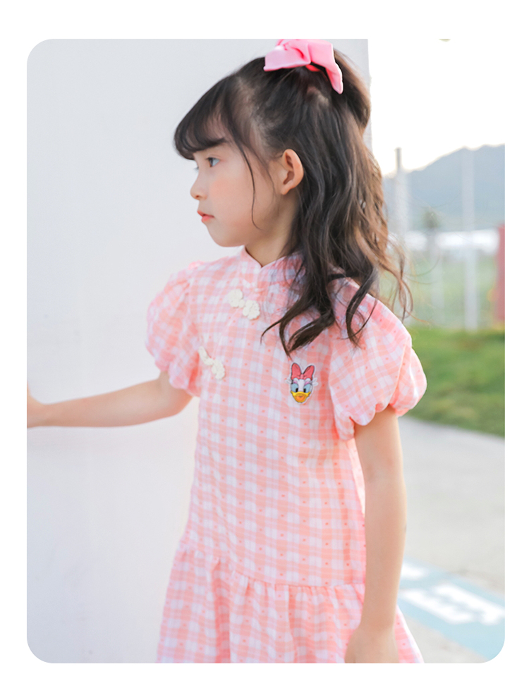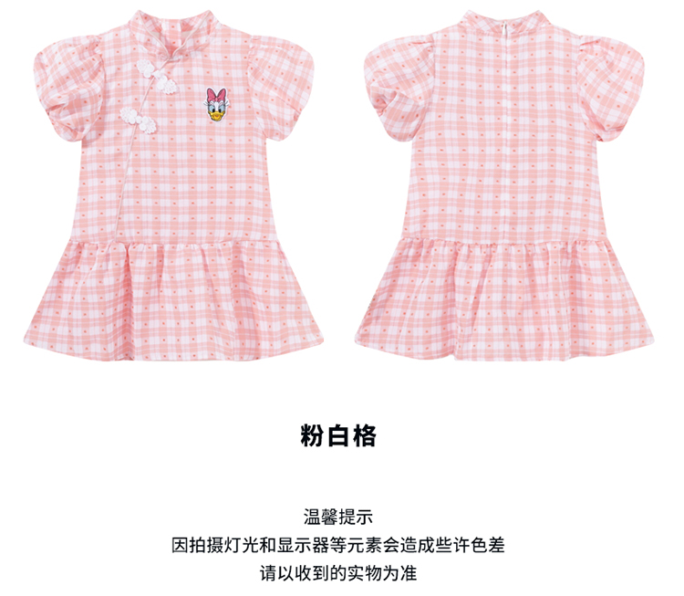 迪士尼【国潮&旗袍风】女童旗袍裙连衣裙夏季款轻薄透气满印格纹淑女裙232DQ0234