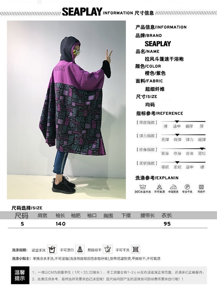 【装备速干袍】SEAPLAY 时尚拉风斗蓬 速干防风保温裕袍 潜水冲浪后可用