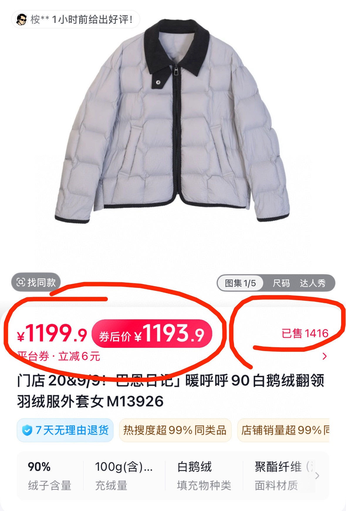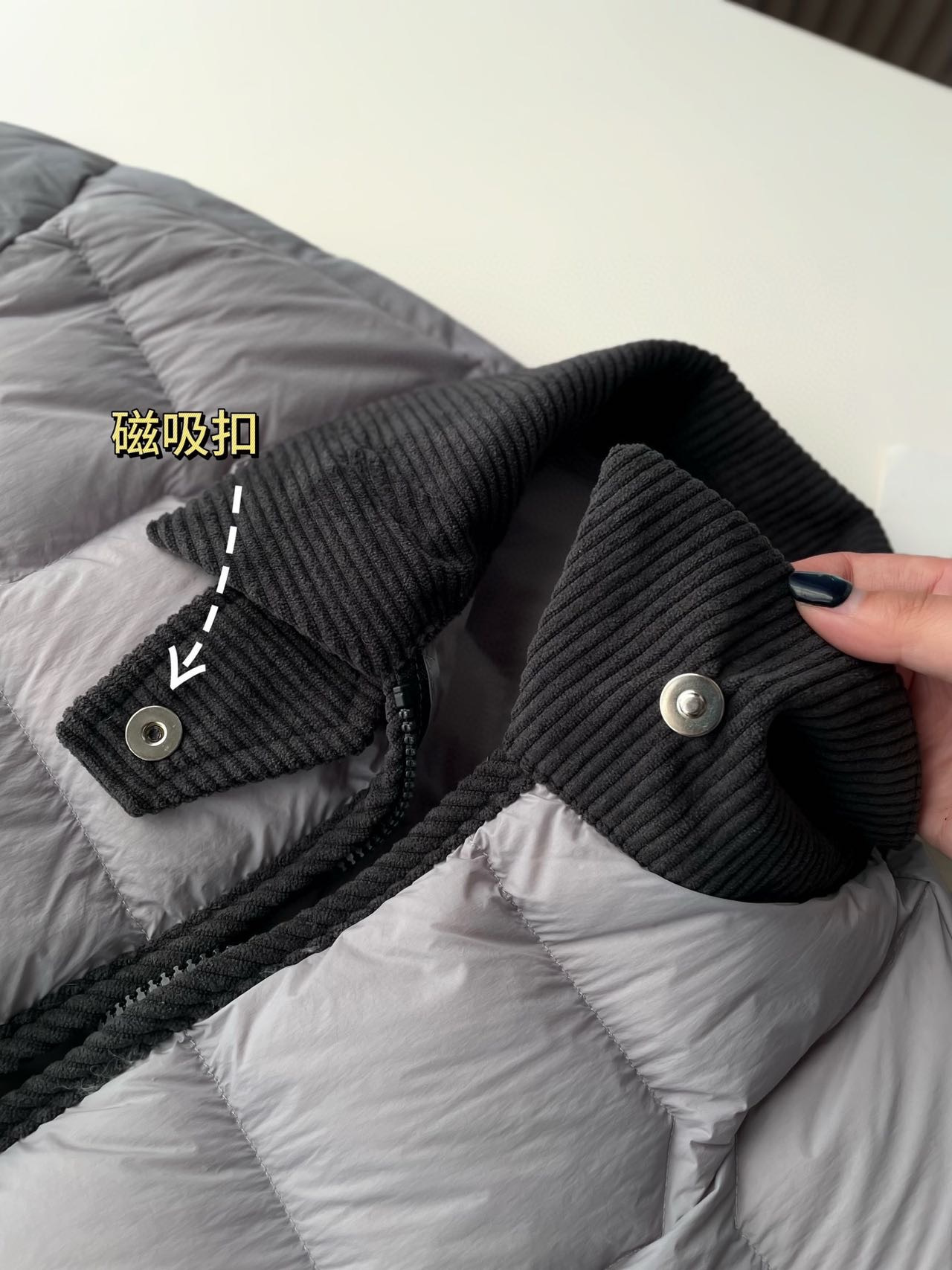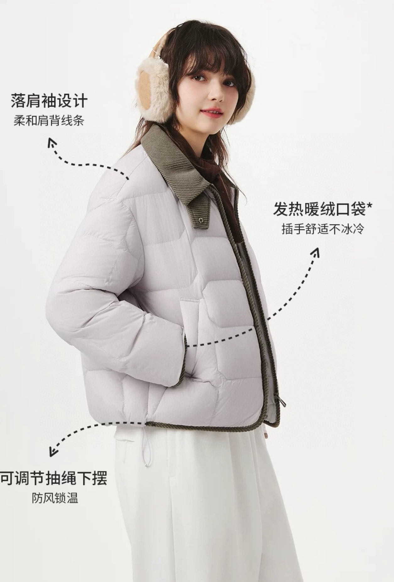 进口锁绒针工艺防钻绒,三防面料(防水防污防风)好打理。上身特有范儿,洋气的很!