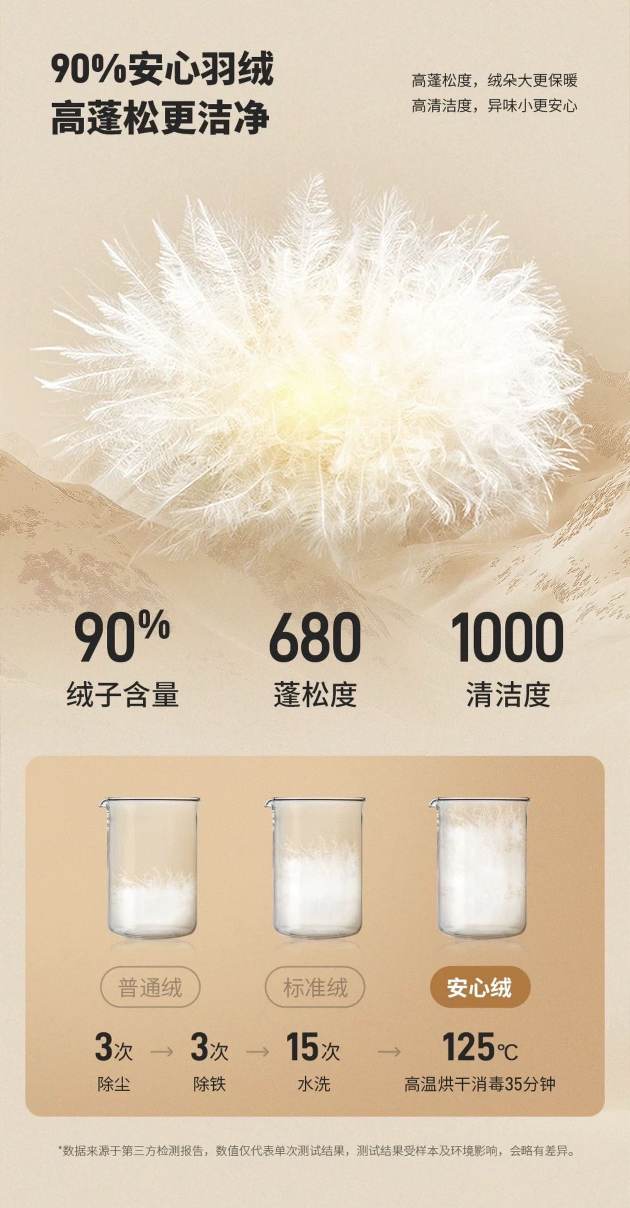 90%白鹅绒填充,绒朵大,蓬松保暖,