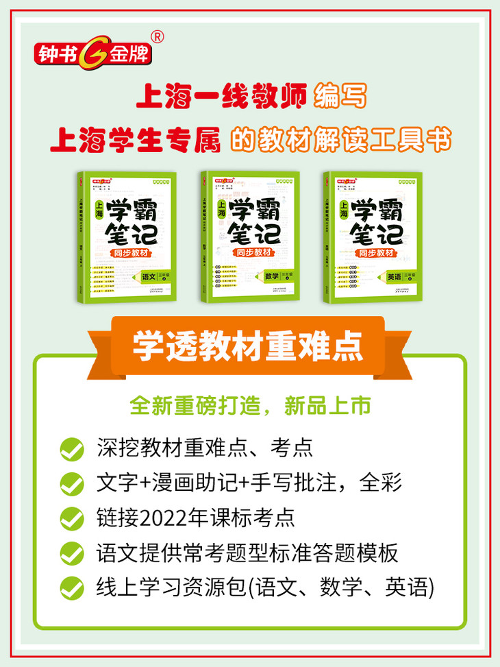 上海学霸笔记同步教材.上/尖子生笔记同步教材.上下:语文 数学 英语
