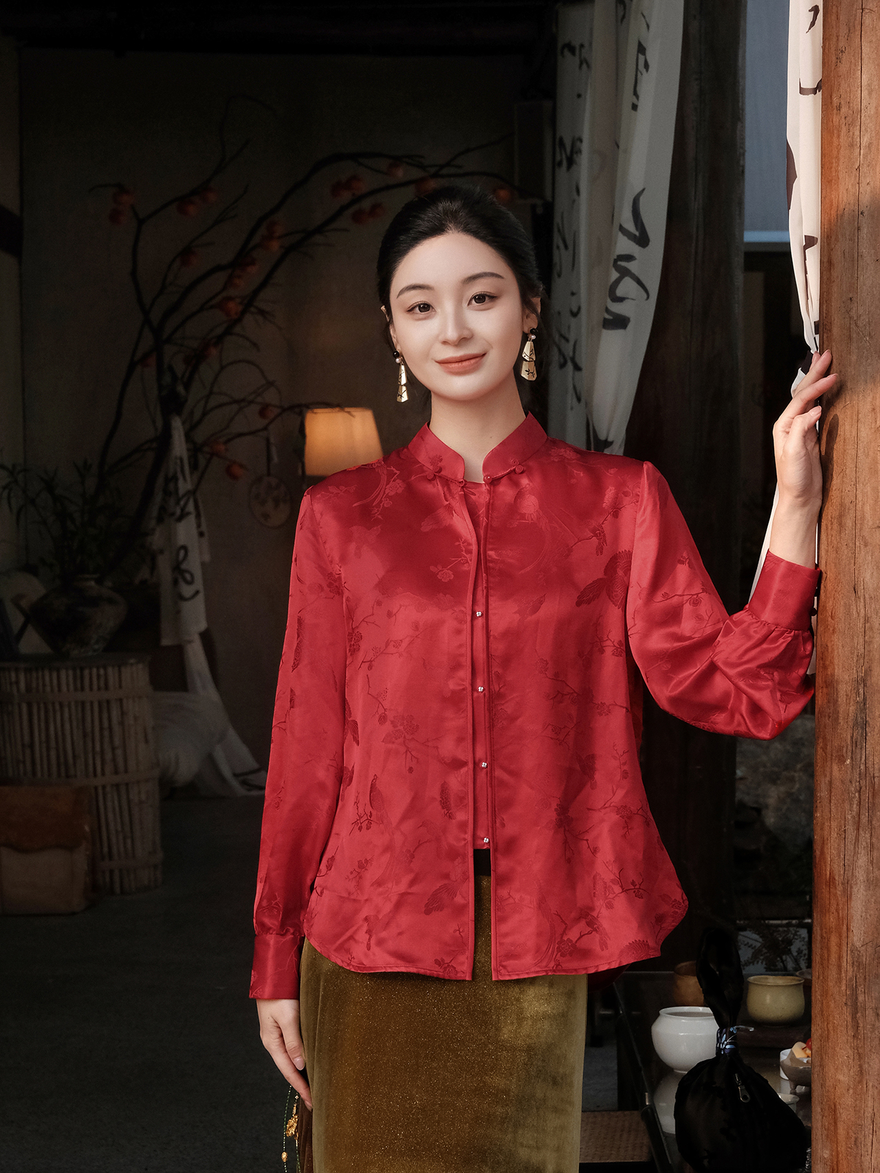 盛唐婧| 新中式桑蚕丝百搭立领对襟衬衫