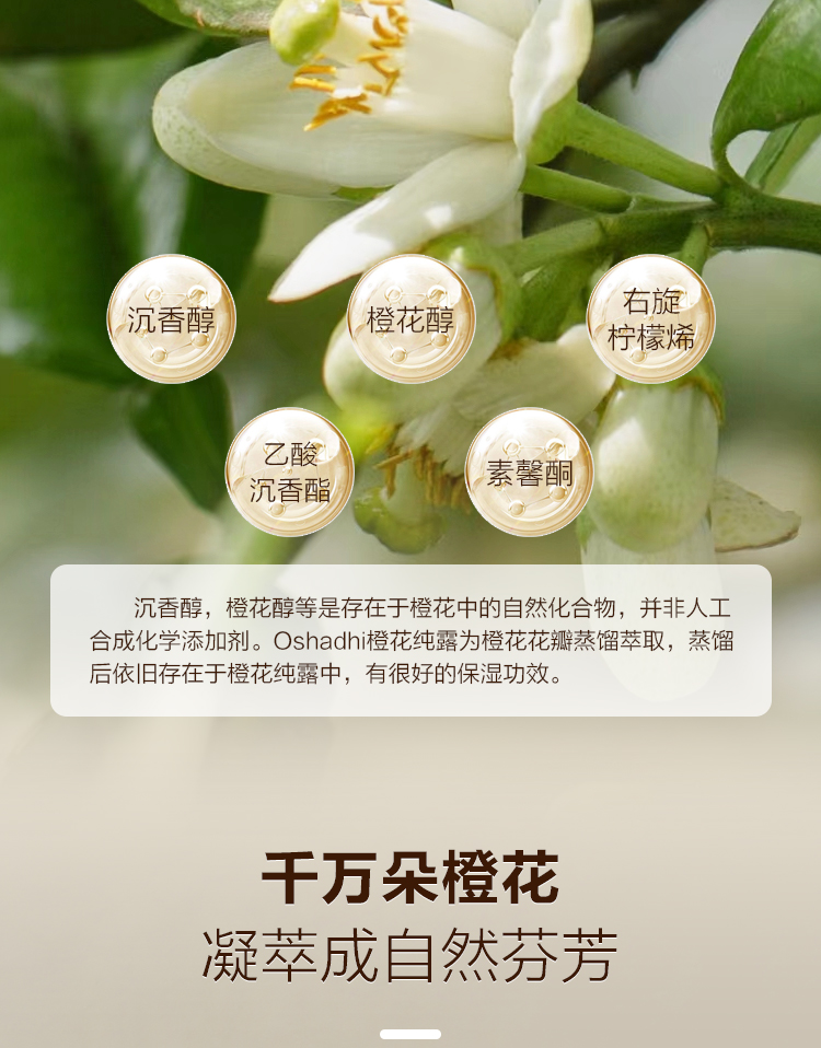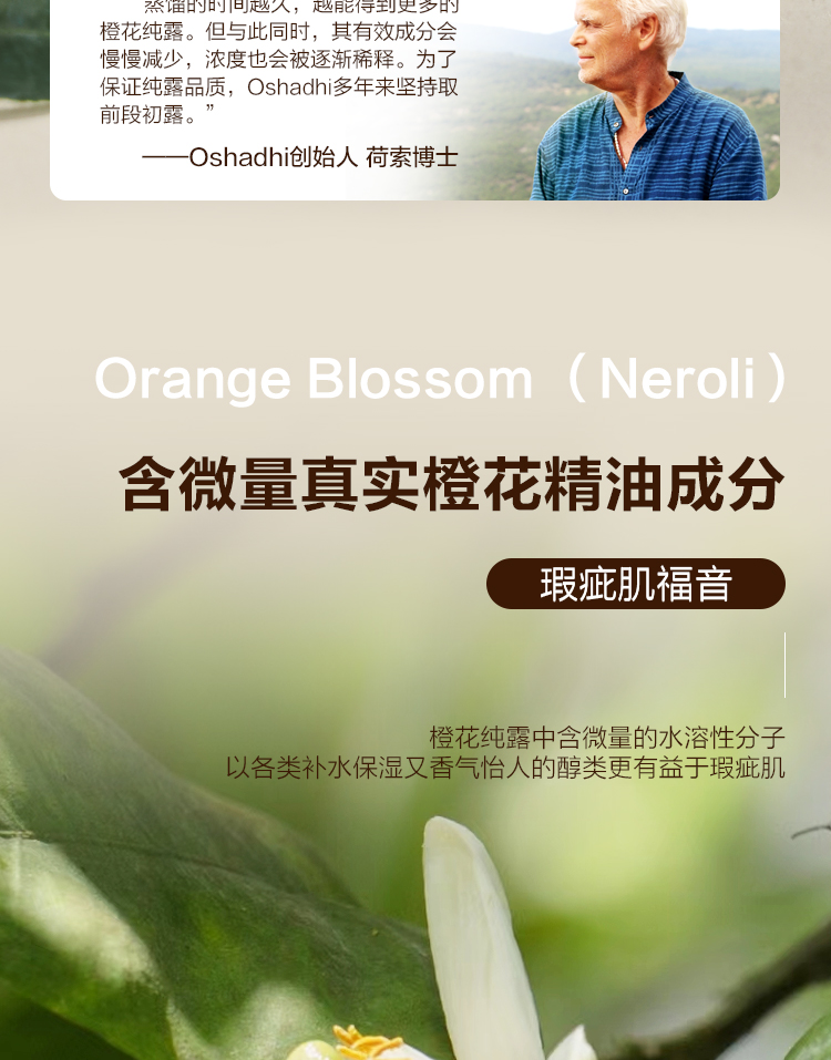 Oshadhi德国O家 橙花纯露 保湿 不明亮肌花水爽肤水化妆水