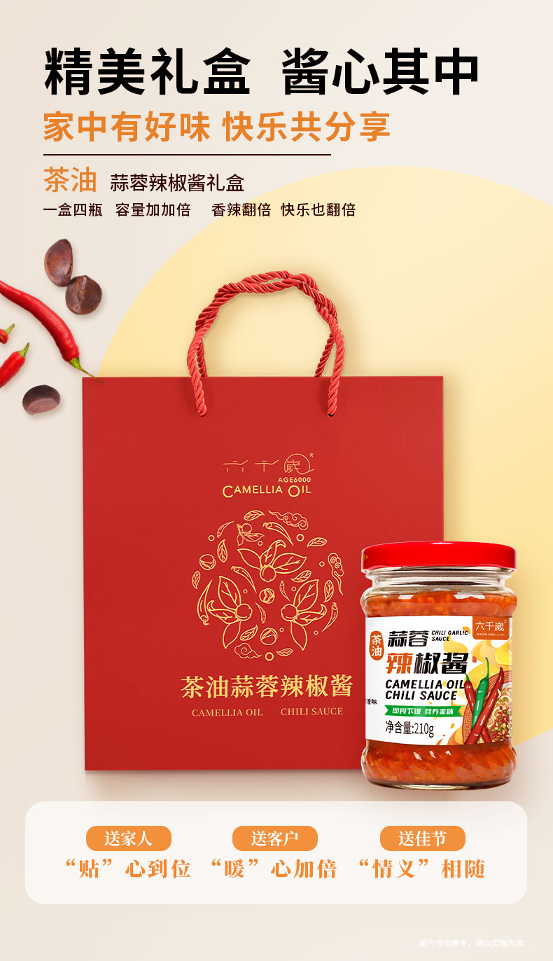 【破损包退】六千岁辣椒酱地道山茶油蒜蓉辣酱礼盒家用办公室下饭菜拌饭酱