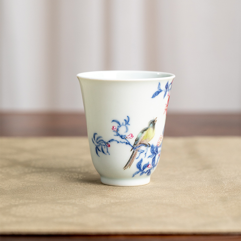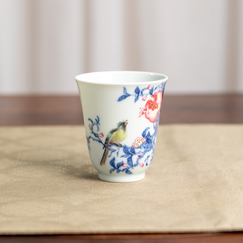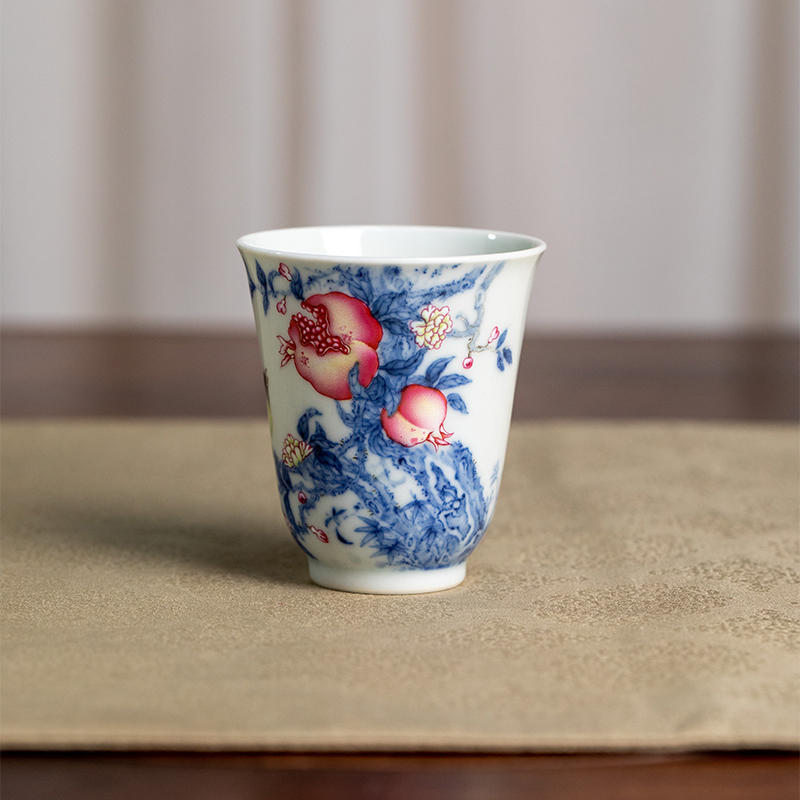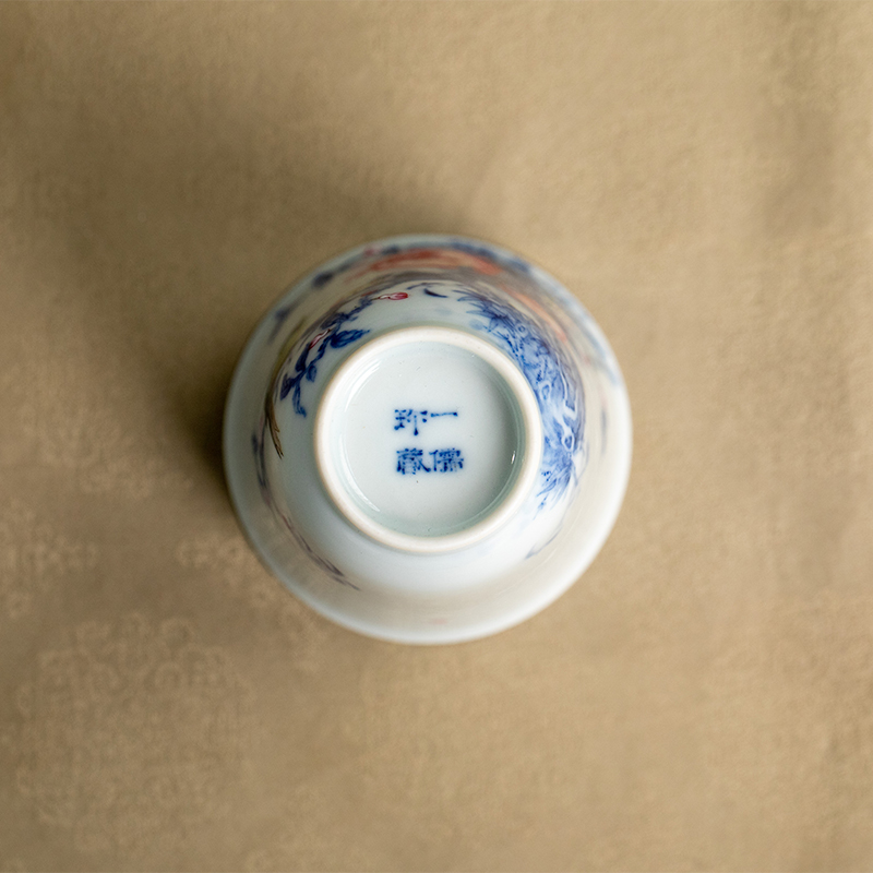 一儒堂青花加彩石榴喜鹊闻香杯
