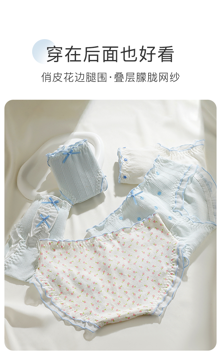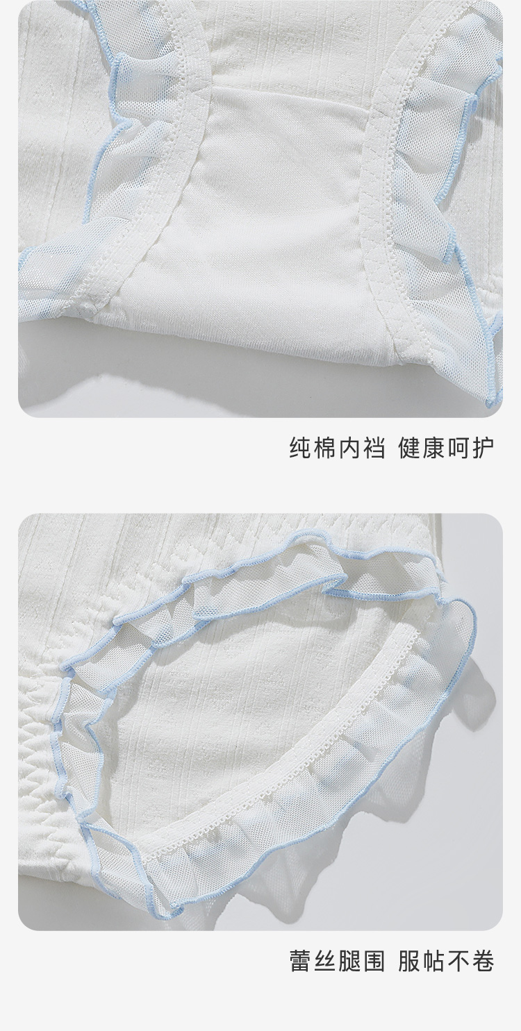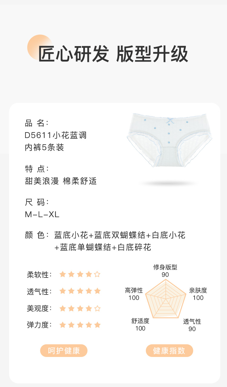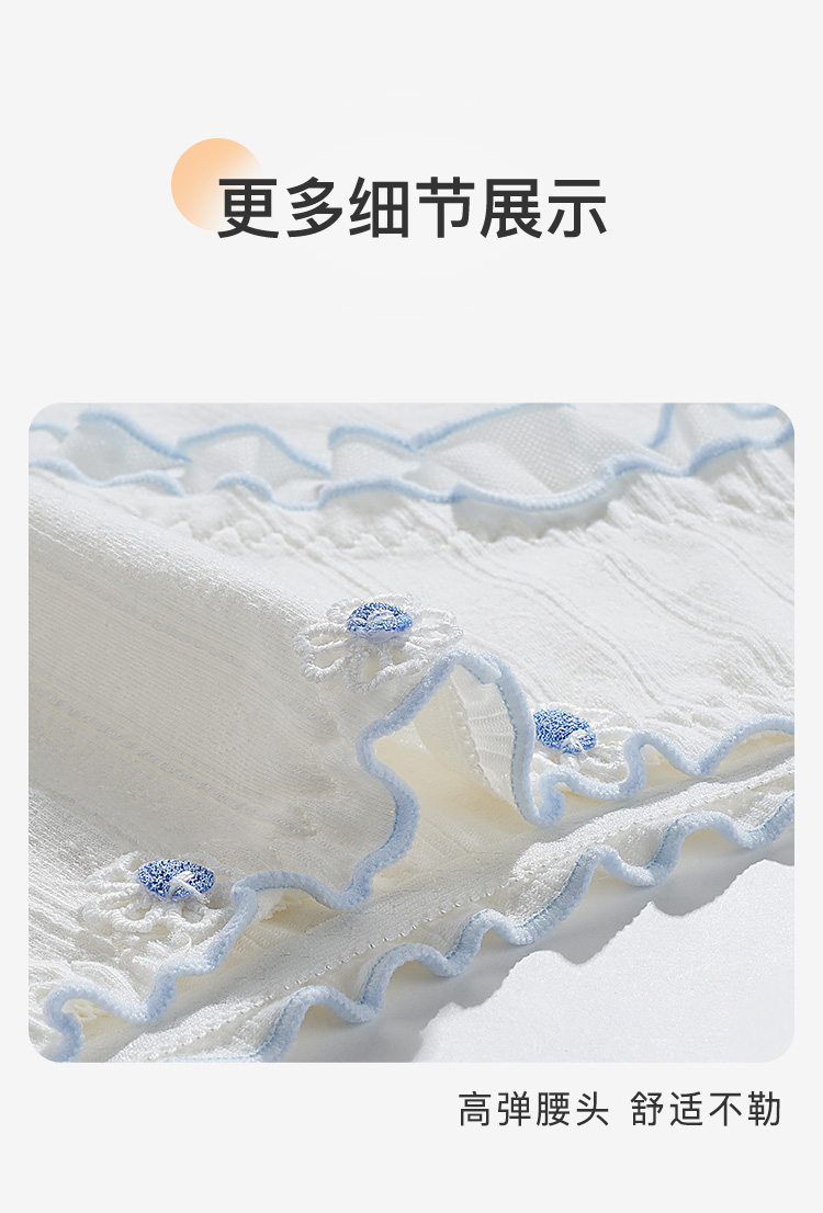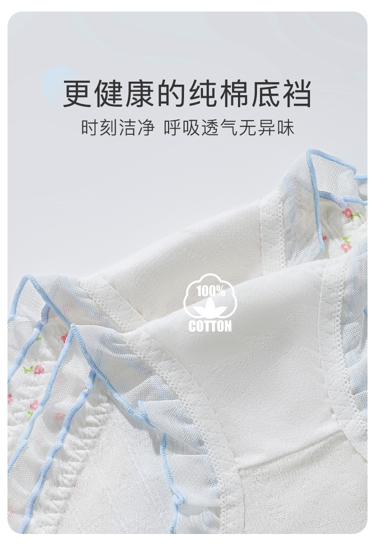 【10A级抑菌】5条装女士内裤舒适透气甜美蕾丝三角裤全棉裆D5611小花蓝调内裤