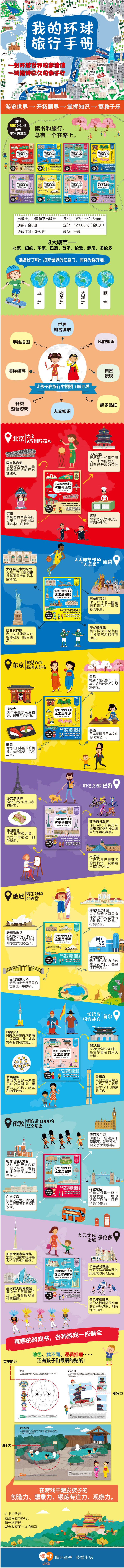 我的环球旅行手册(全8册)赠 500张贴纸 3岁+ 8大城市 激发孩子创造力 想象力 专注力 观察力