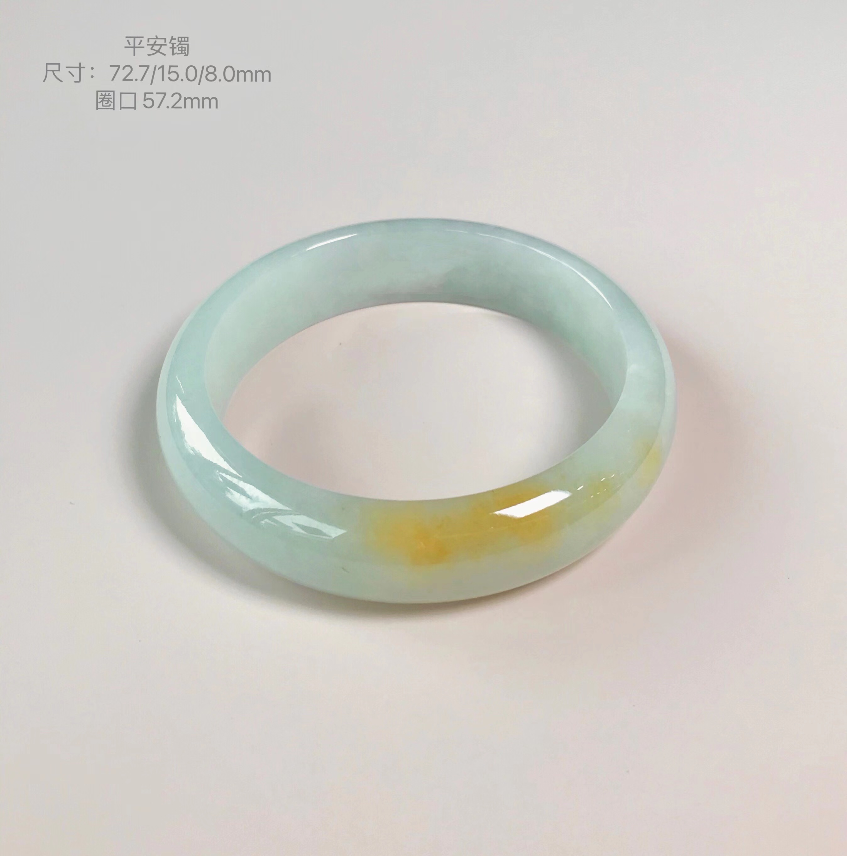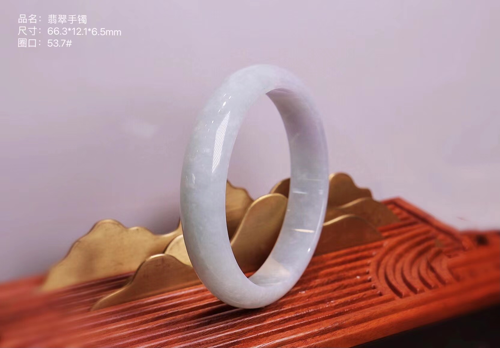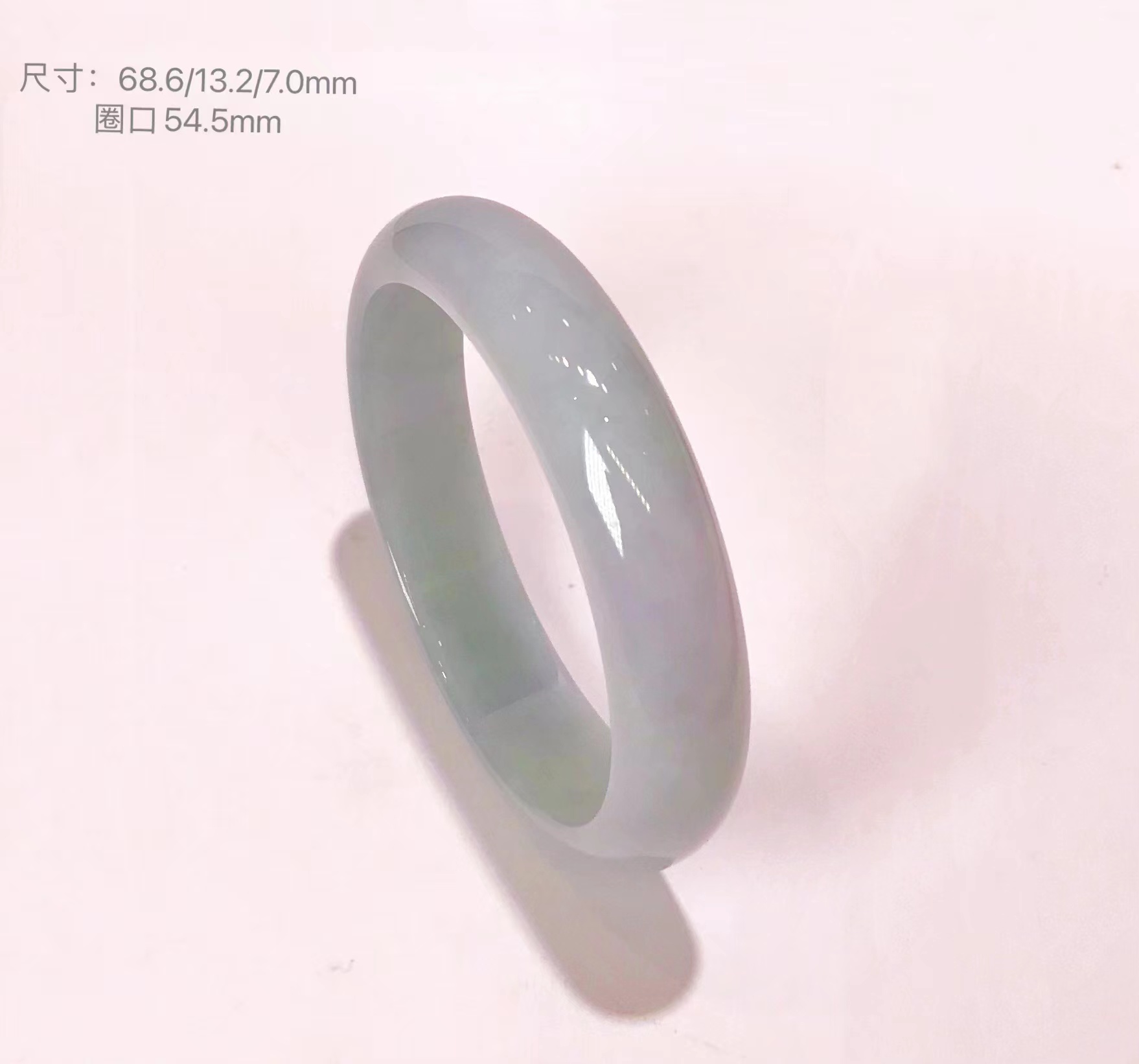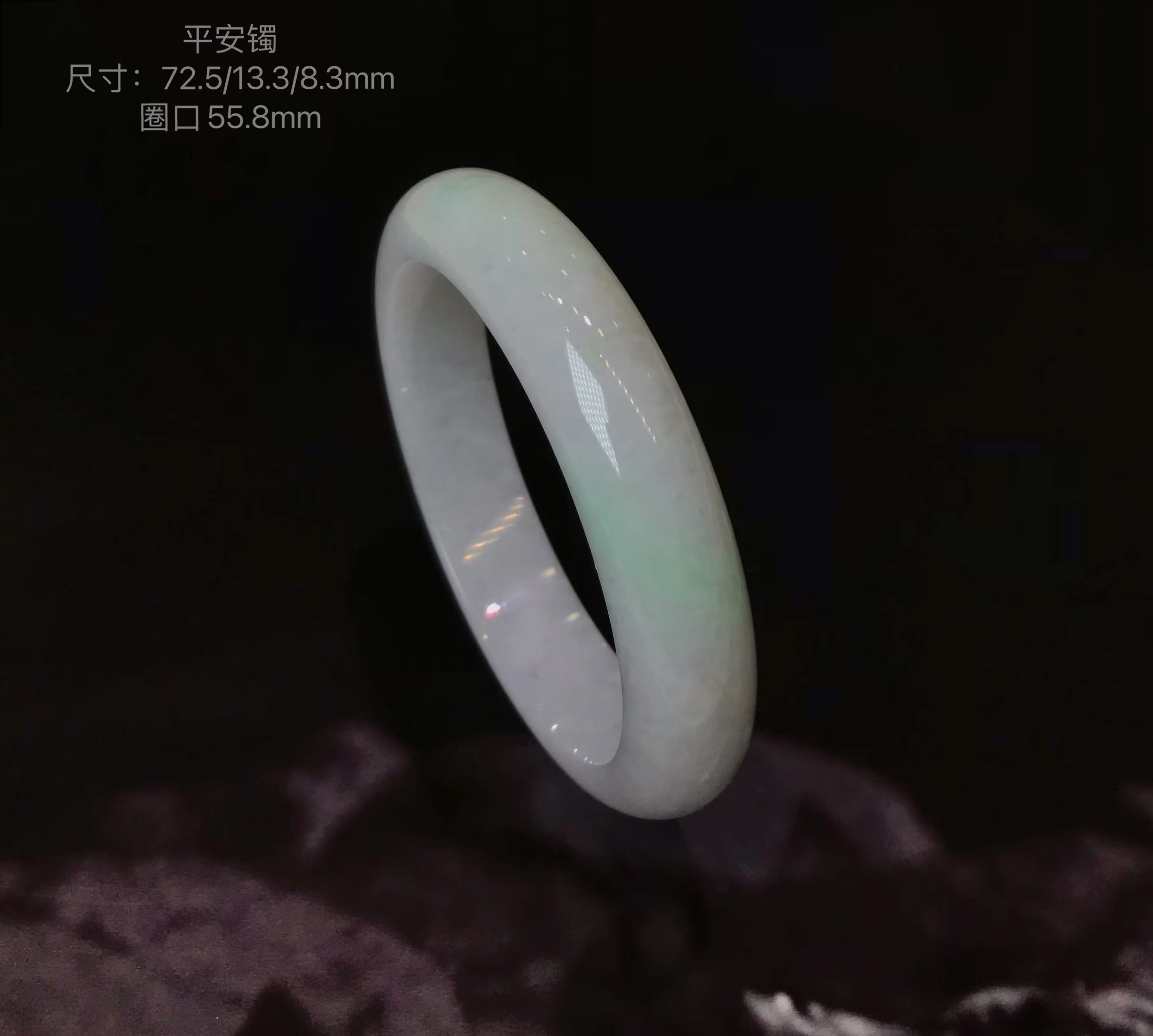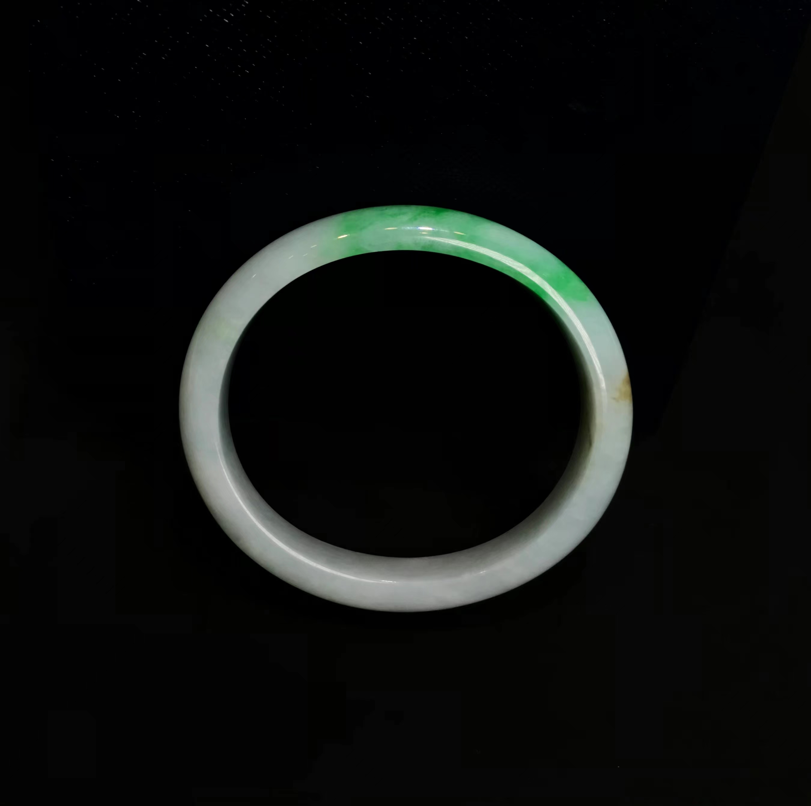 这件手镯不仅玉质通透水润有光泽,而且形状圆润,厚实,条幅较宽。是大圈口客户的福利。