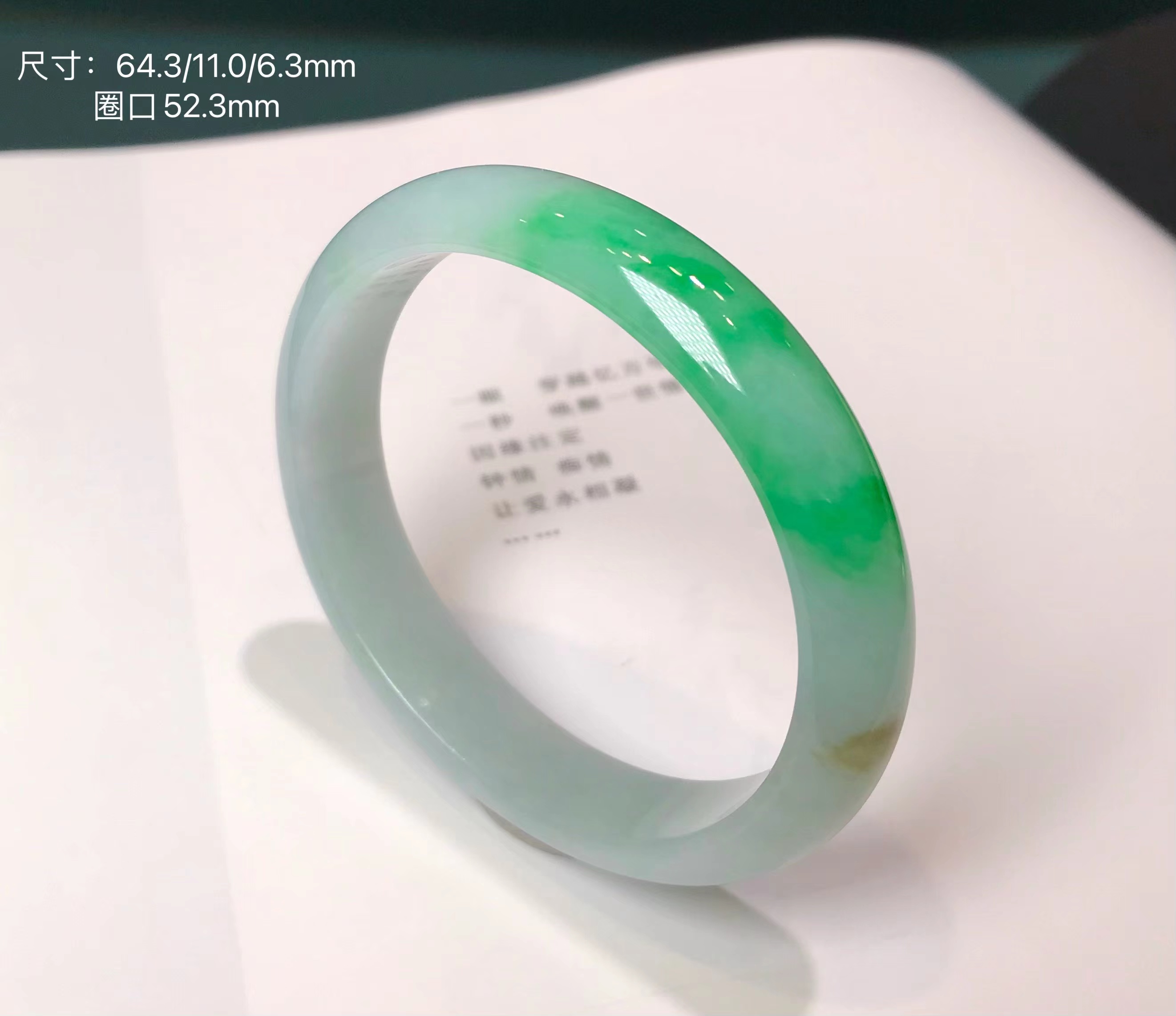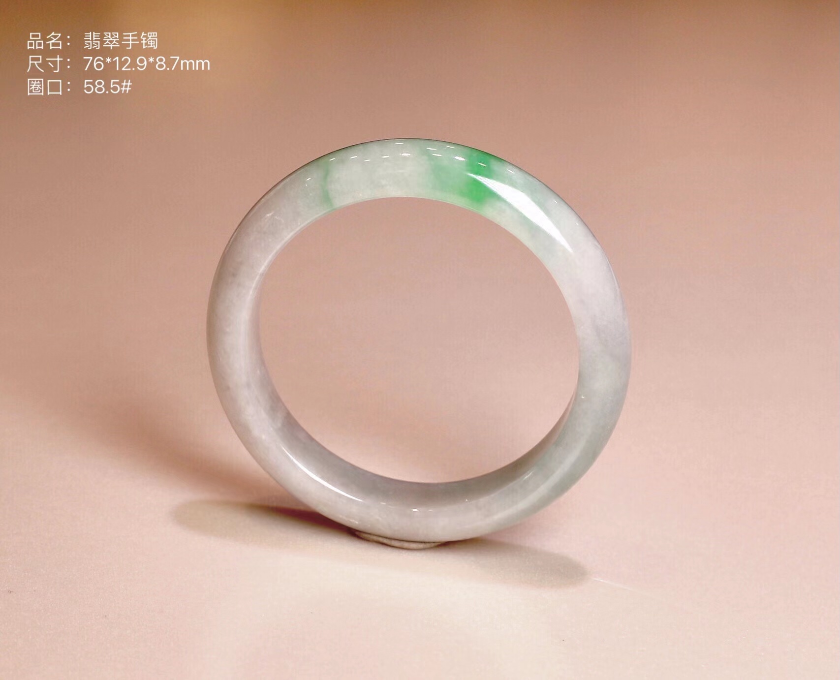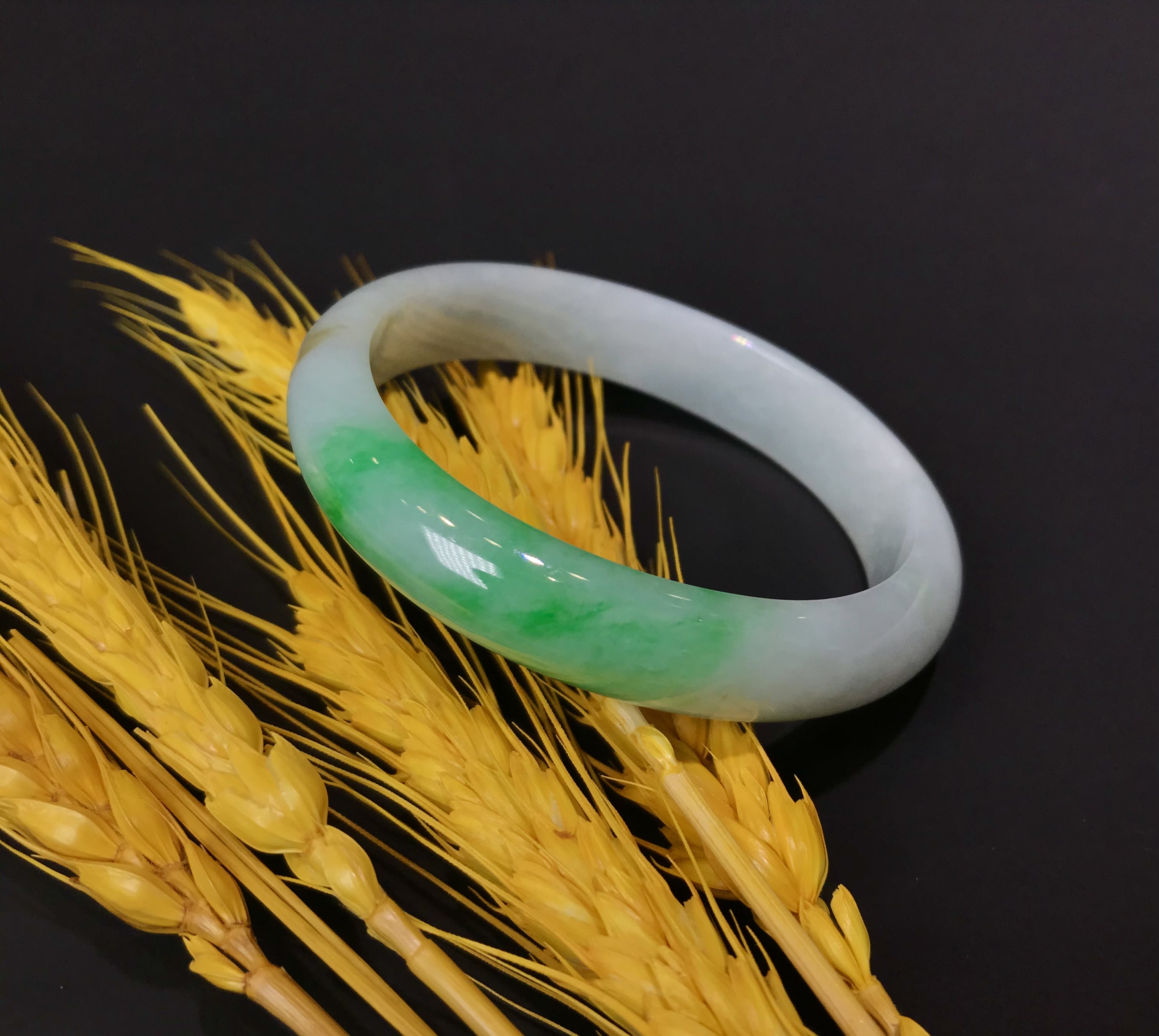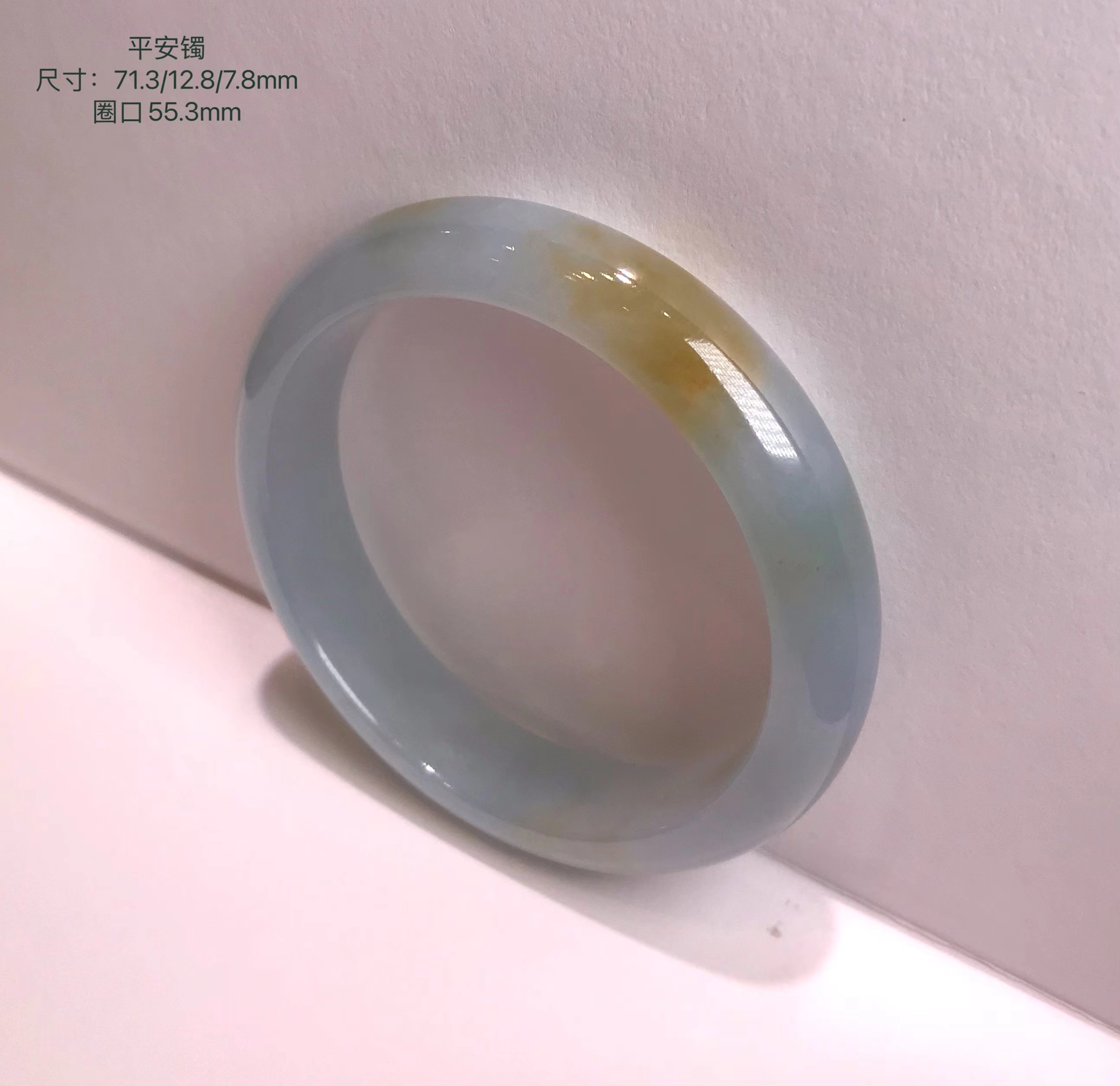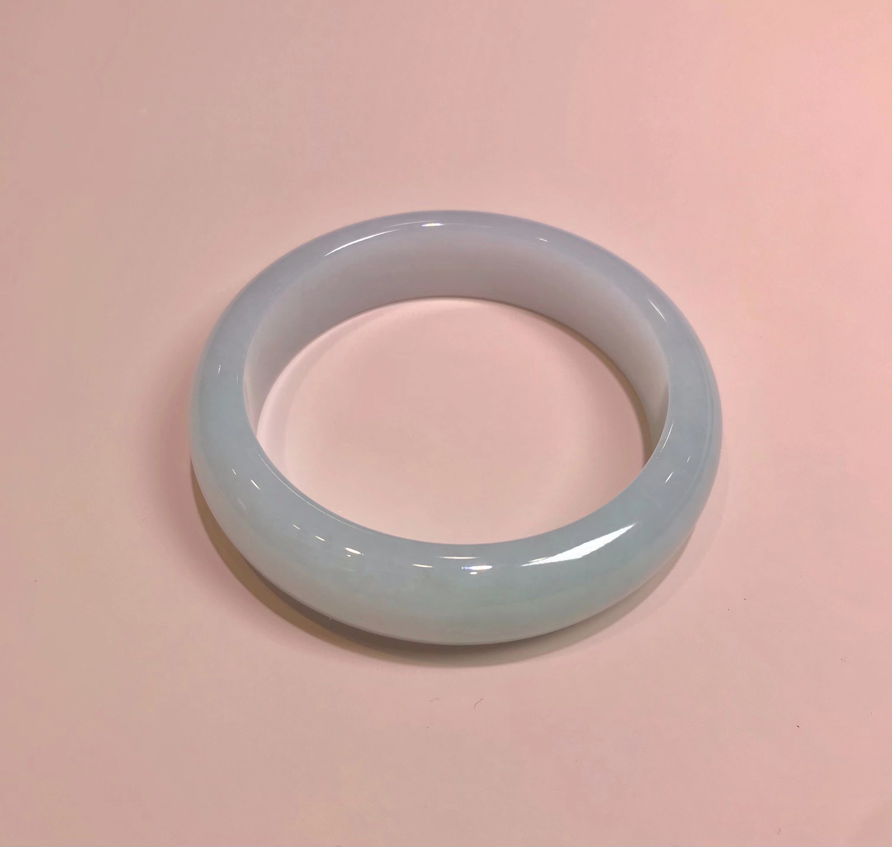 这件手镯不仅玉质通透水润有光泽,而且形状圆润,厚实,条幅较宽。是大圈口客户的福利。