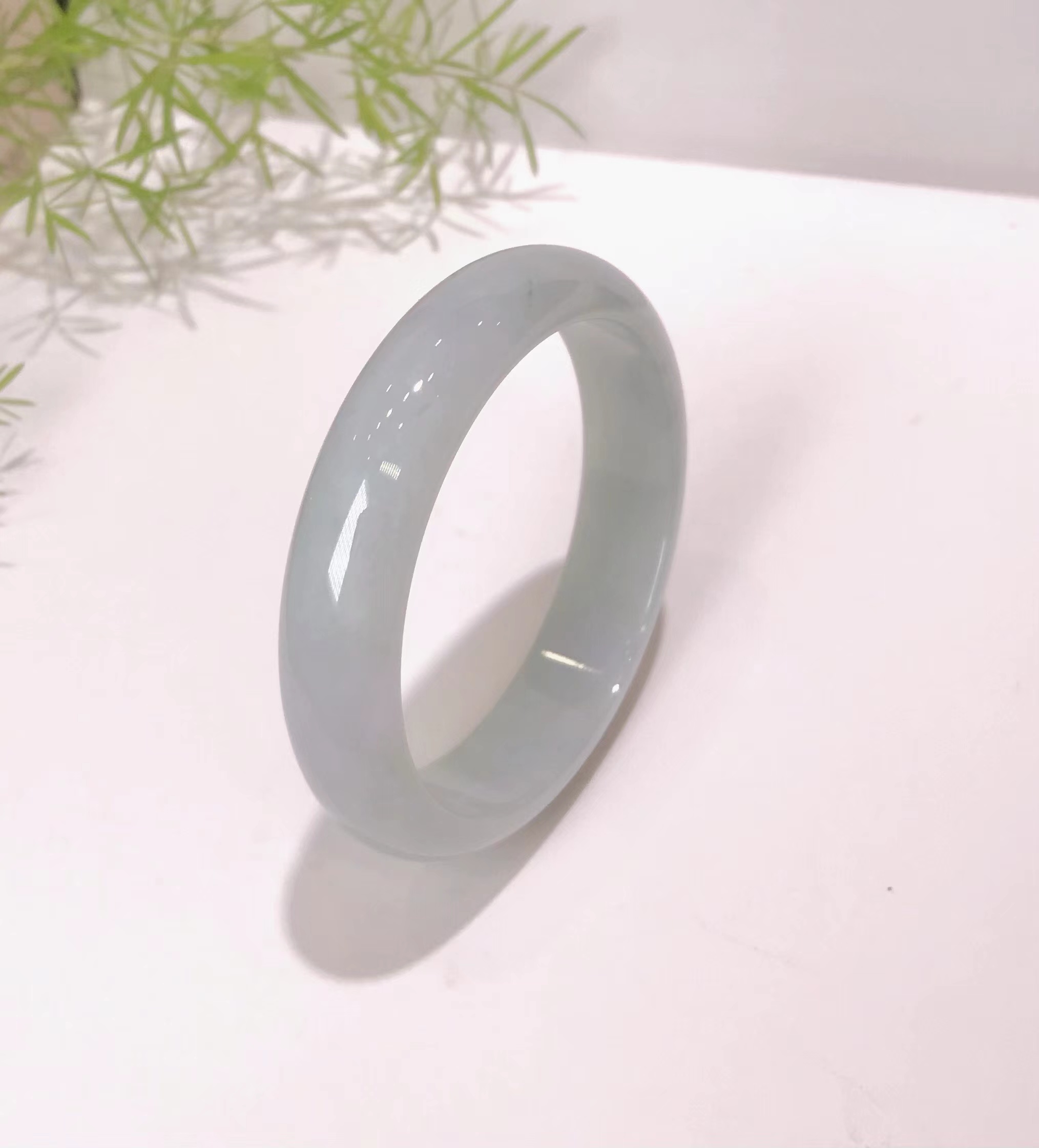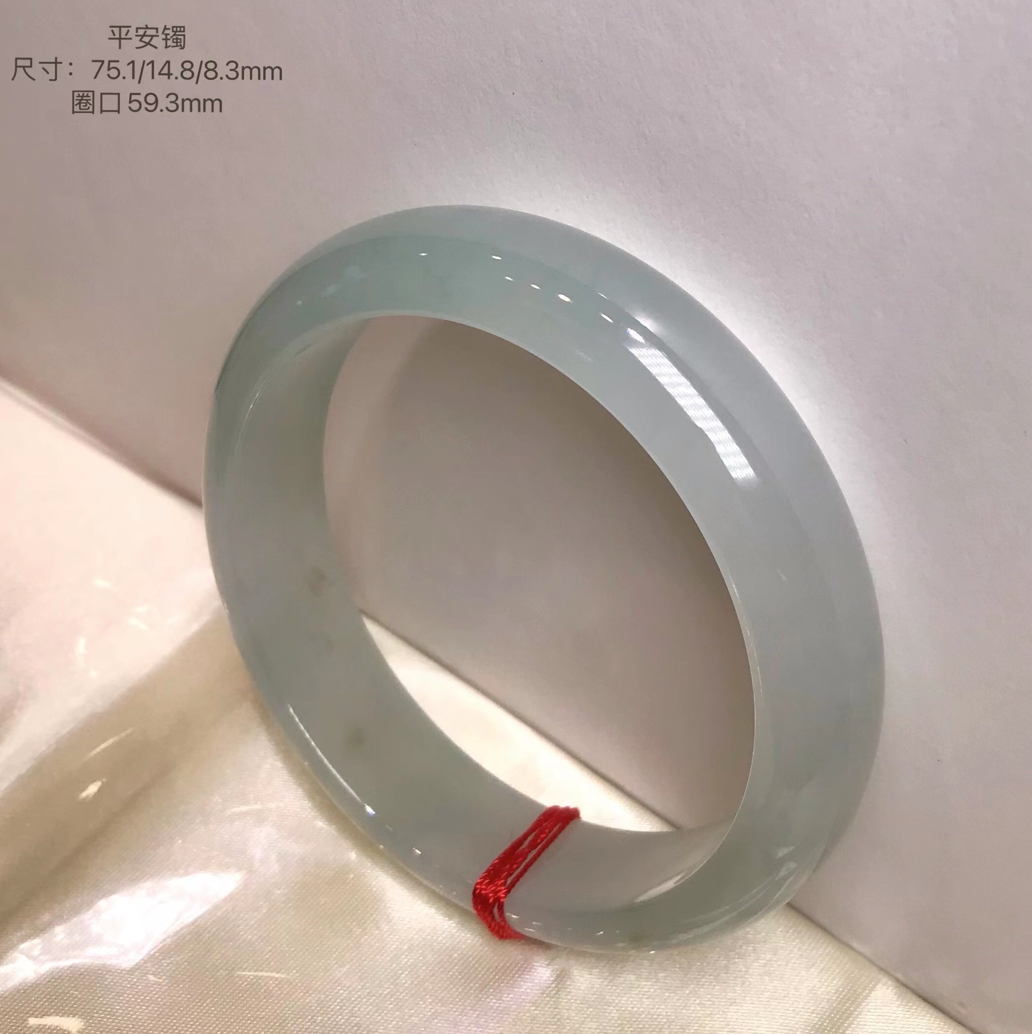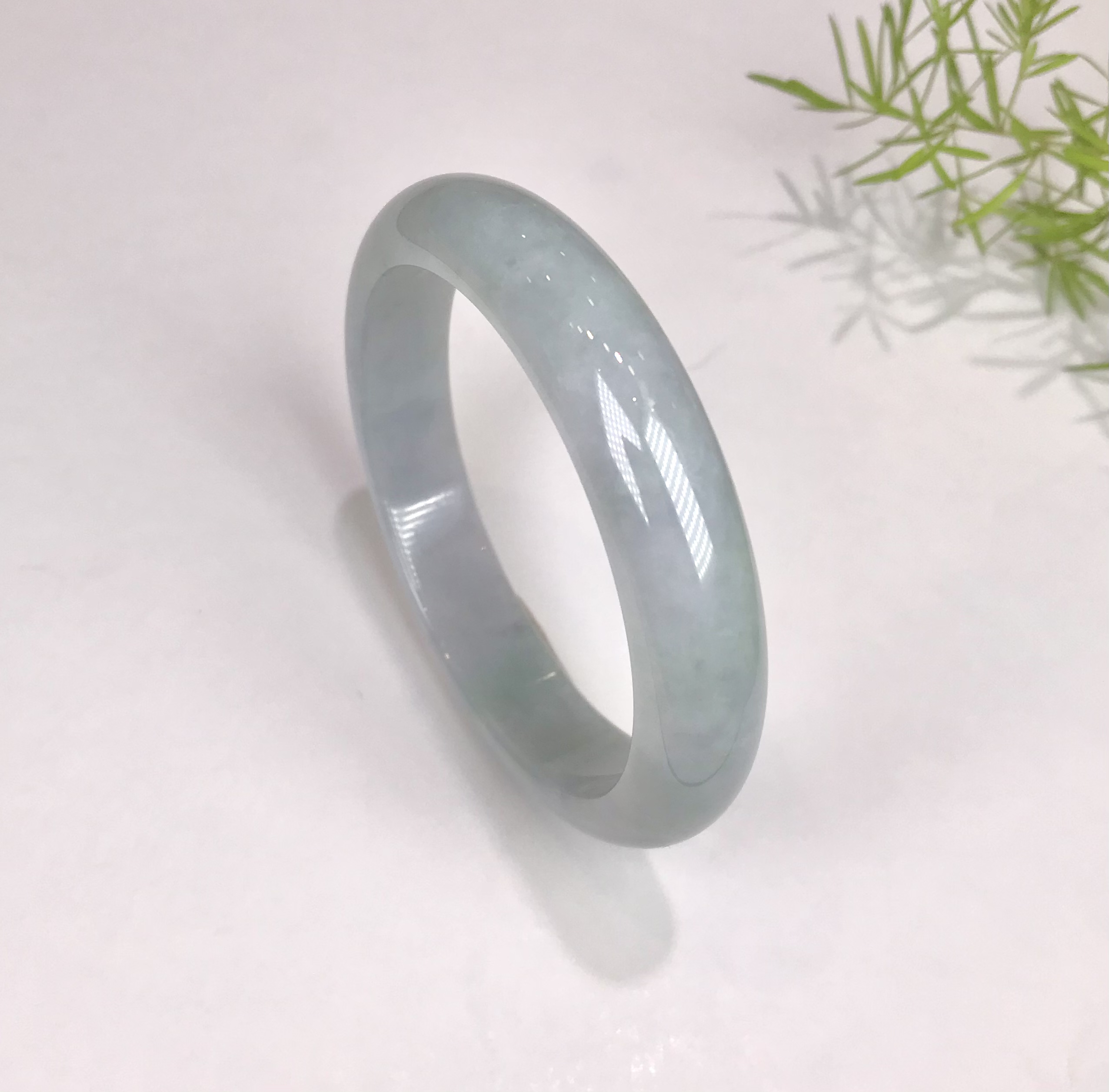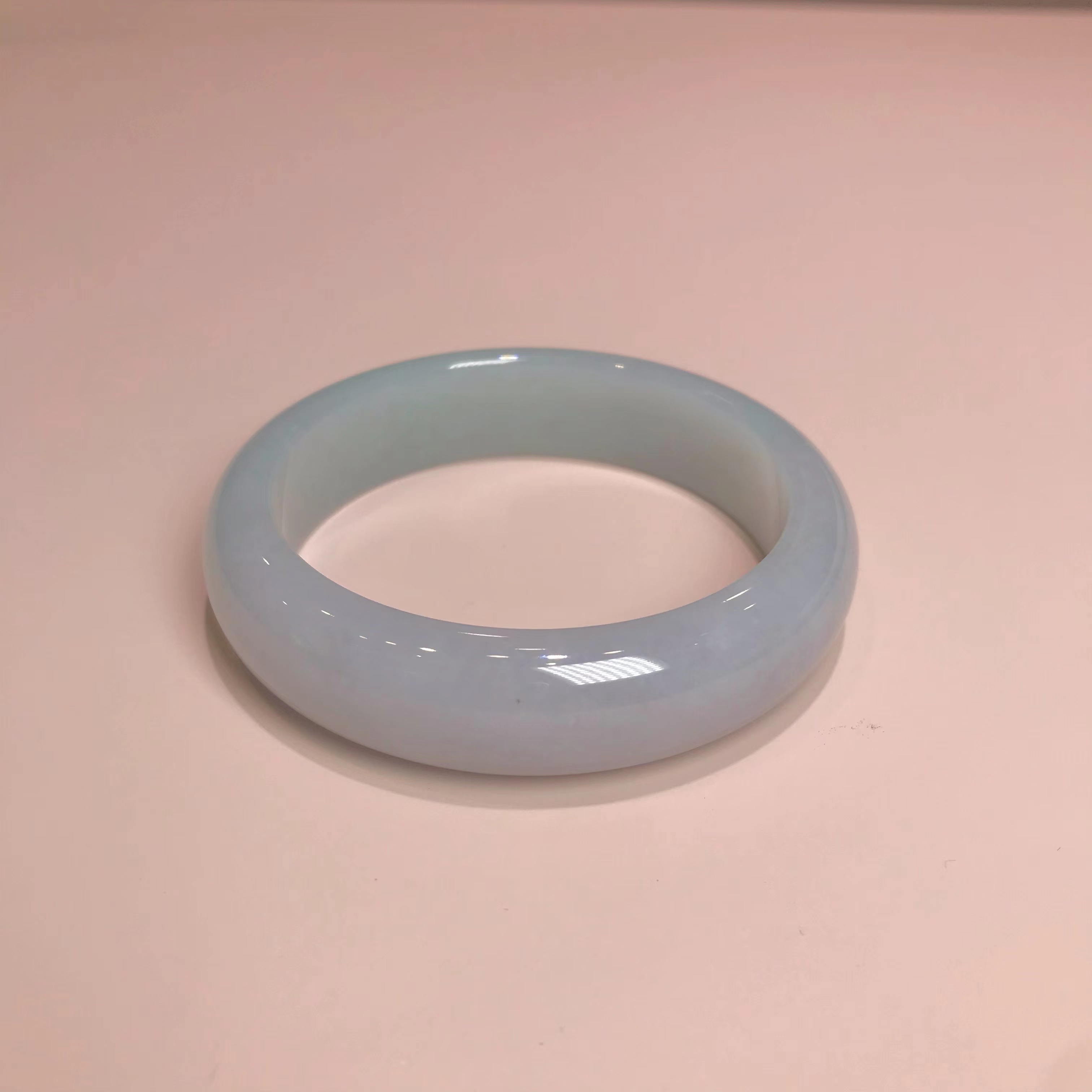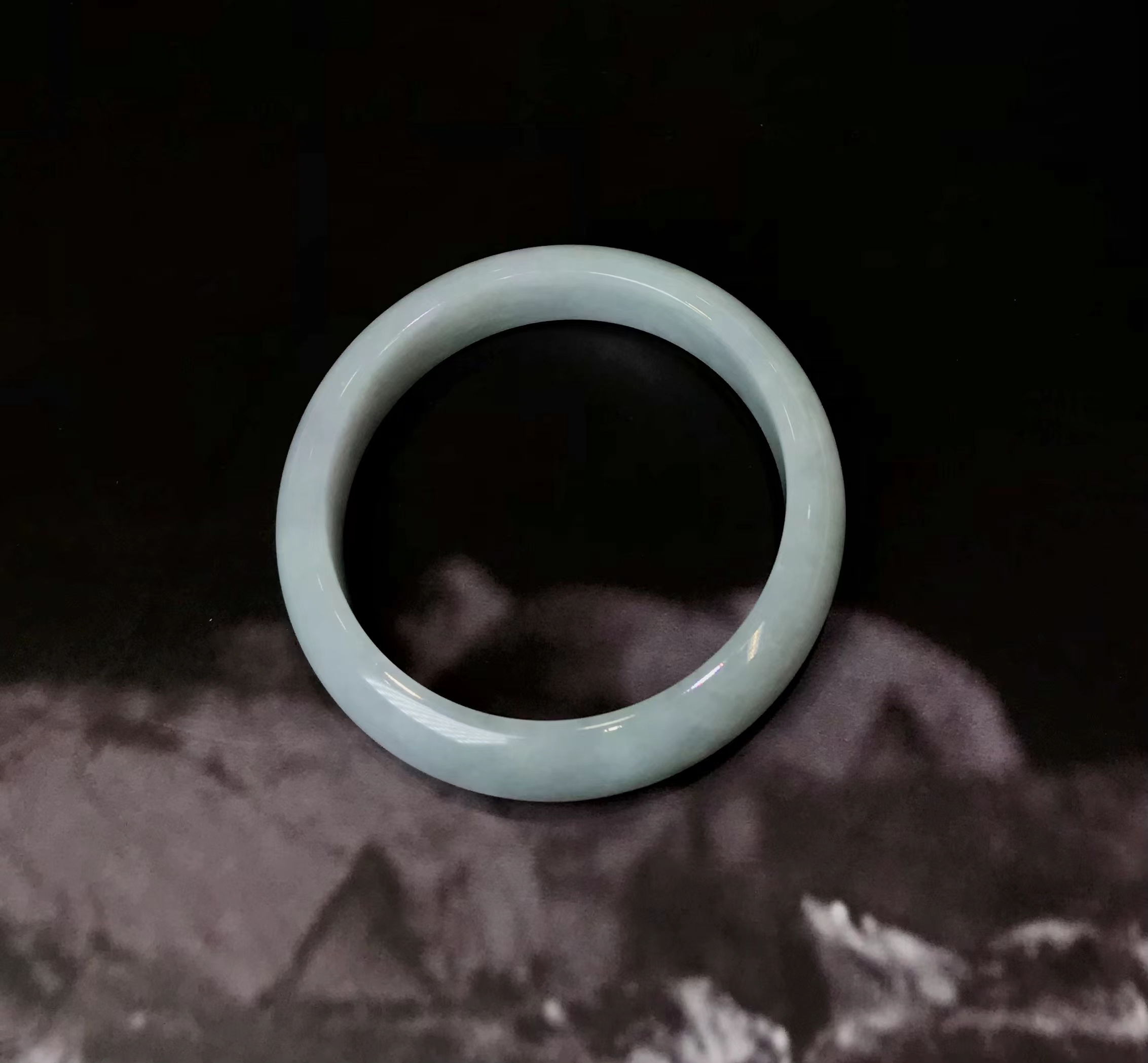这件手镯不仅玉质通透水润有光泽,而且形状圆润,厚实,条幅较宽。是大圈口客户的福利。