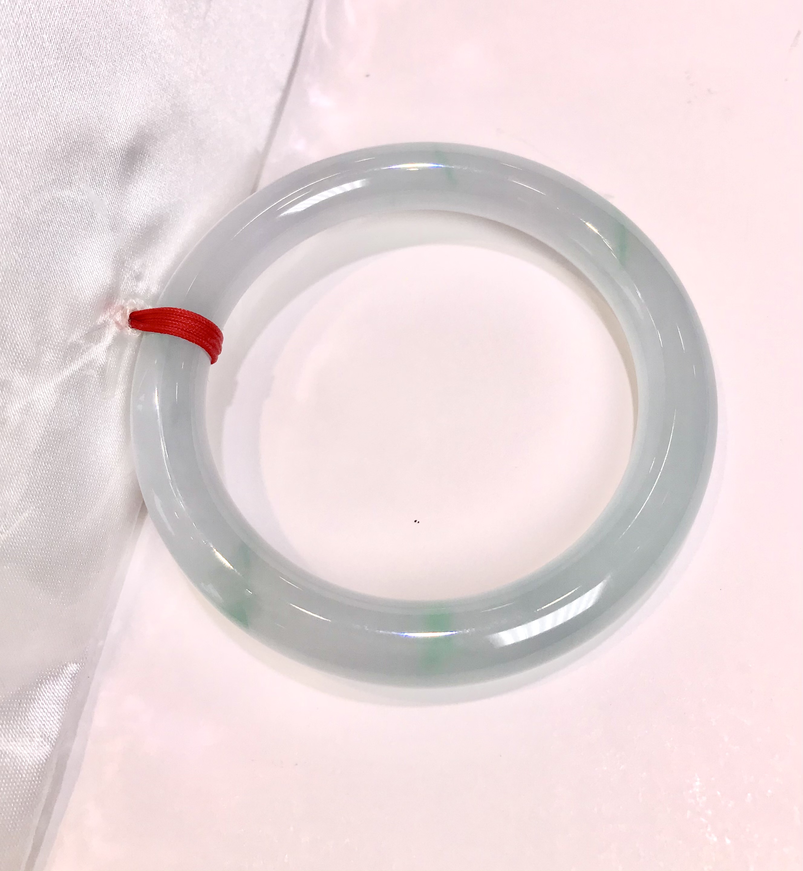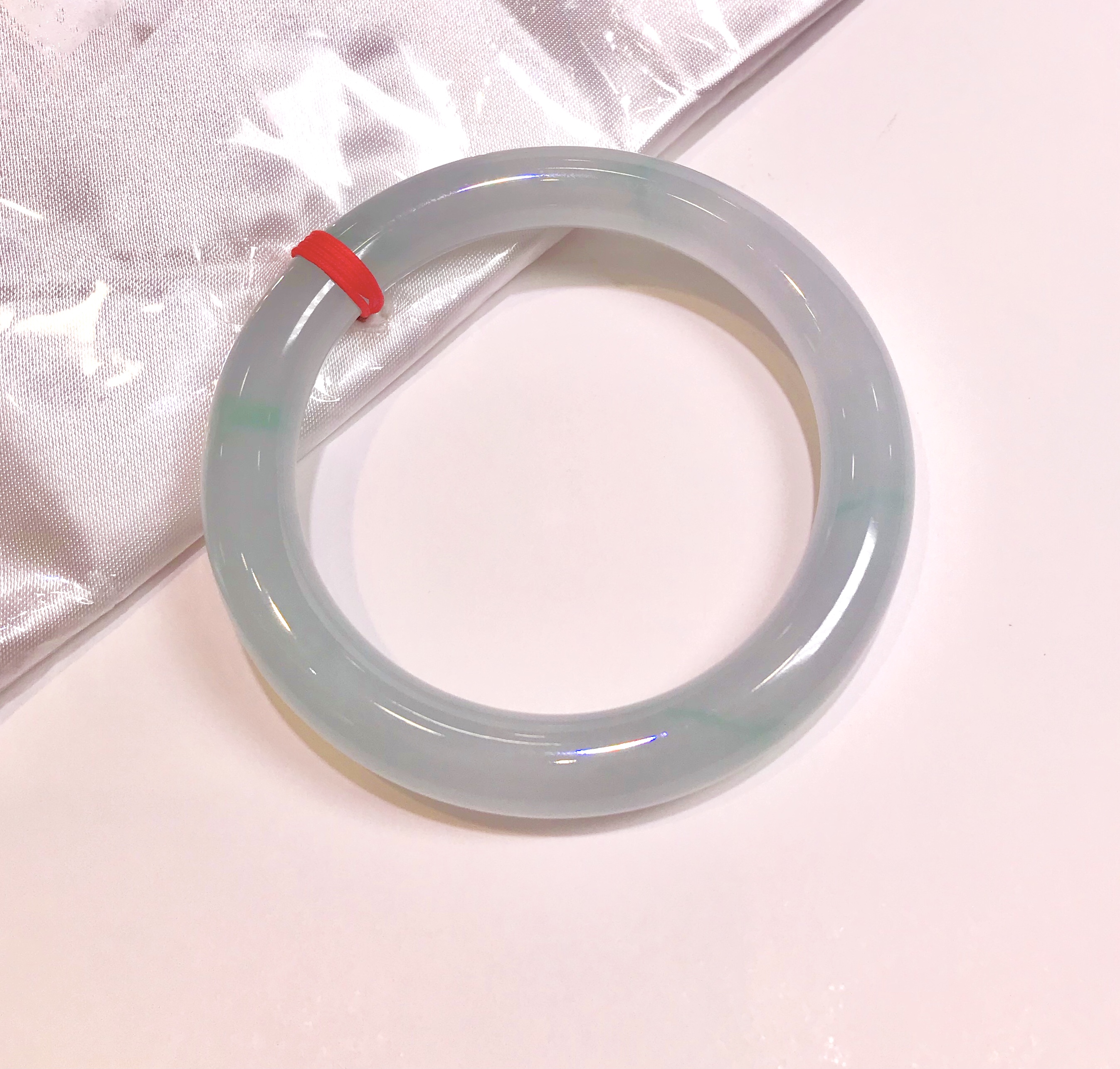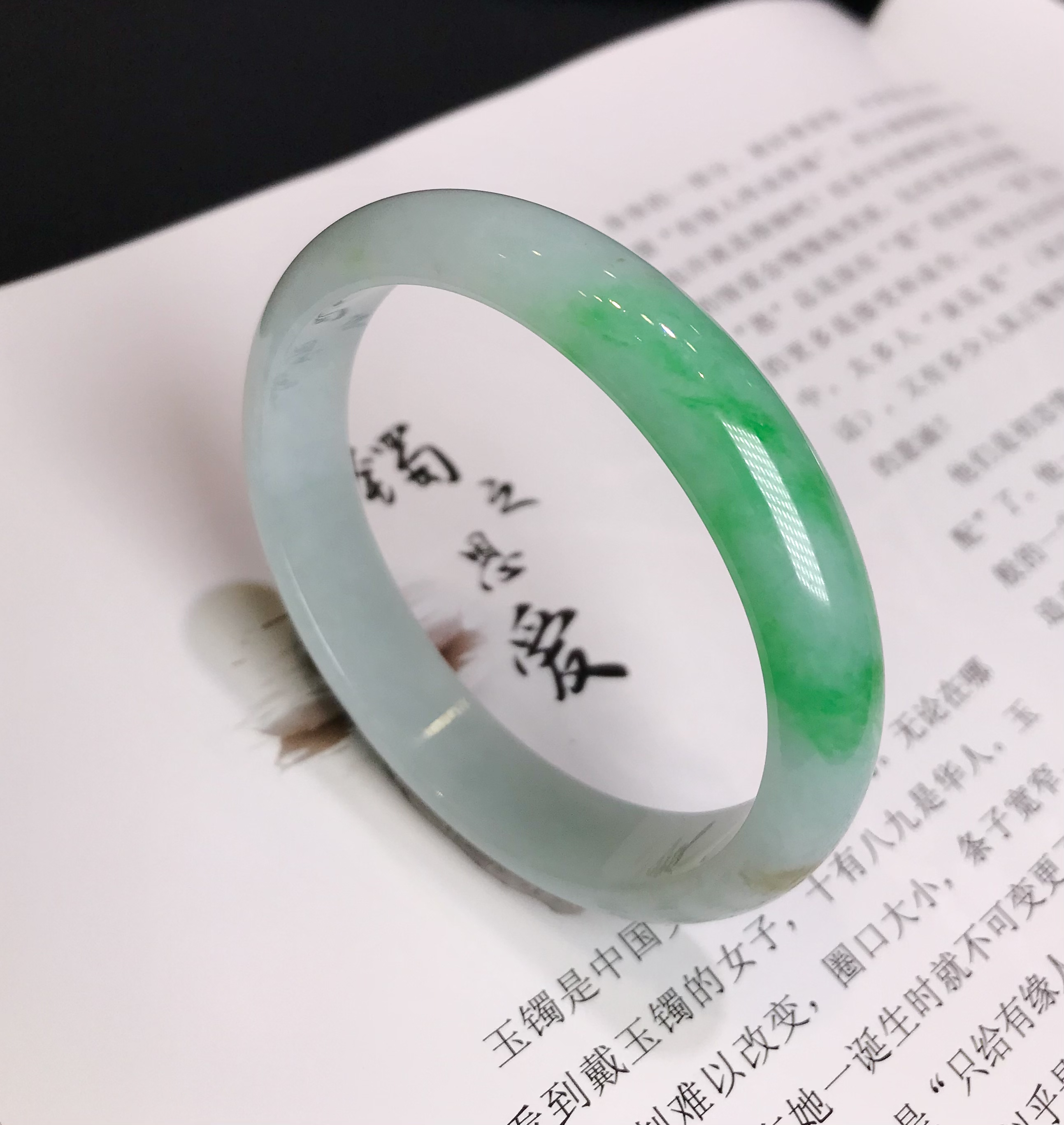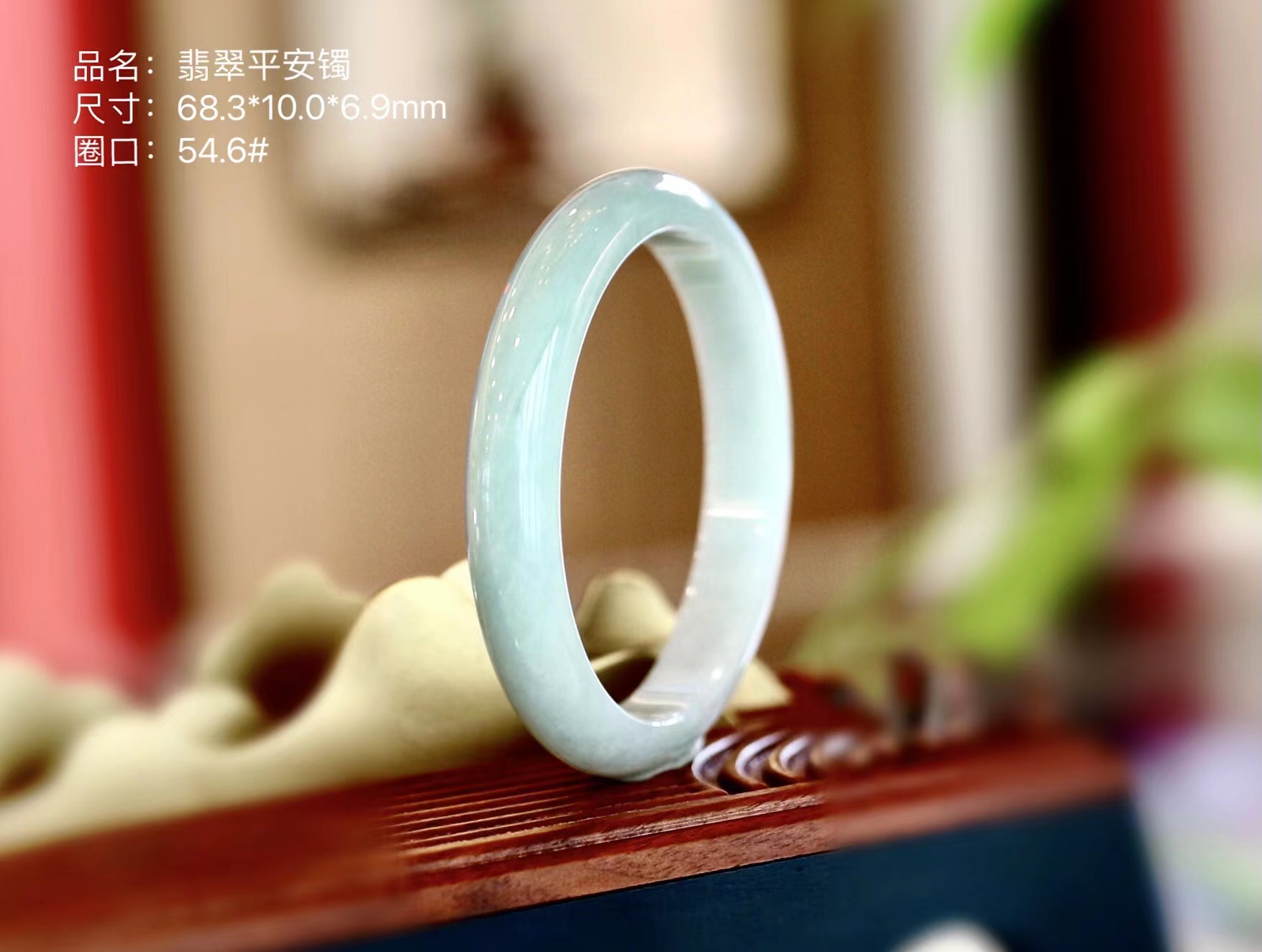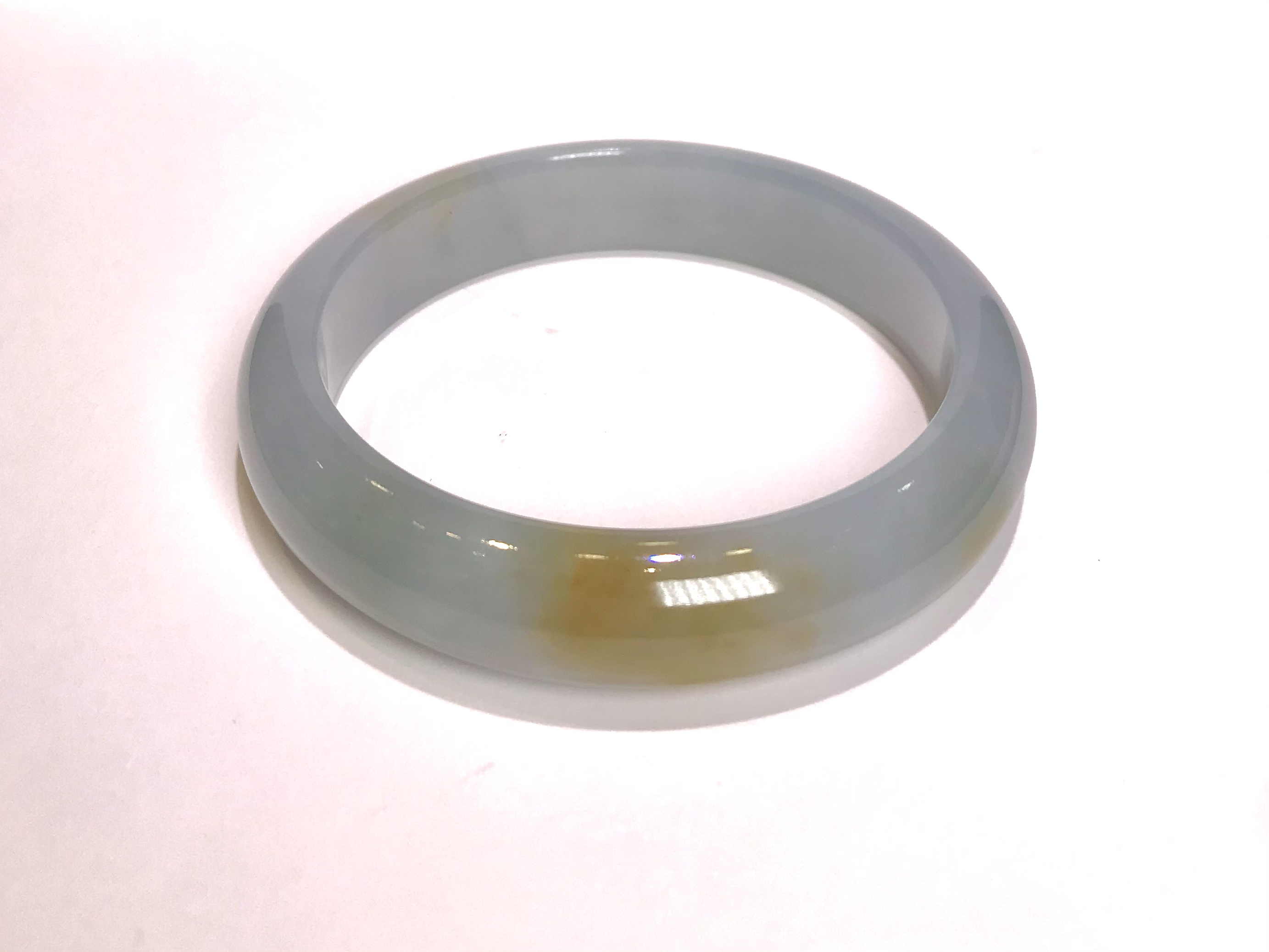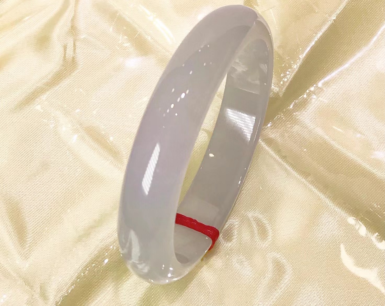 这件手镯不仅玉质通透水润有光泽,而且形状圆润,厚实,条幅较宽。是大圈口客户的福利。