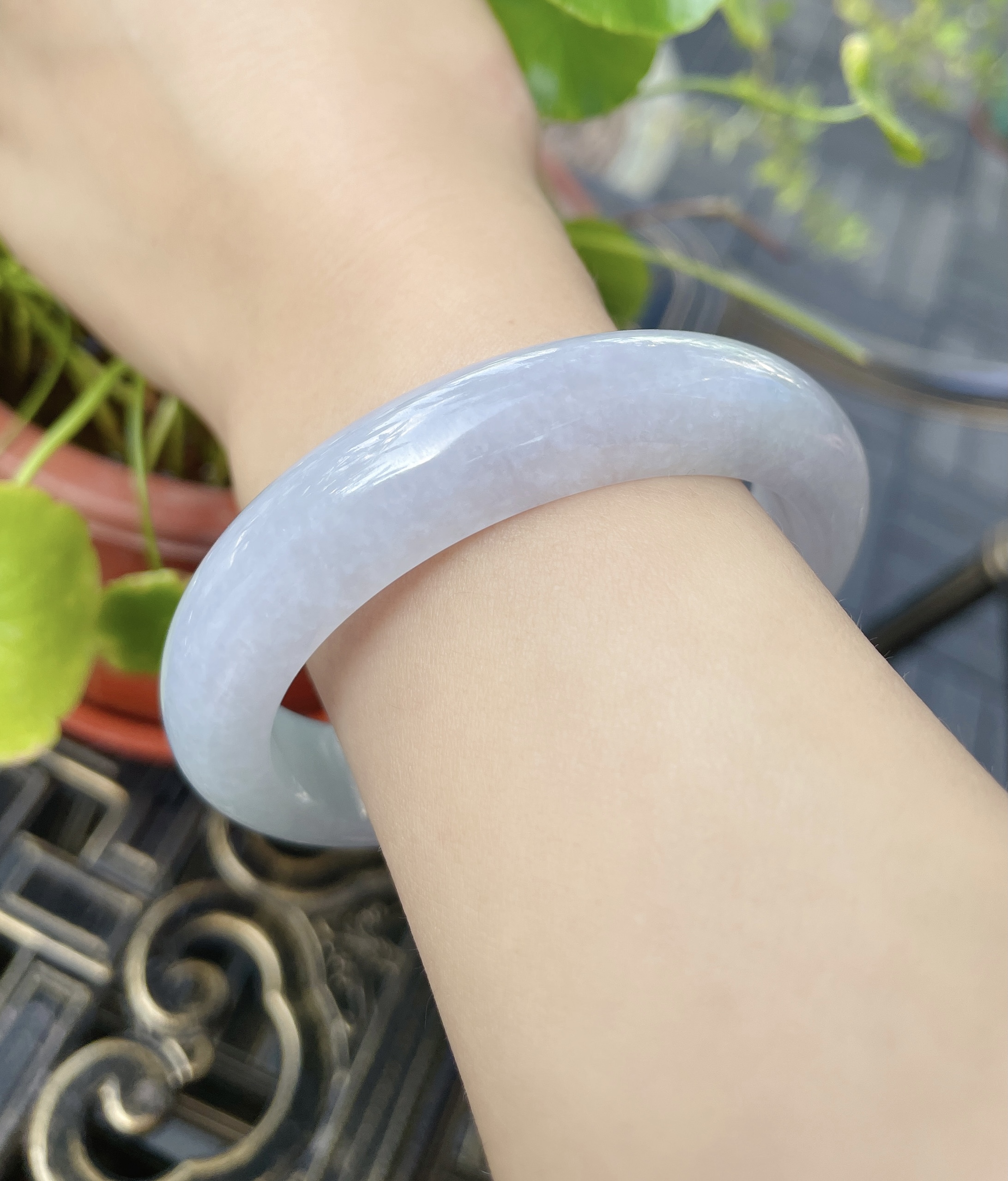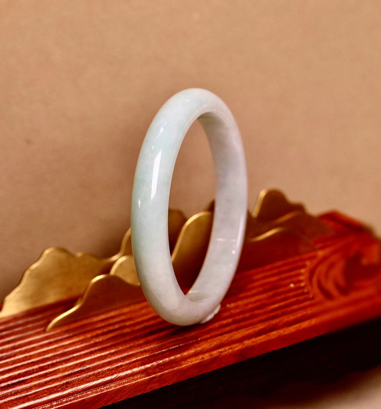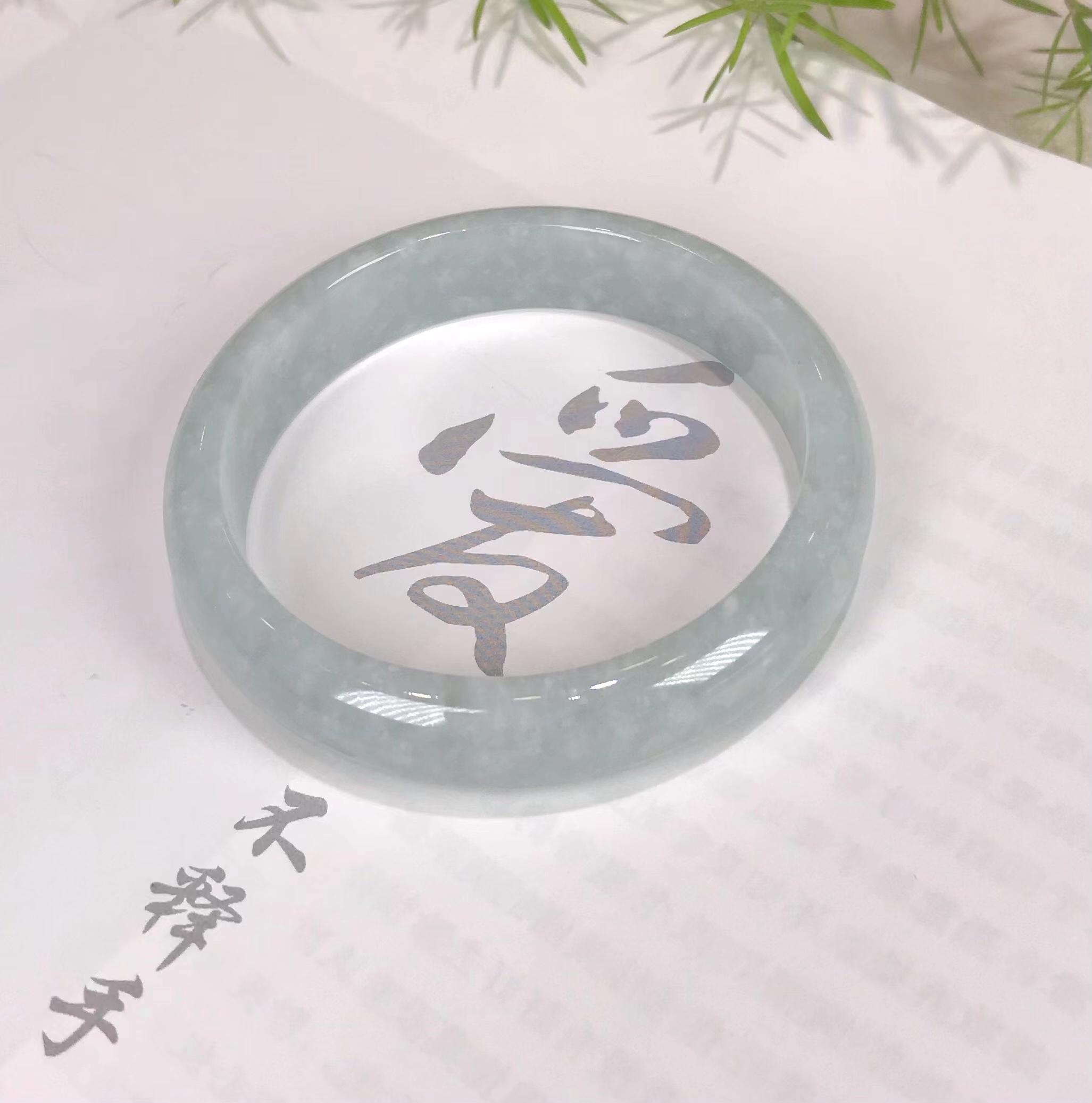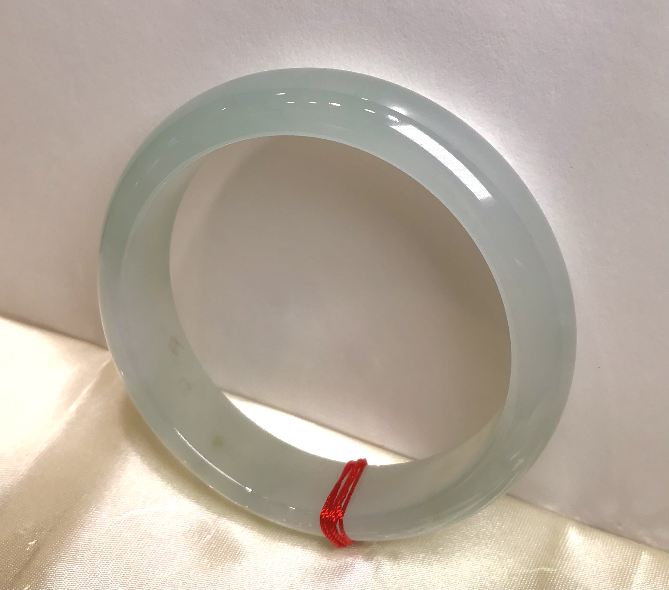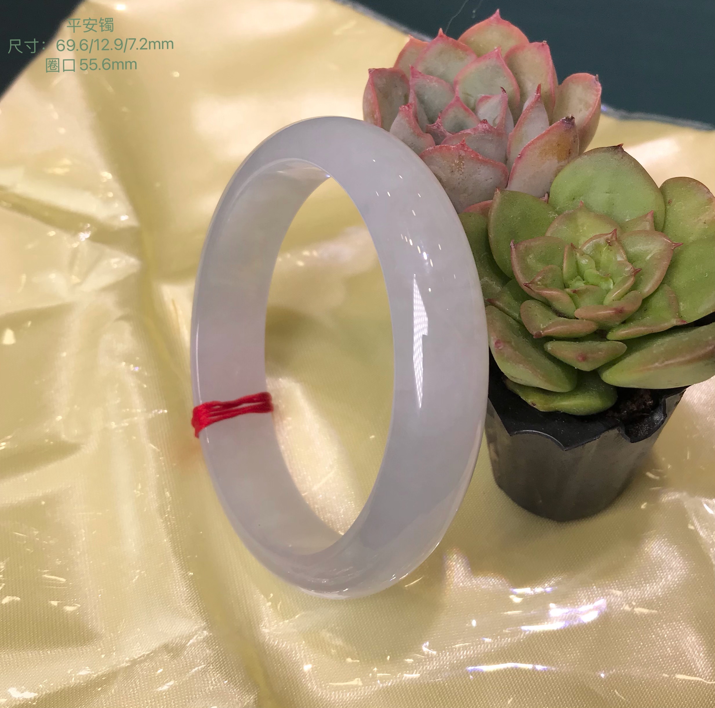 这件手镯不仅玉质通透水润有光泽,而且形状圆润,厚实,条幅较宽。是大圈口客户的福利。