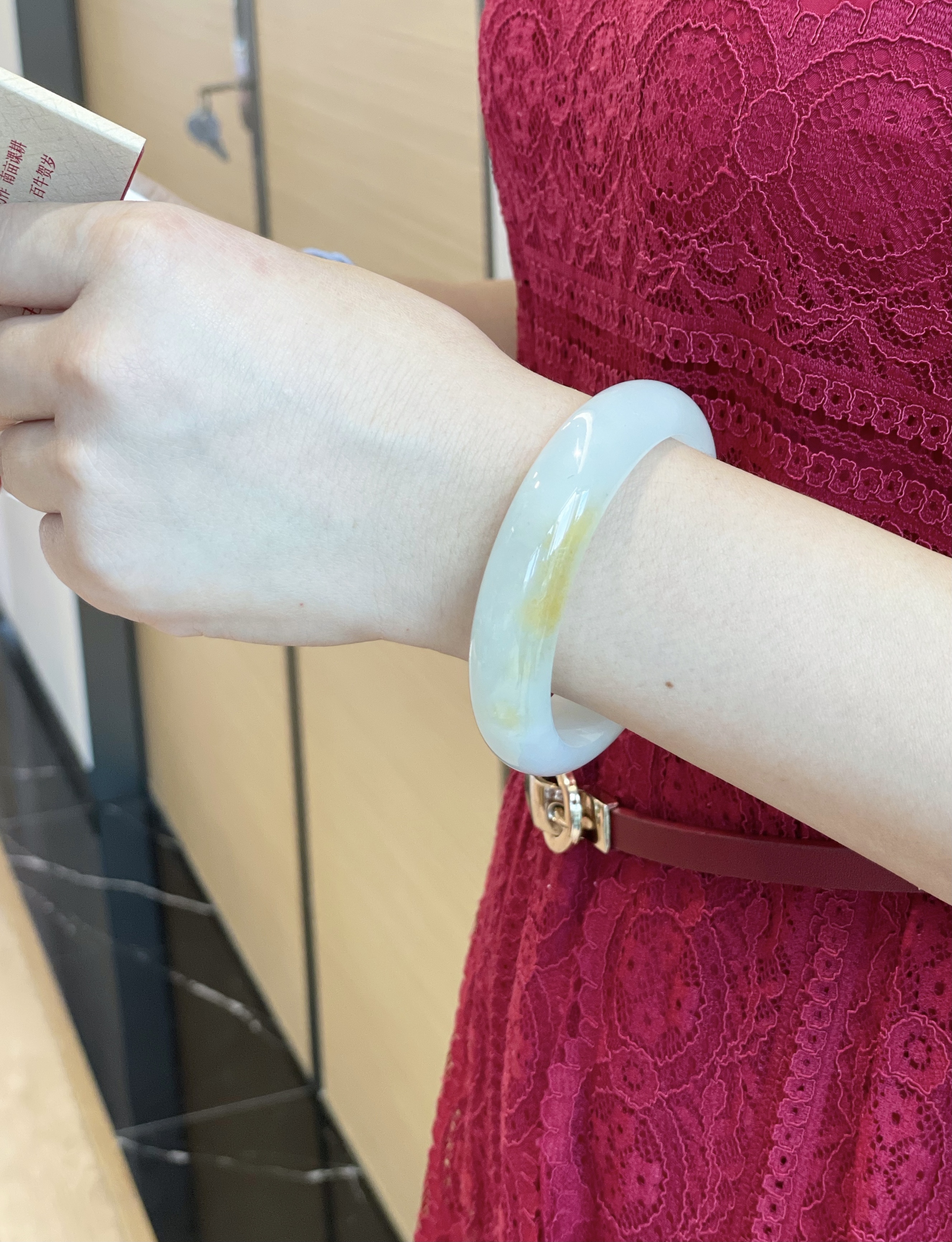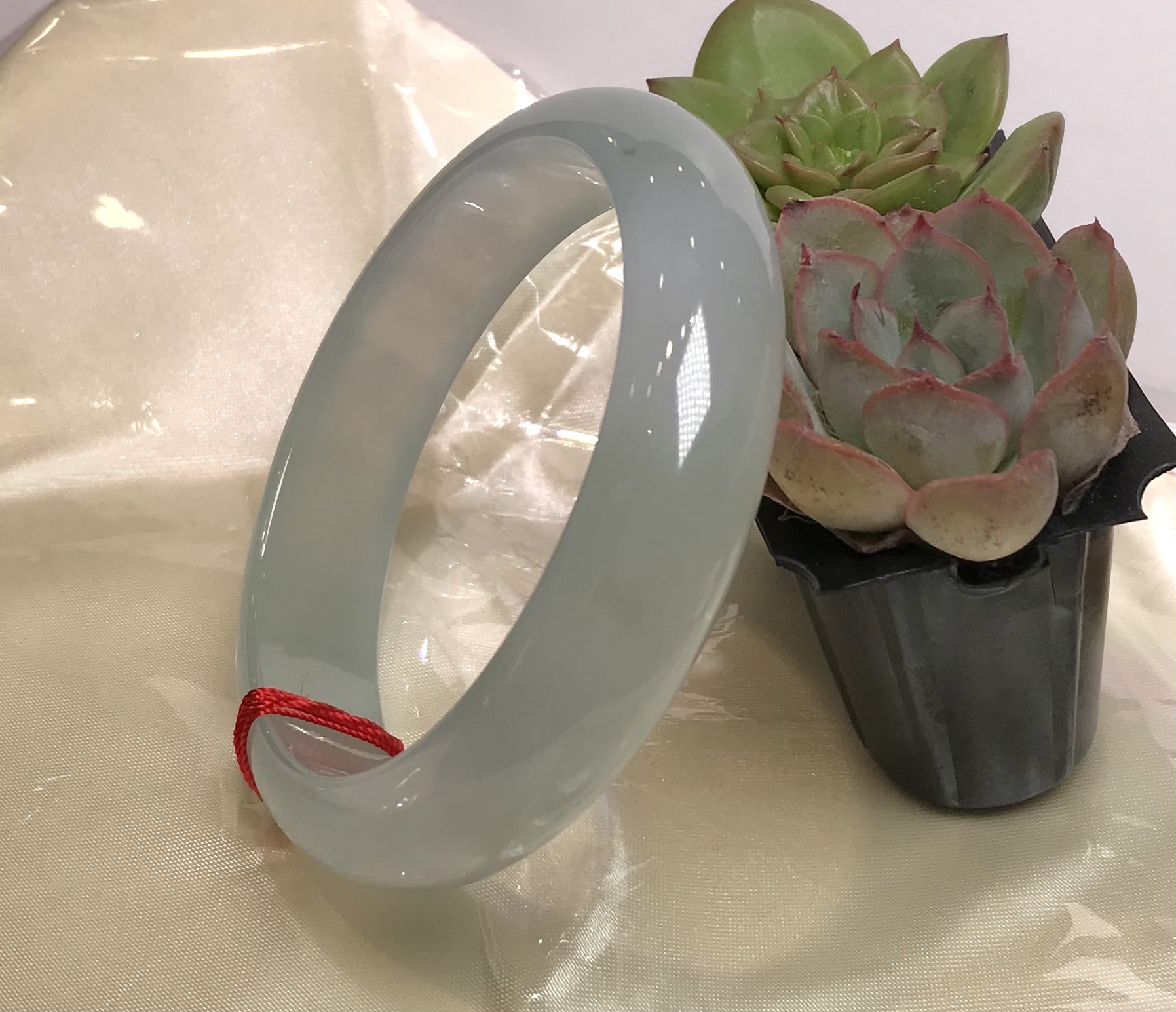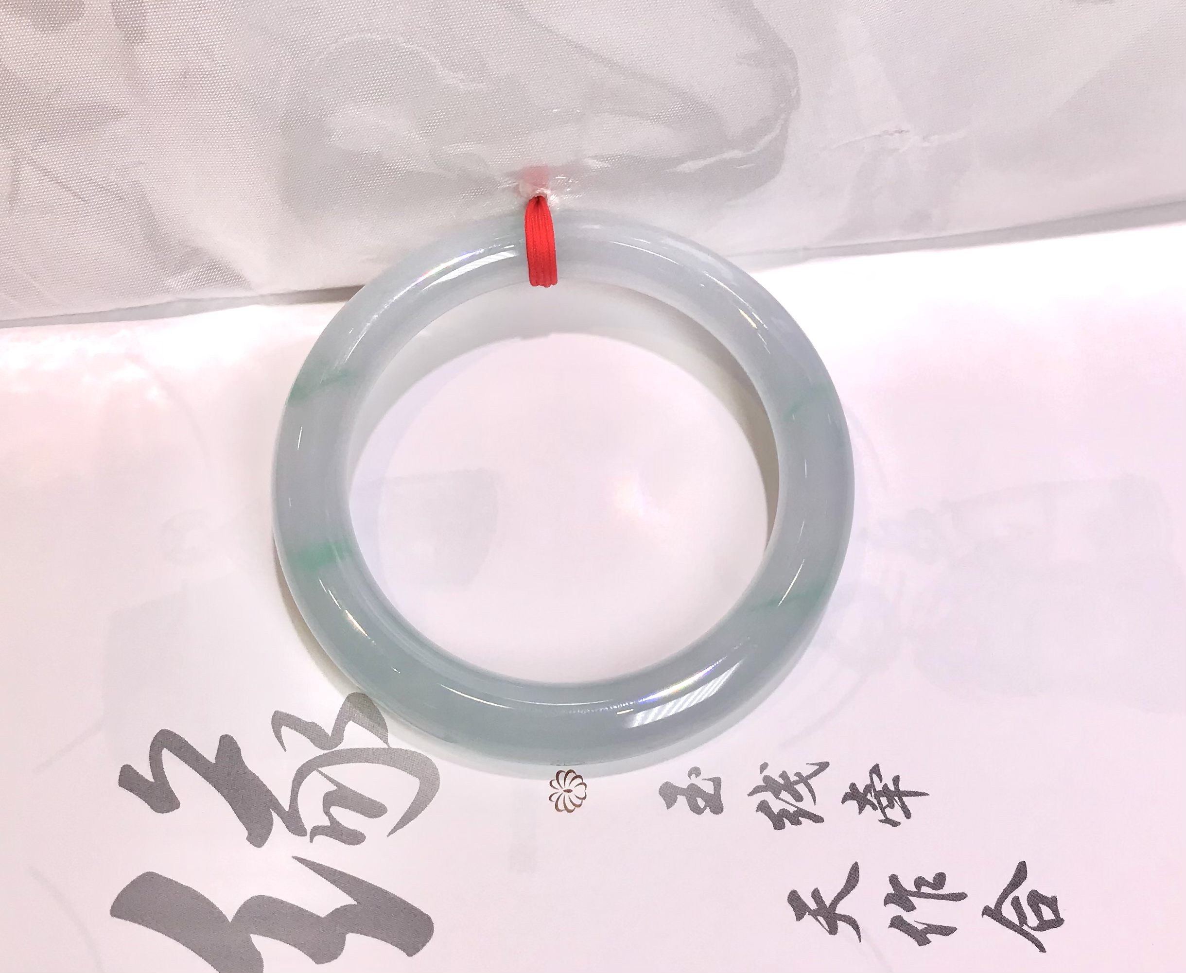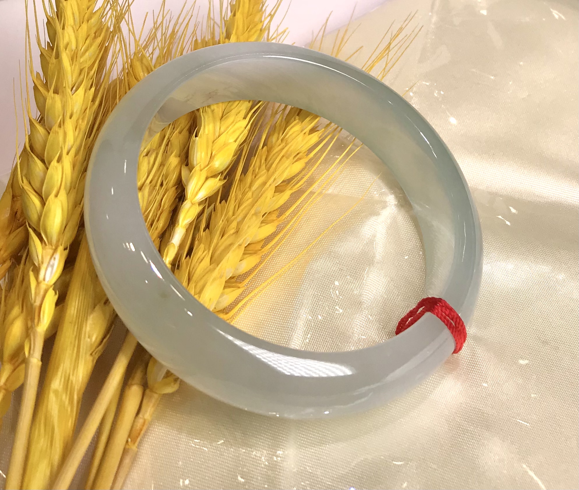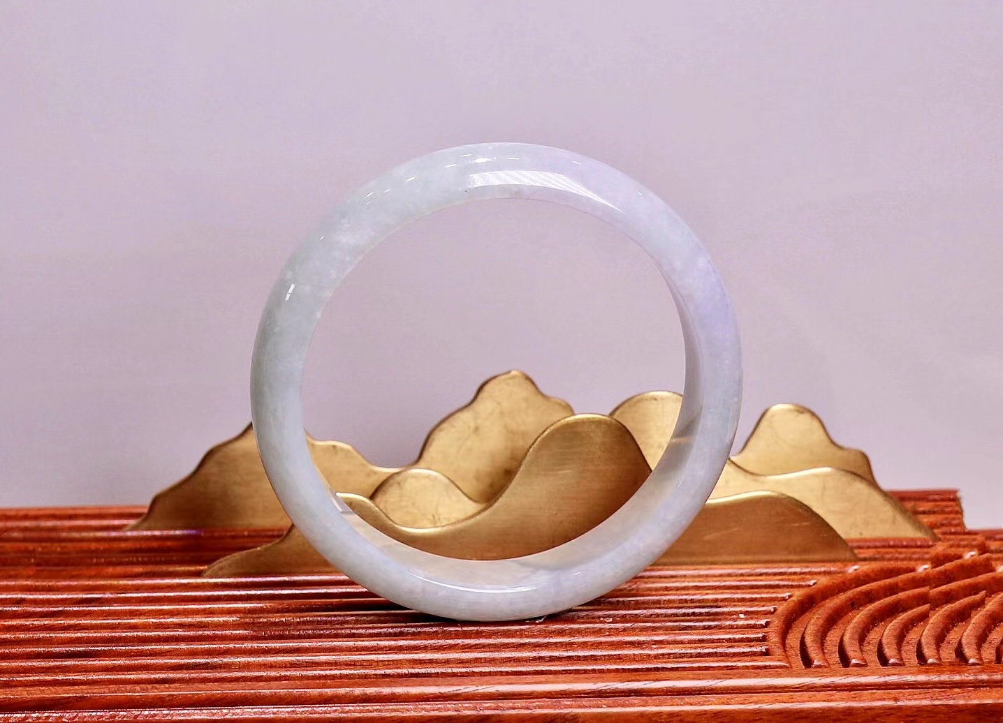 这件手镯不仅玉质通透水润有光泽,而且形状圆润,厚实,条幅较宽。是大圈口客户的福利。